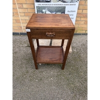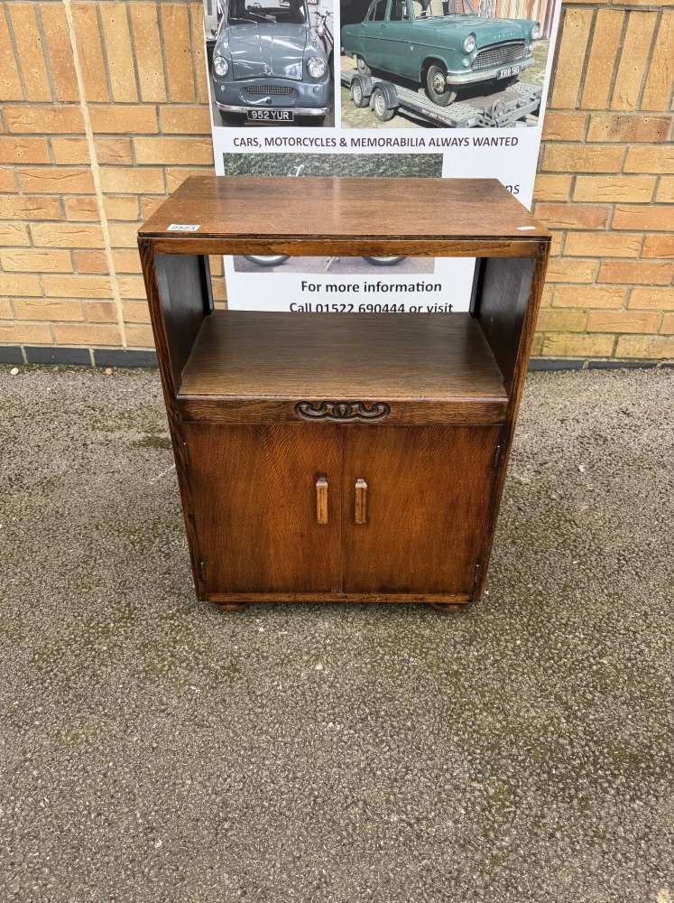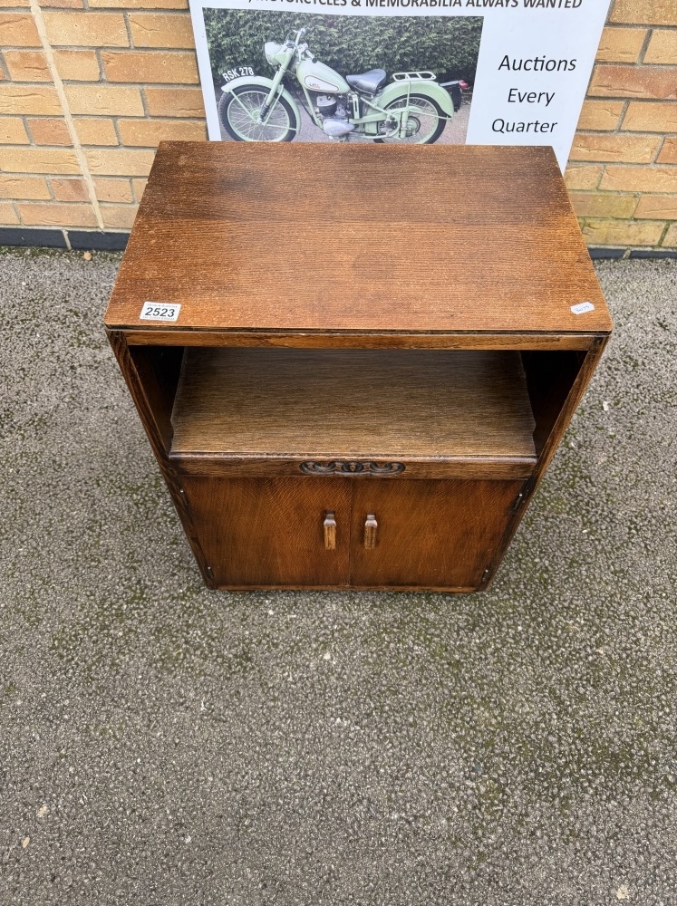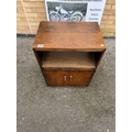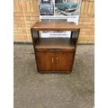 A mahogany cabinet with an open upper shelf and a lower two-door storage cupboard.