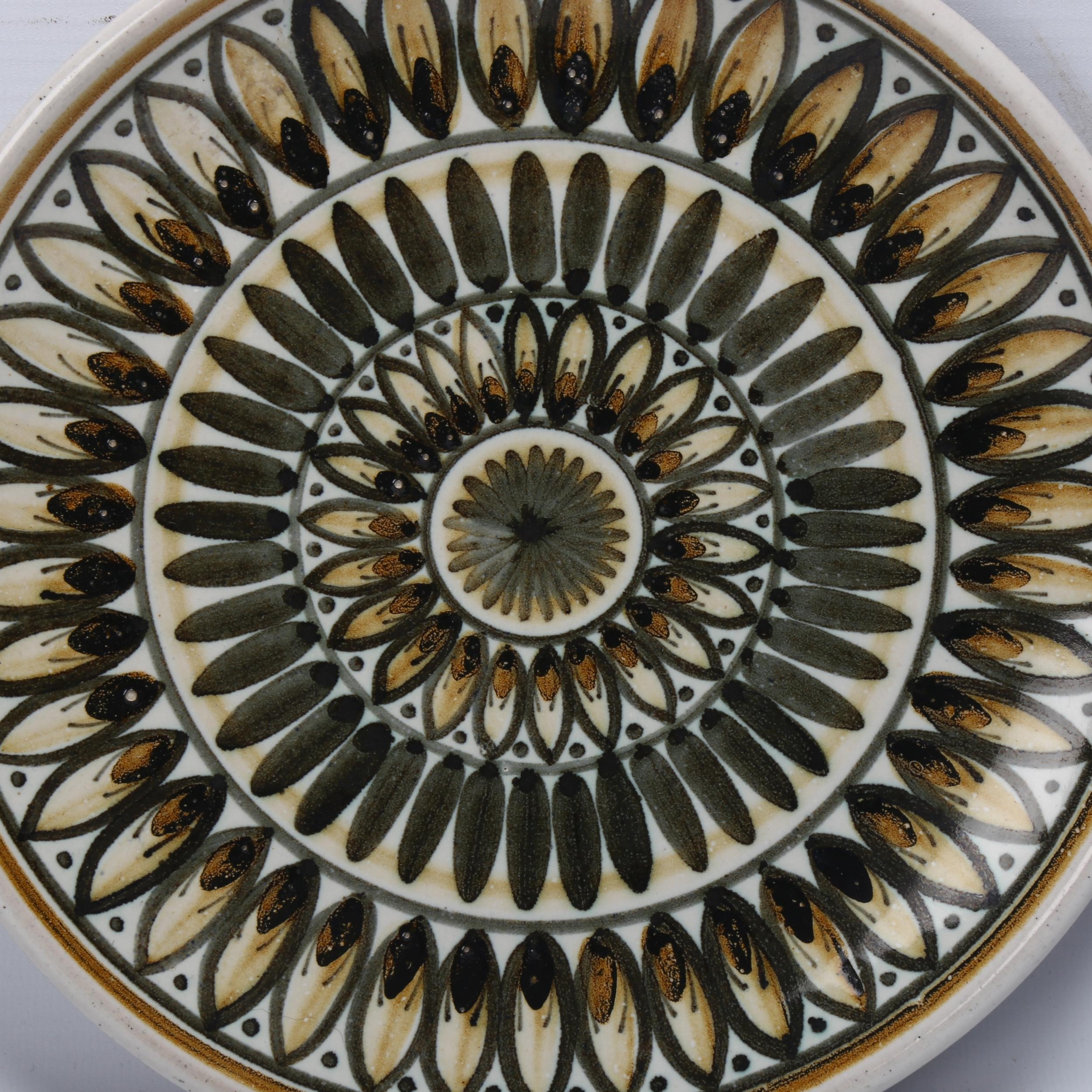 A mid-century Rye pottery plate, impressed RYE and printed makers marks, diameter 22.5cm