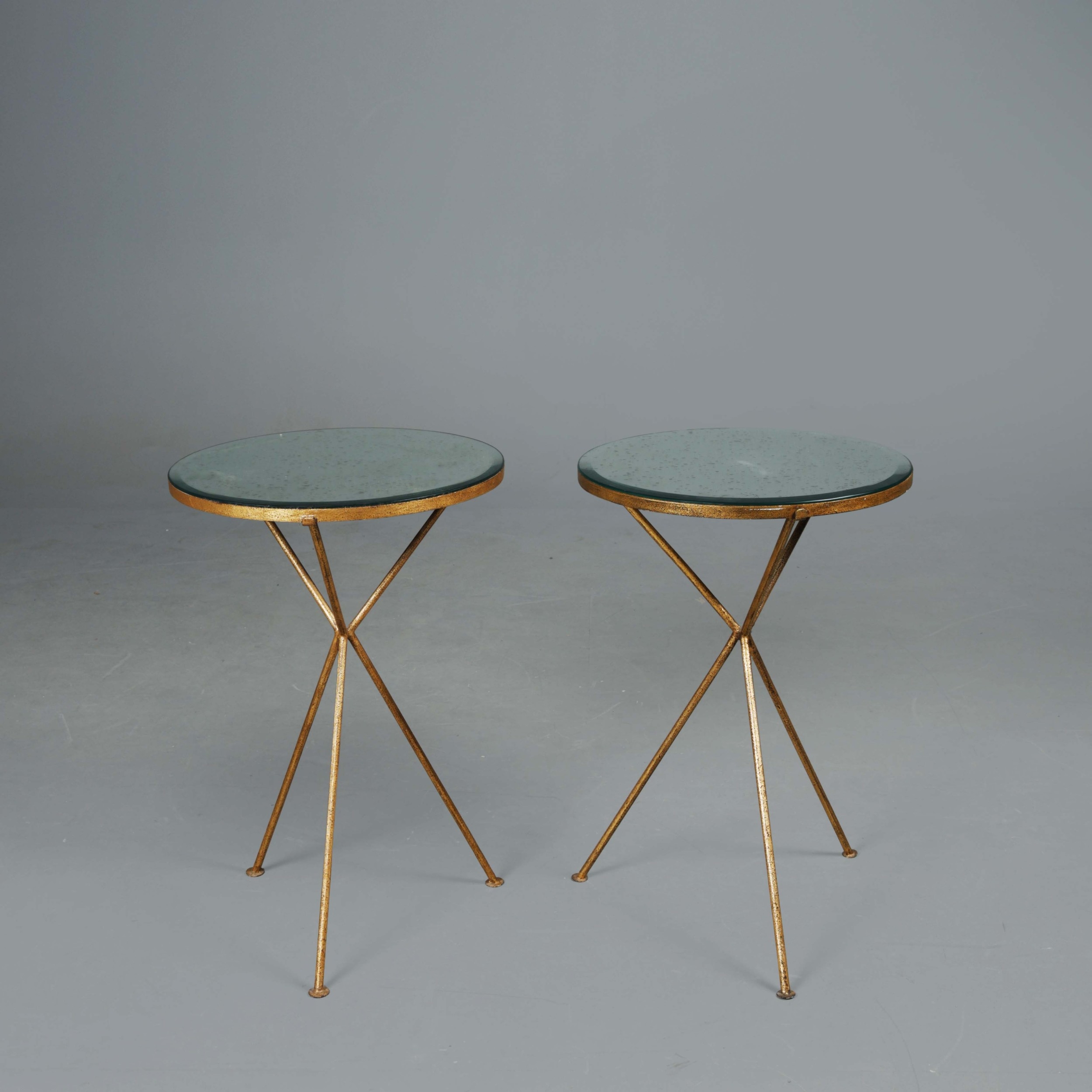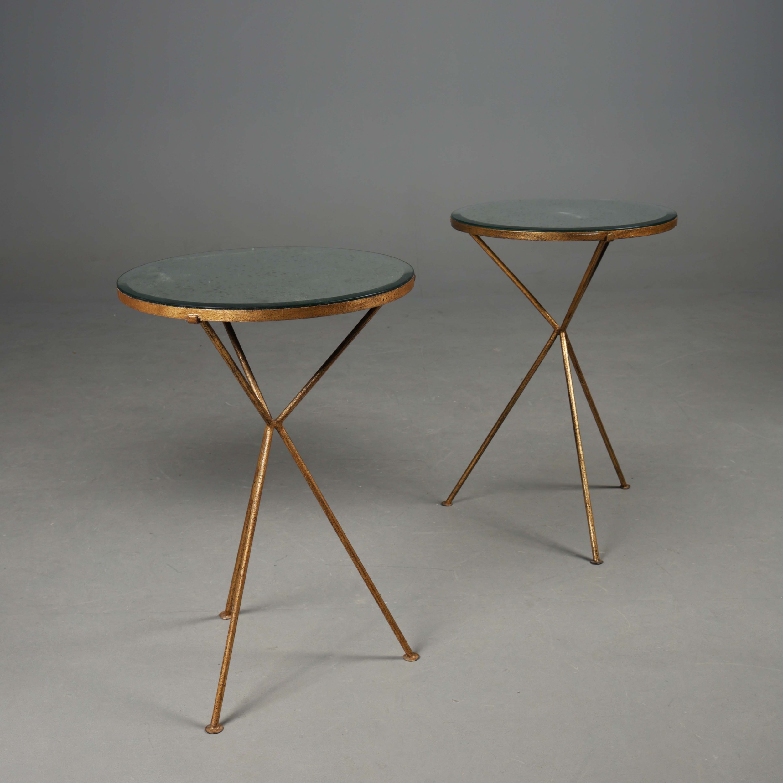 OKA TRIOMPHE TRIPOD SIDE TABLES, A PAIR. With mirrored glass tops 64cm H x 43cm W.
