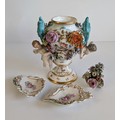 A Dresden Porcelain Vase and Flower Encrusted Dishes, Late 19th to Early 20th Century