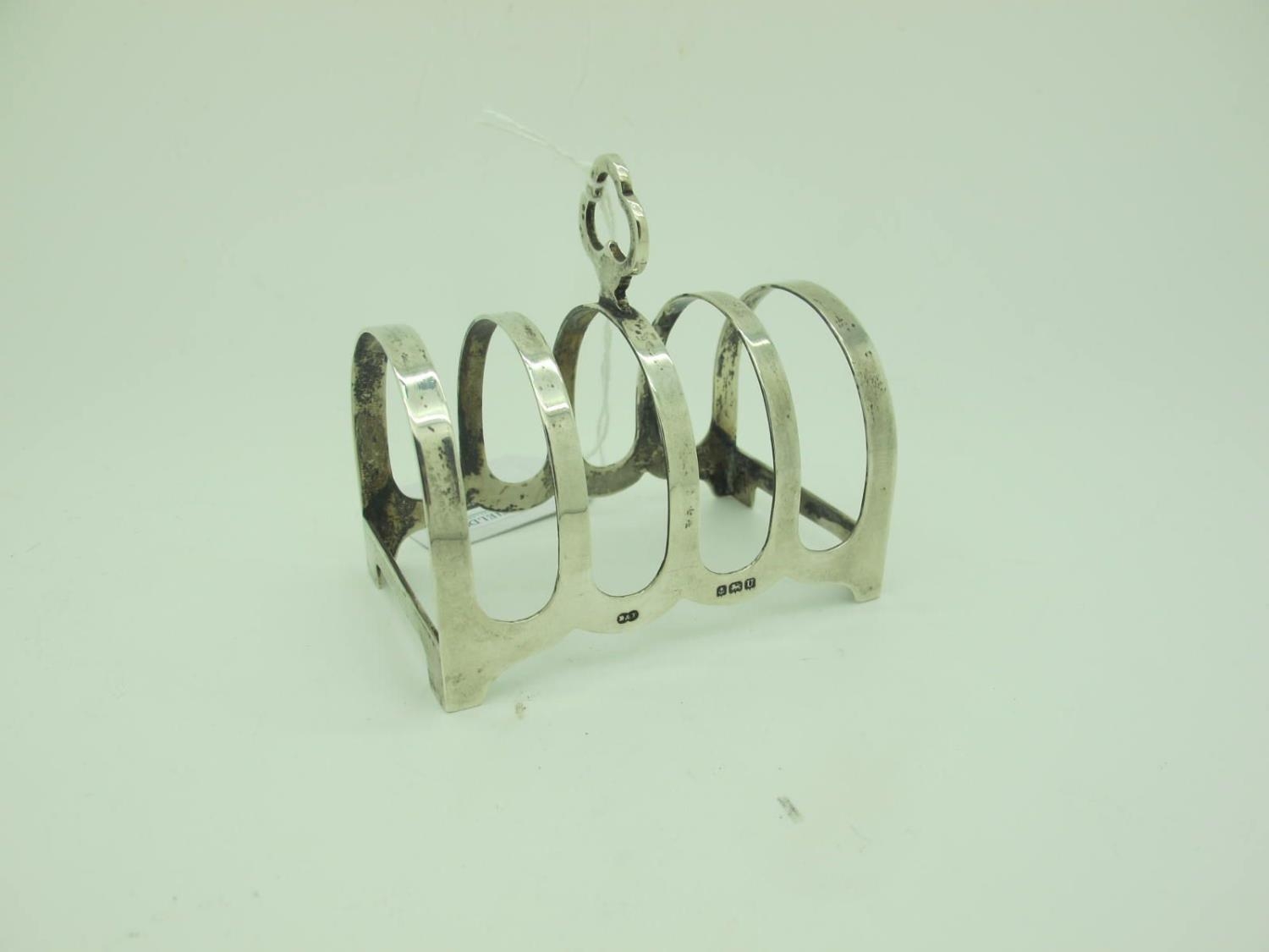 A Hallmarked Silver Five Bar Toast Rack, Deakin & Francis, Birmingham 1944, of plain design with trefoil loop handle, 40grams.
