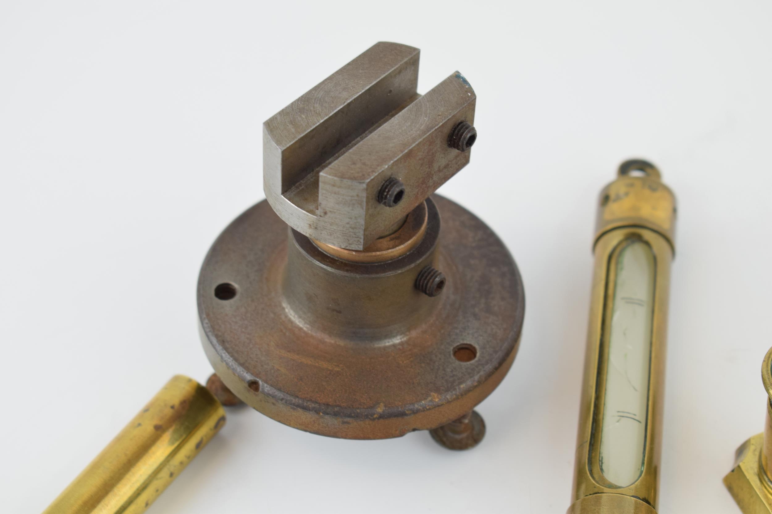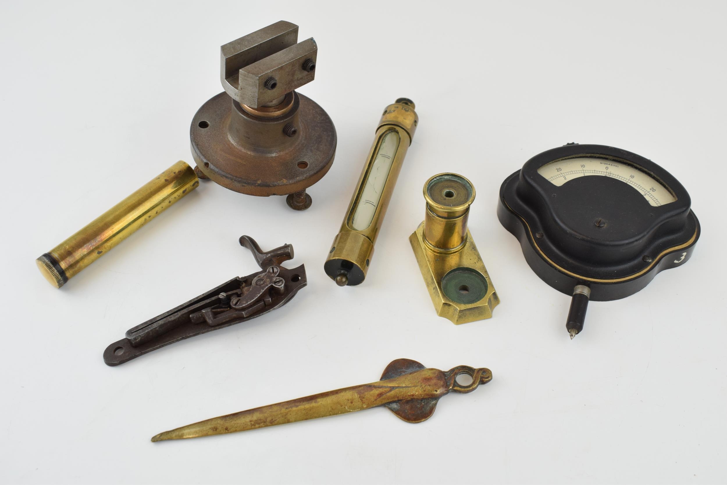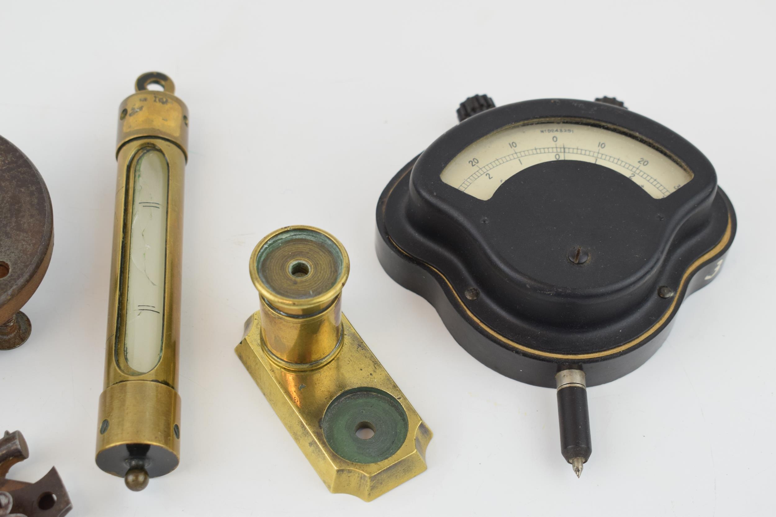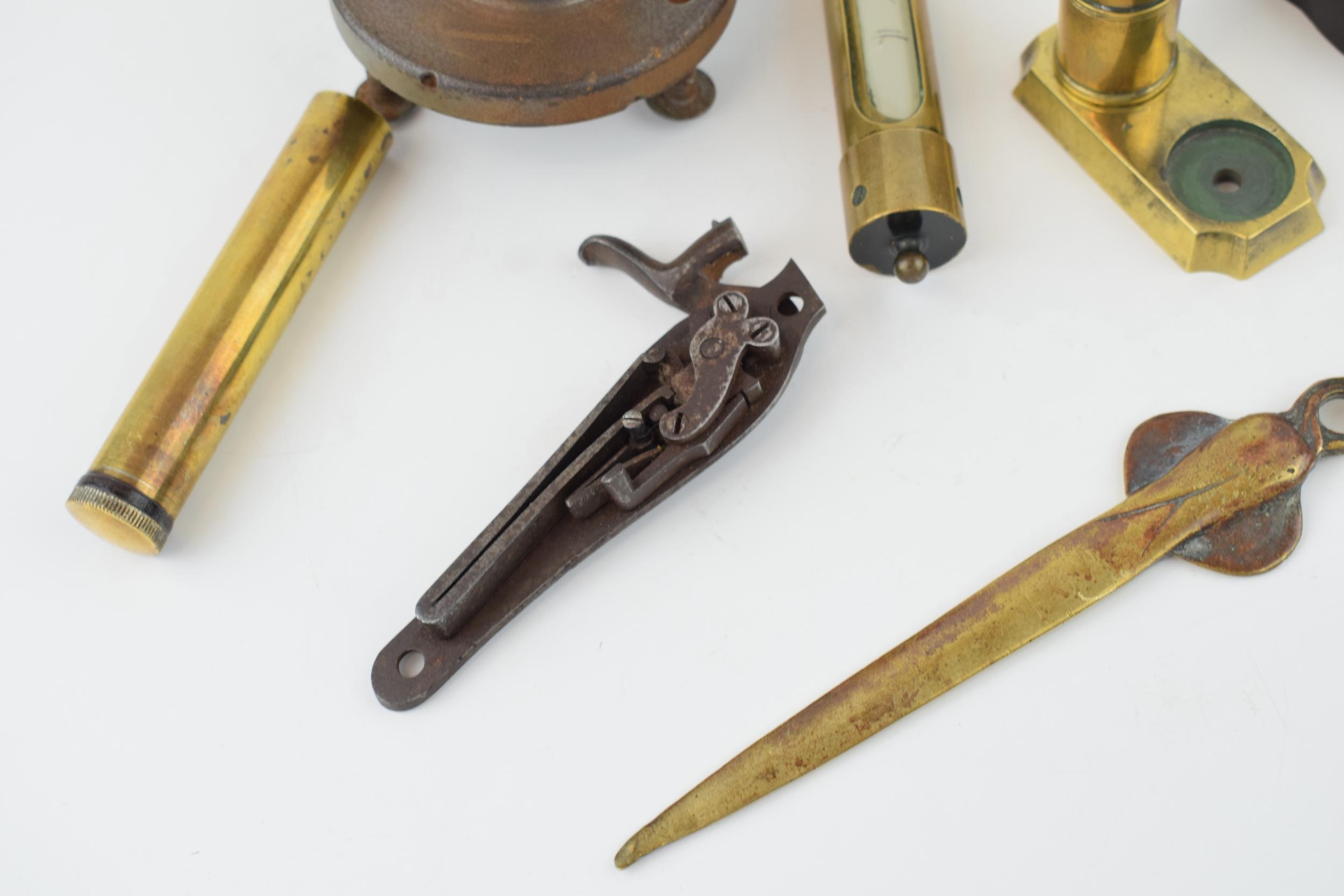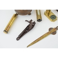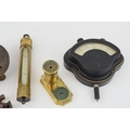 A mixed collection of militara items to include various brass gauges, gun oiler, parts off a percussion cap pistol and other similar items. (Qty)