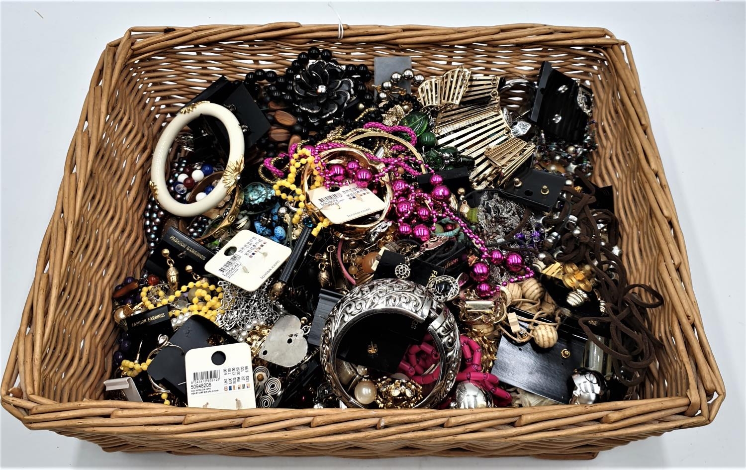 WICKER BASKET CONTAINING A Qty Of ASSORTED JEWELLERY