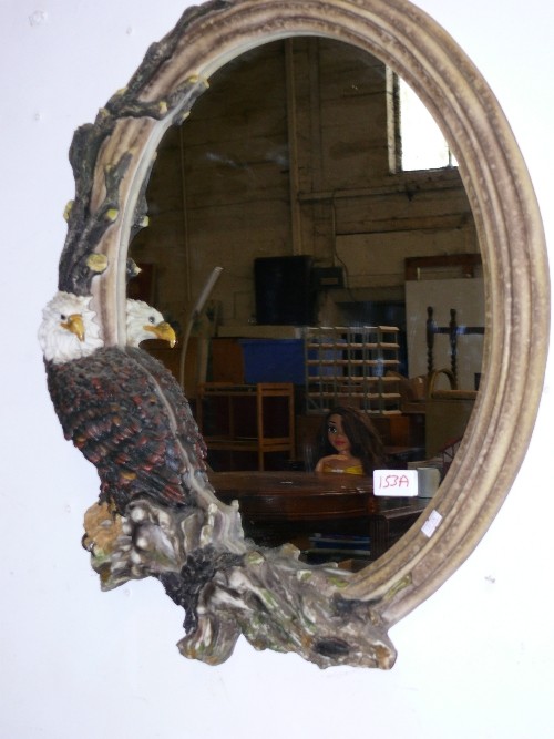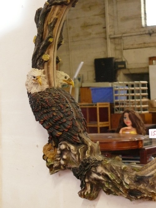 A VERY DECORATIVE EAGLE WALL MIRROR.