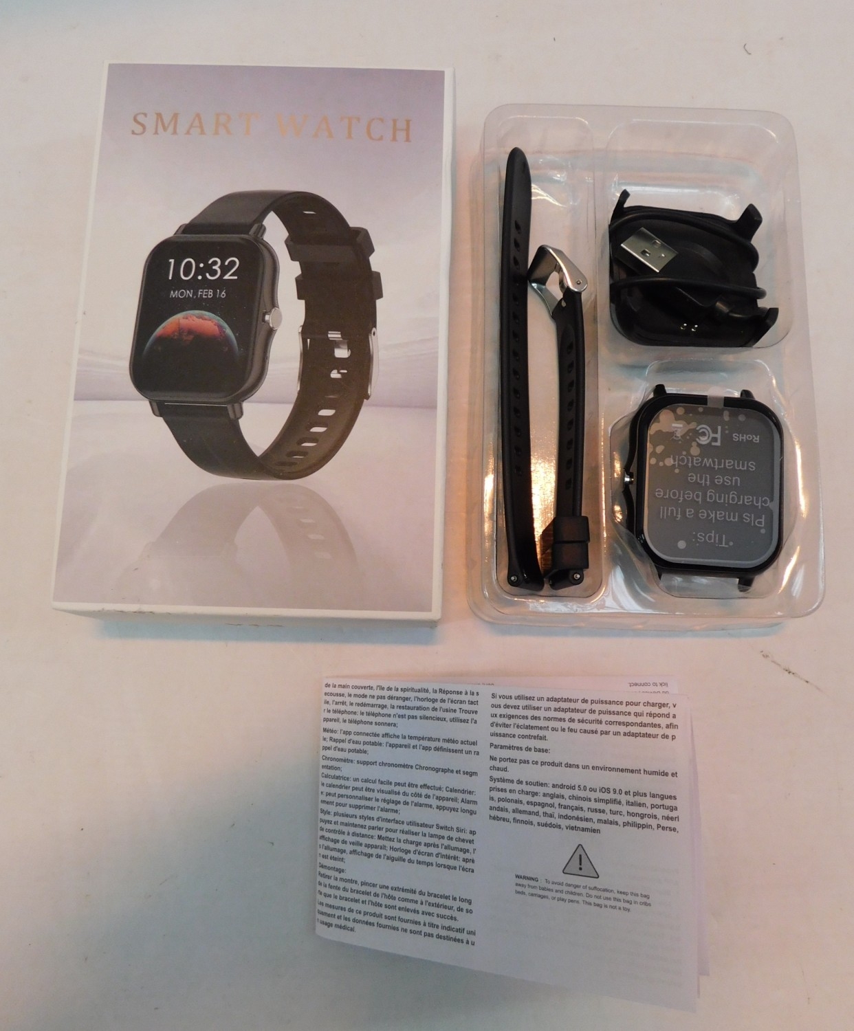 Black Smart watch; calls, Wi-Fi, exercise, messages, steps - new