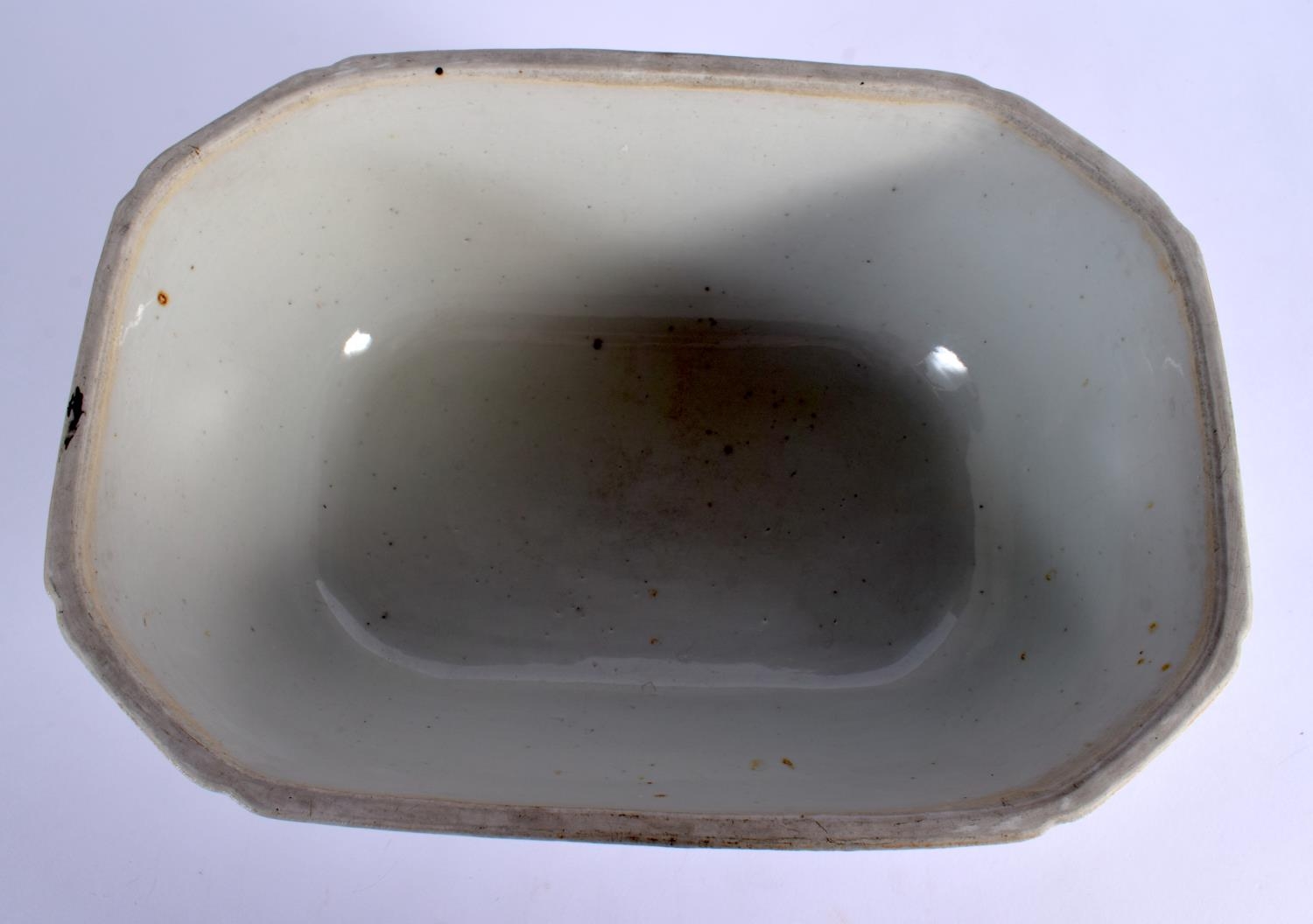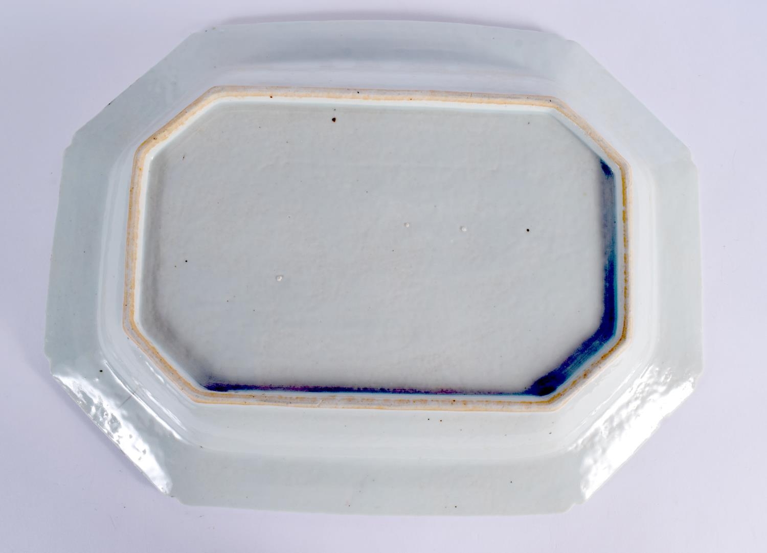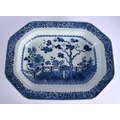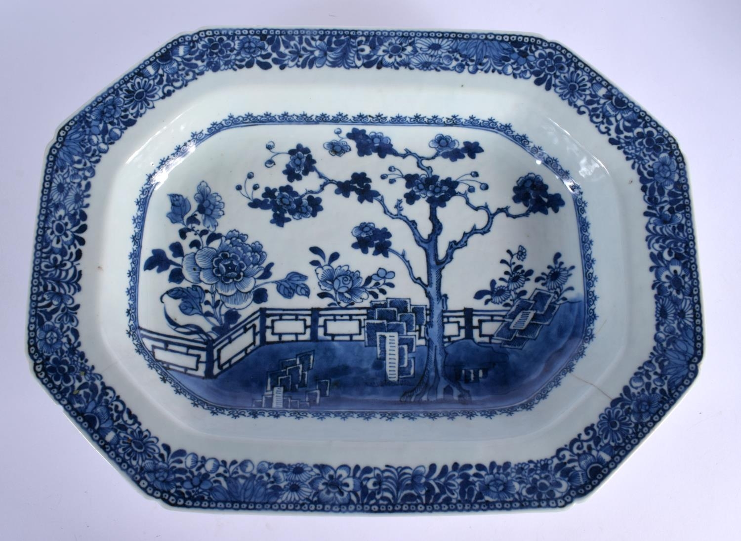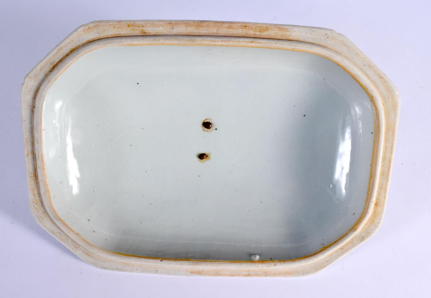 A GOOD LARGE 18TH CENTURY CHINESE BLUE AND WHITE EXPORT TUREEN AND COVER with matching stand. 38 cm x 26 cm overall. (2)