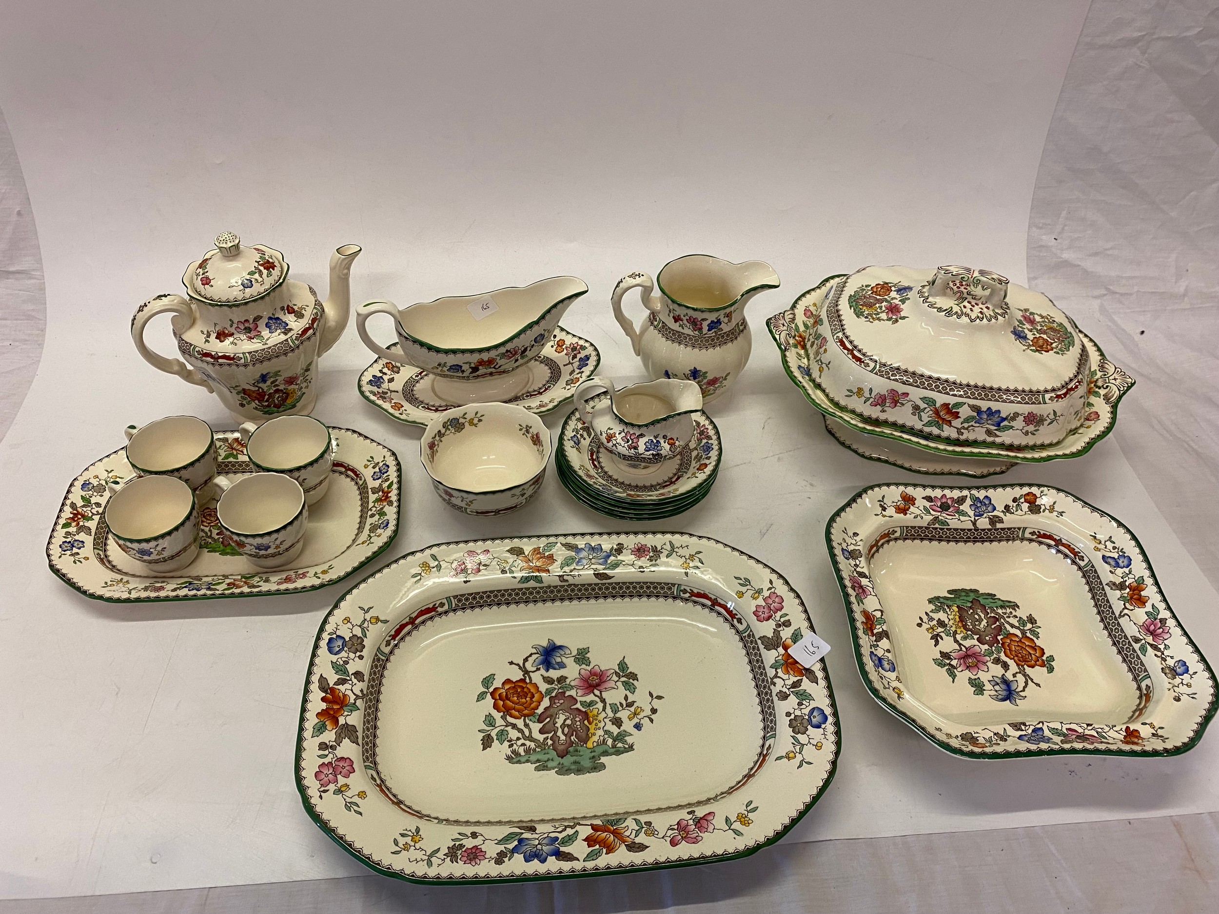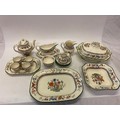 A selection of Copeland Spode Chinese Rose dinner and teawares including six dinner, six tea, and tea dessert plates, two vegetable dishes, tureen and cover, six cups, saucers and tea plates, teapot, sugar basin and jug, dishes, sauce boat etc...