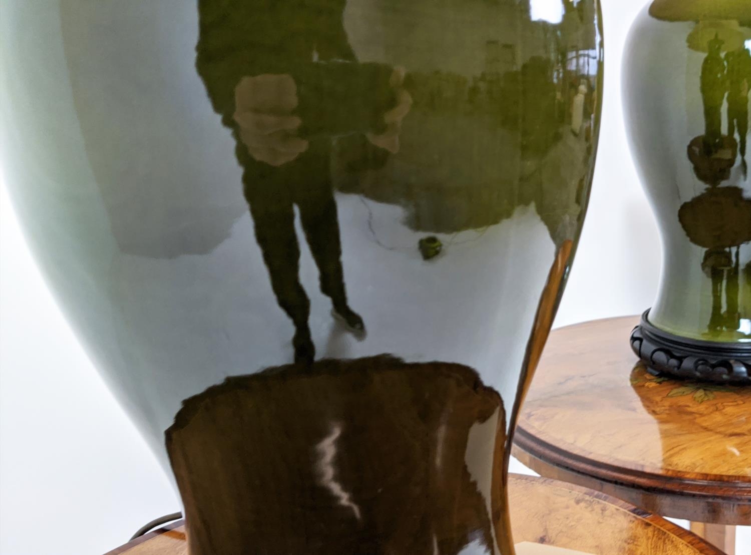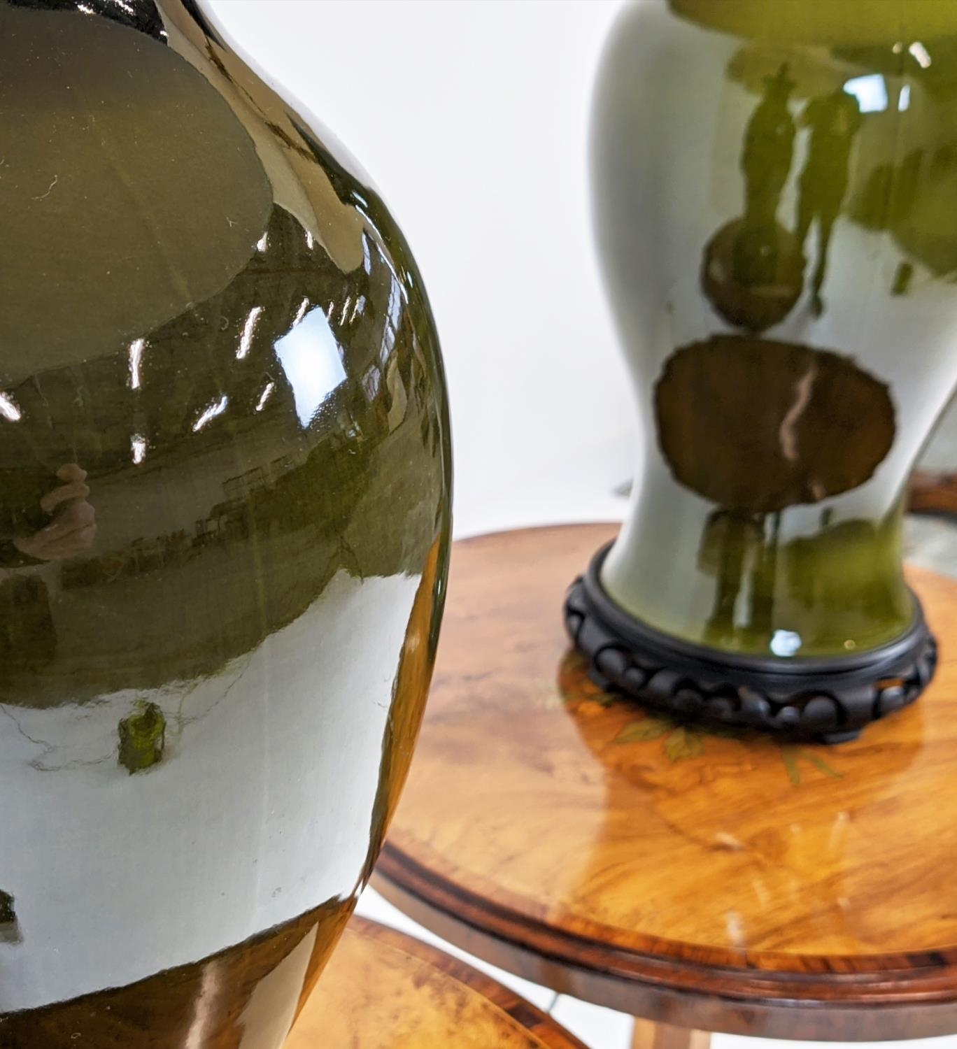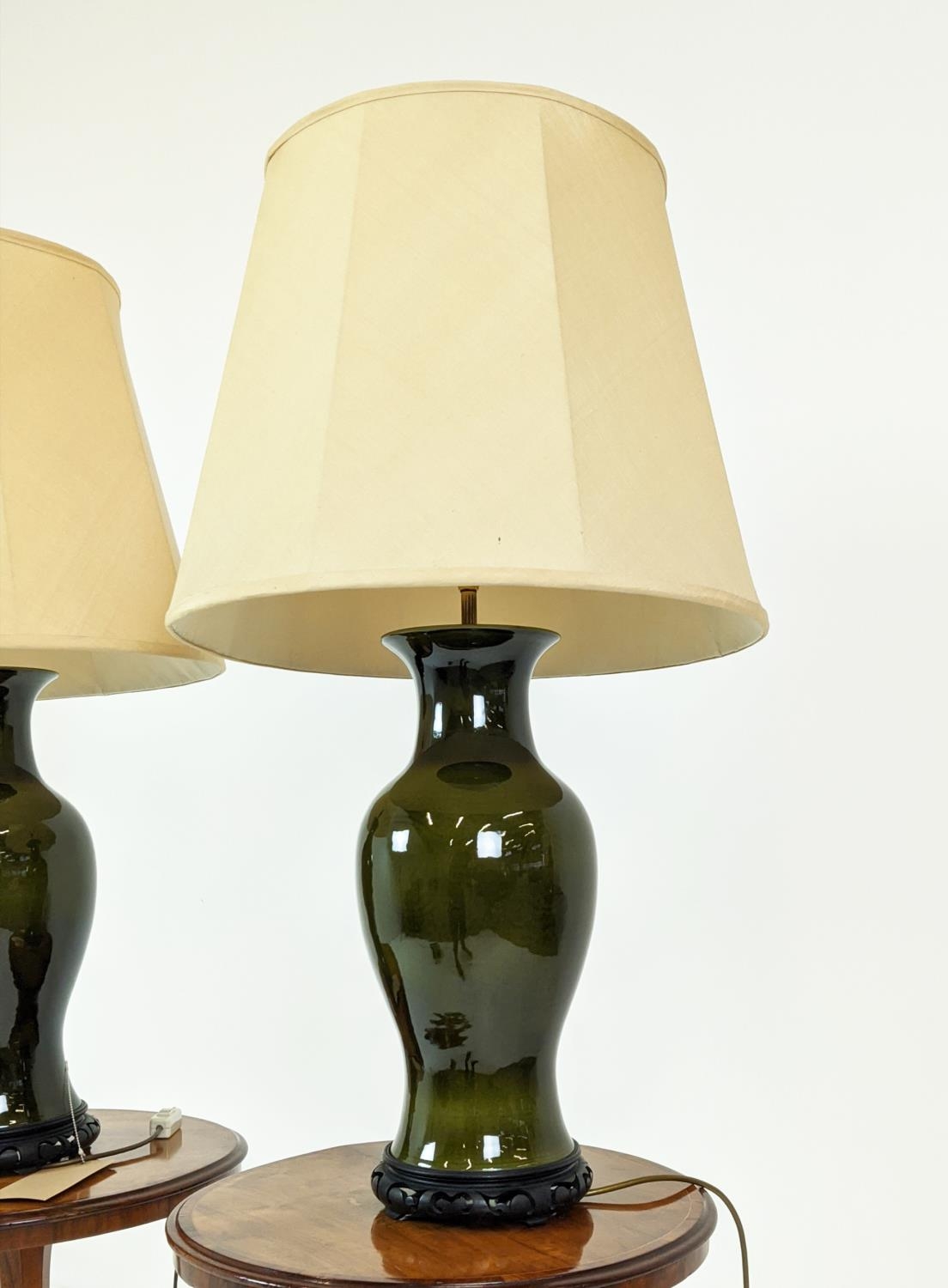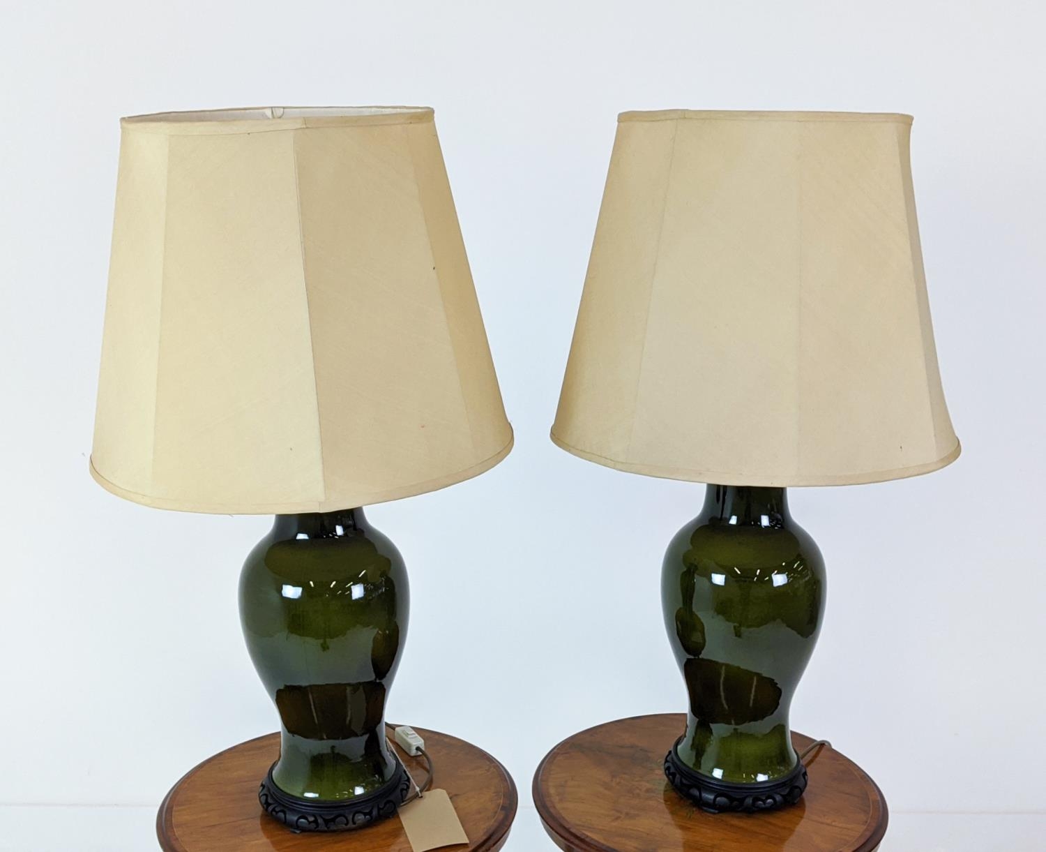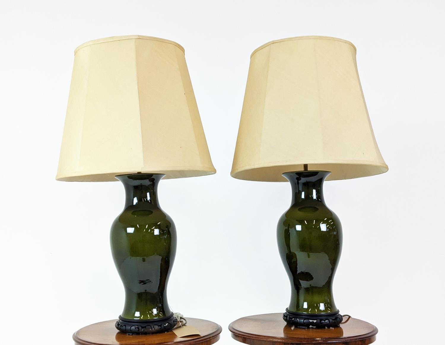 TABLE LAMPS, a pair, 84cm H, glazed ceramic, with shades. (2)
