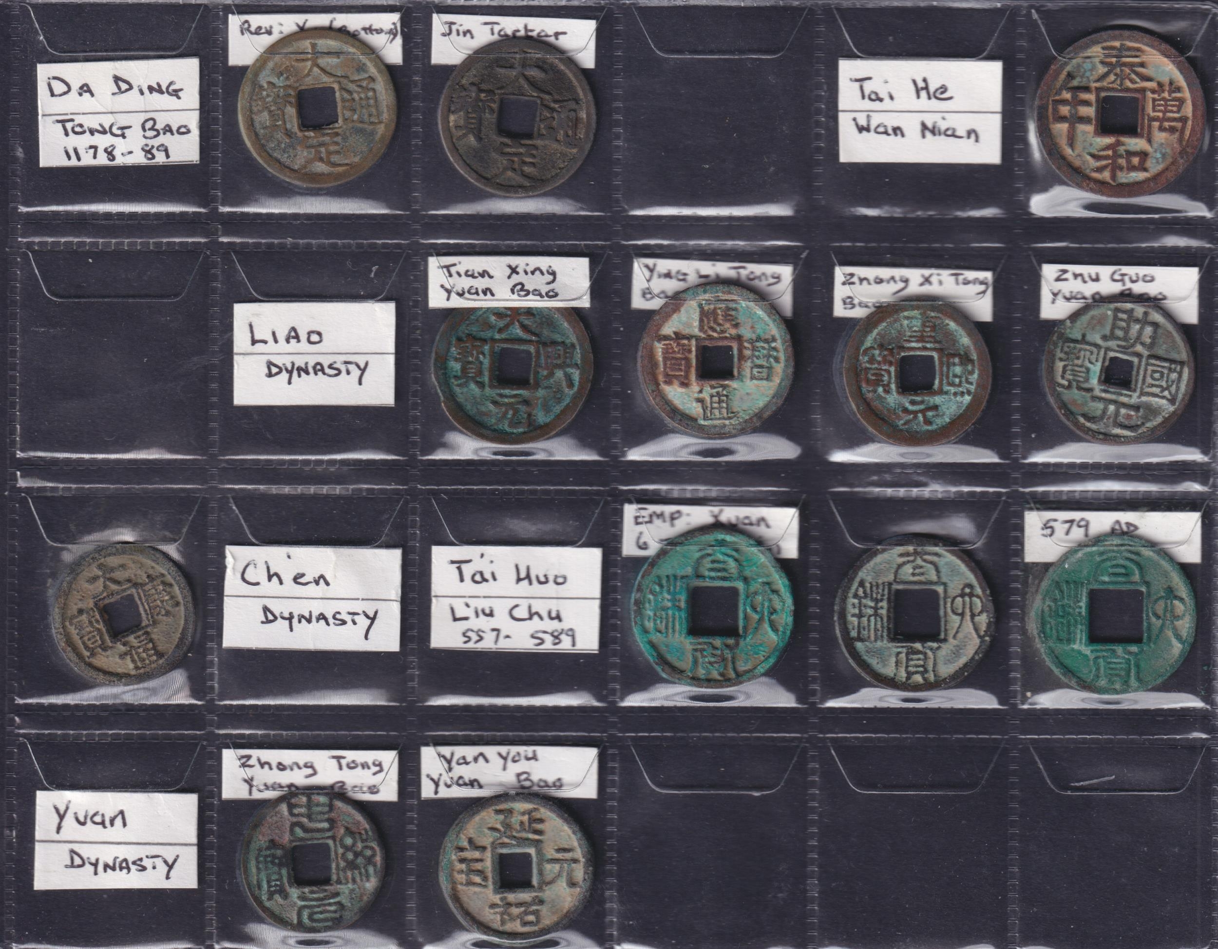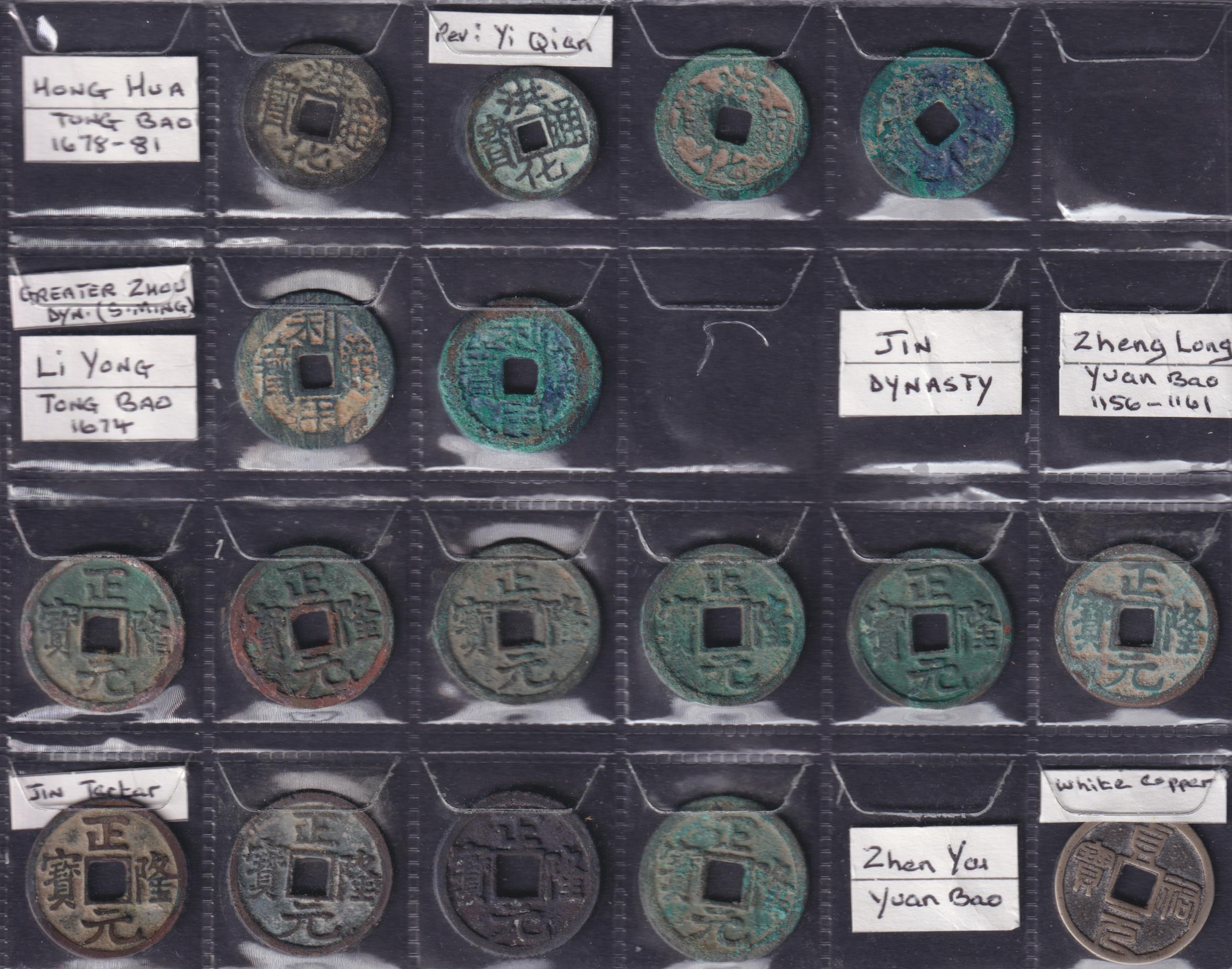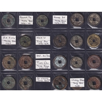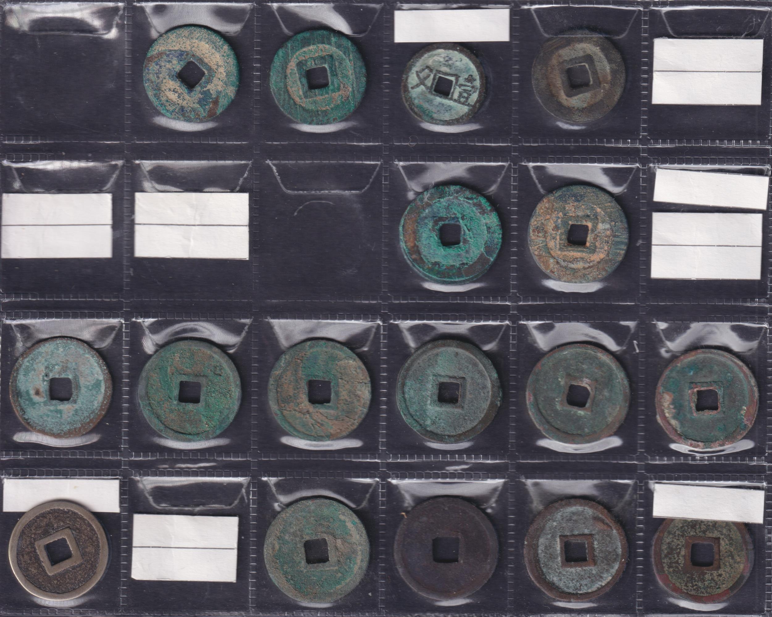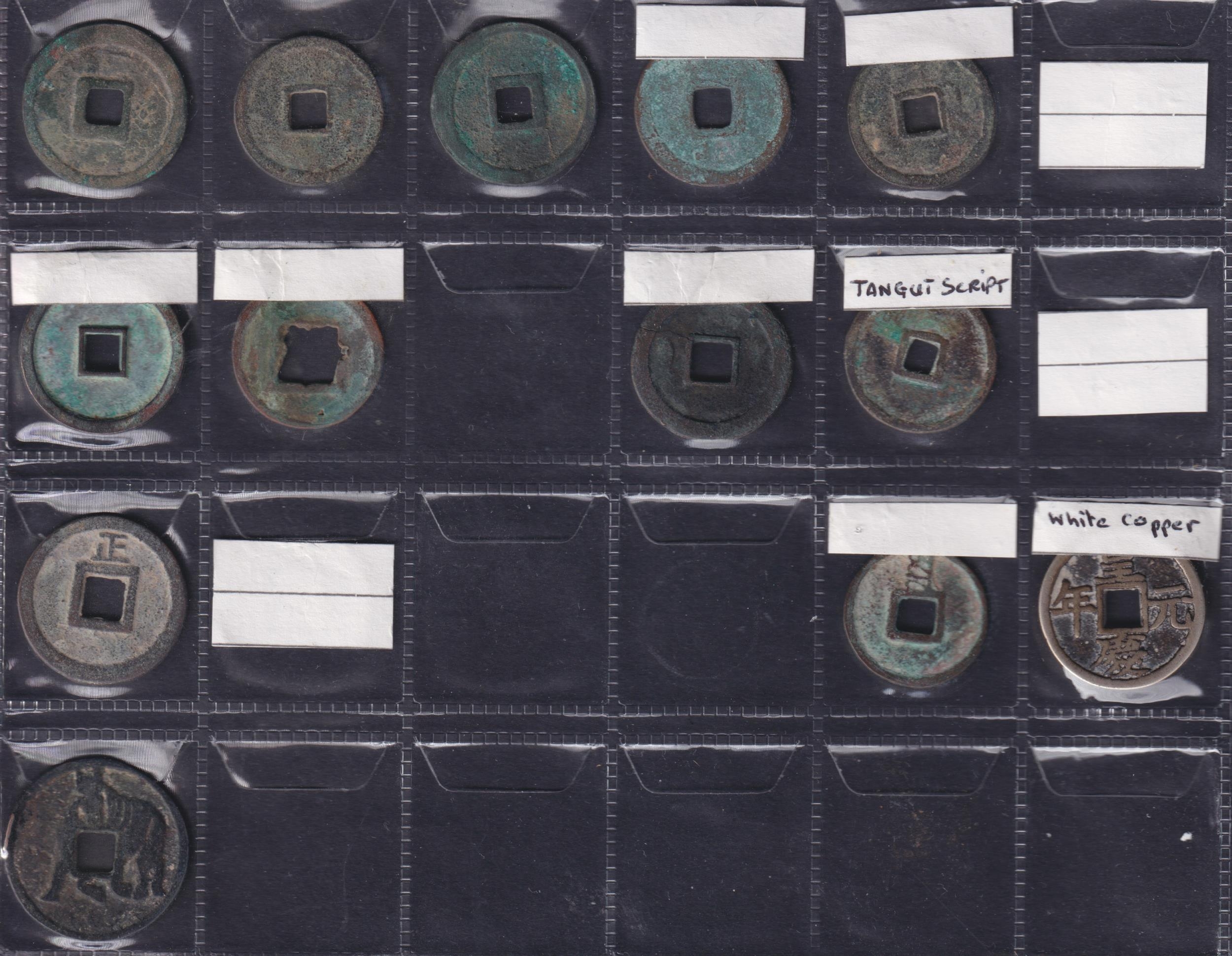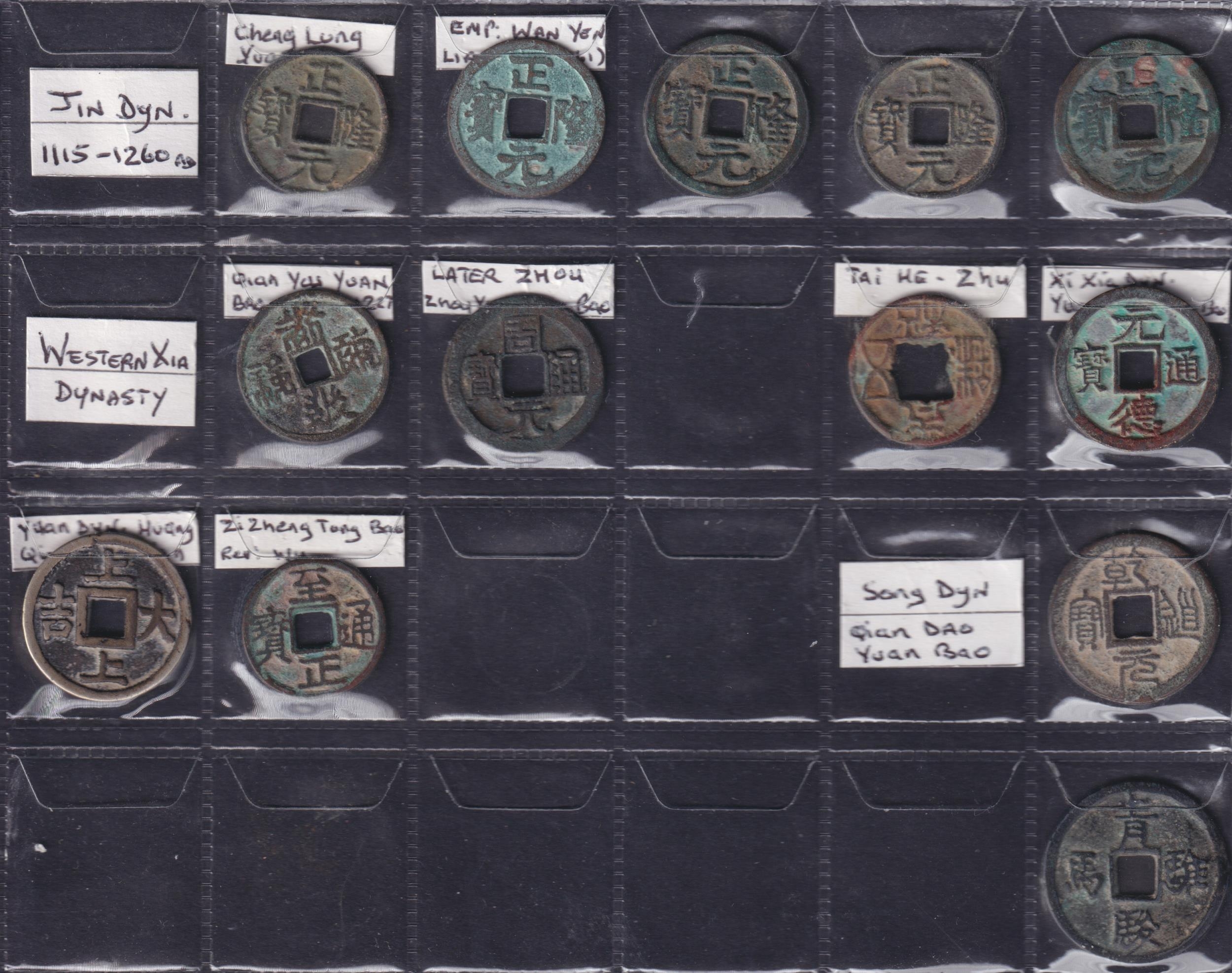 Medieval China: Multi-Dynasty 1 Cash Coins, a group of 48 copper 1 cash coins, comprising Zhou dynasty x11, Jin dynasty x19, Liao dynasty x5, Chien dynasty x3, Yuan dynasty x2, and Western Xia dynasty x8. Grades G–GF