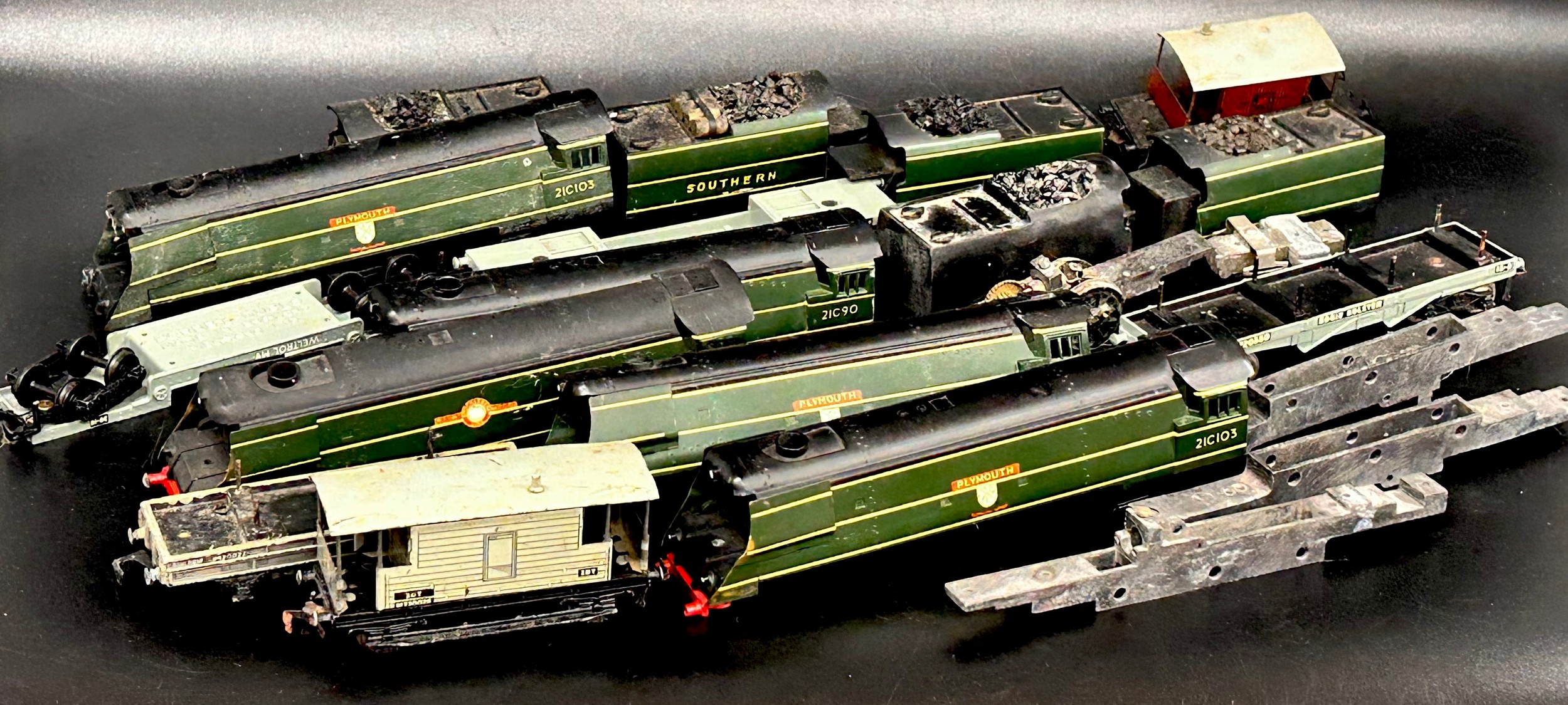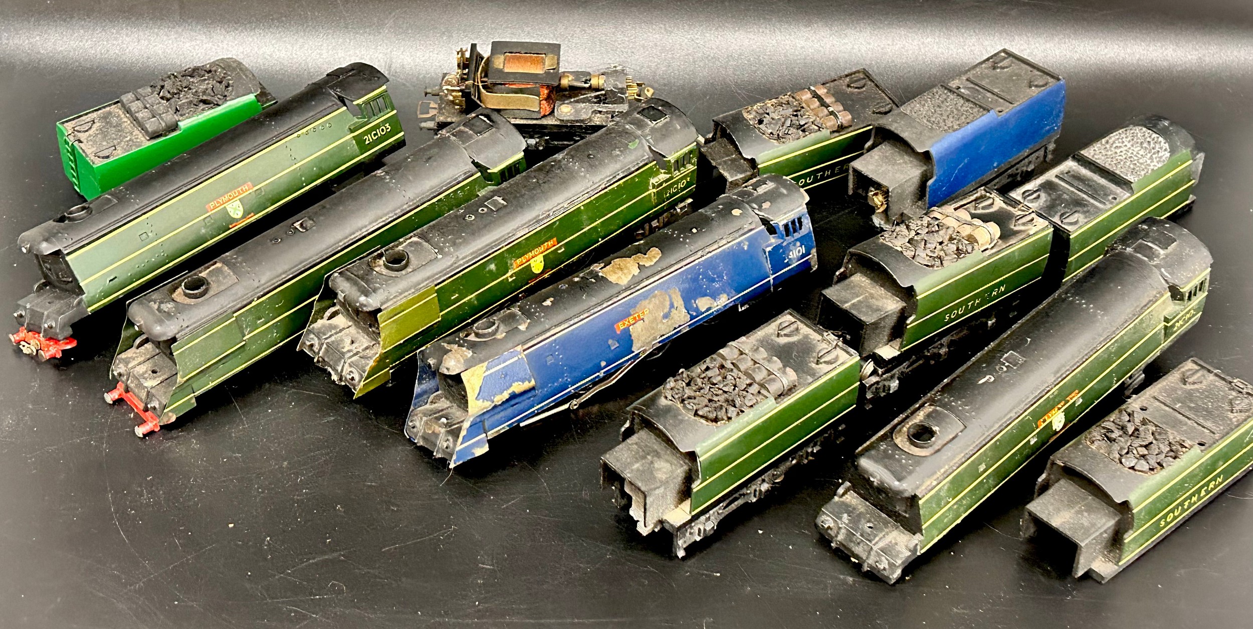 A collection of 00 gauge model railway, to include two Graham Farish locomotives with tender and seven Plymouth 21C103 engine shells, (no works), one with wheels, and Exeter 54101 engine, Merchant Navy Class, Brocklebank Line 21C25 engine (no wheels), a 21C90 engine (no wheels), etc., a/f