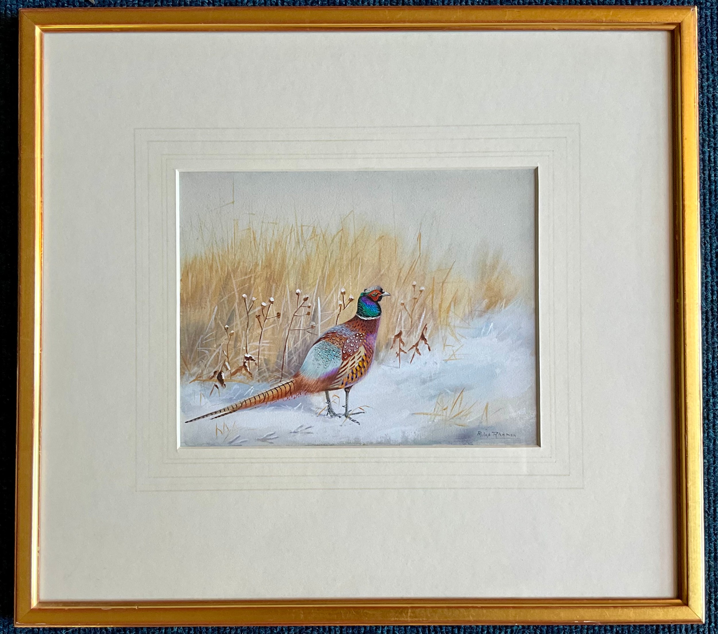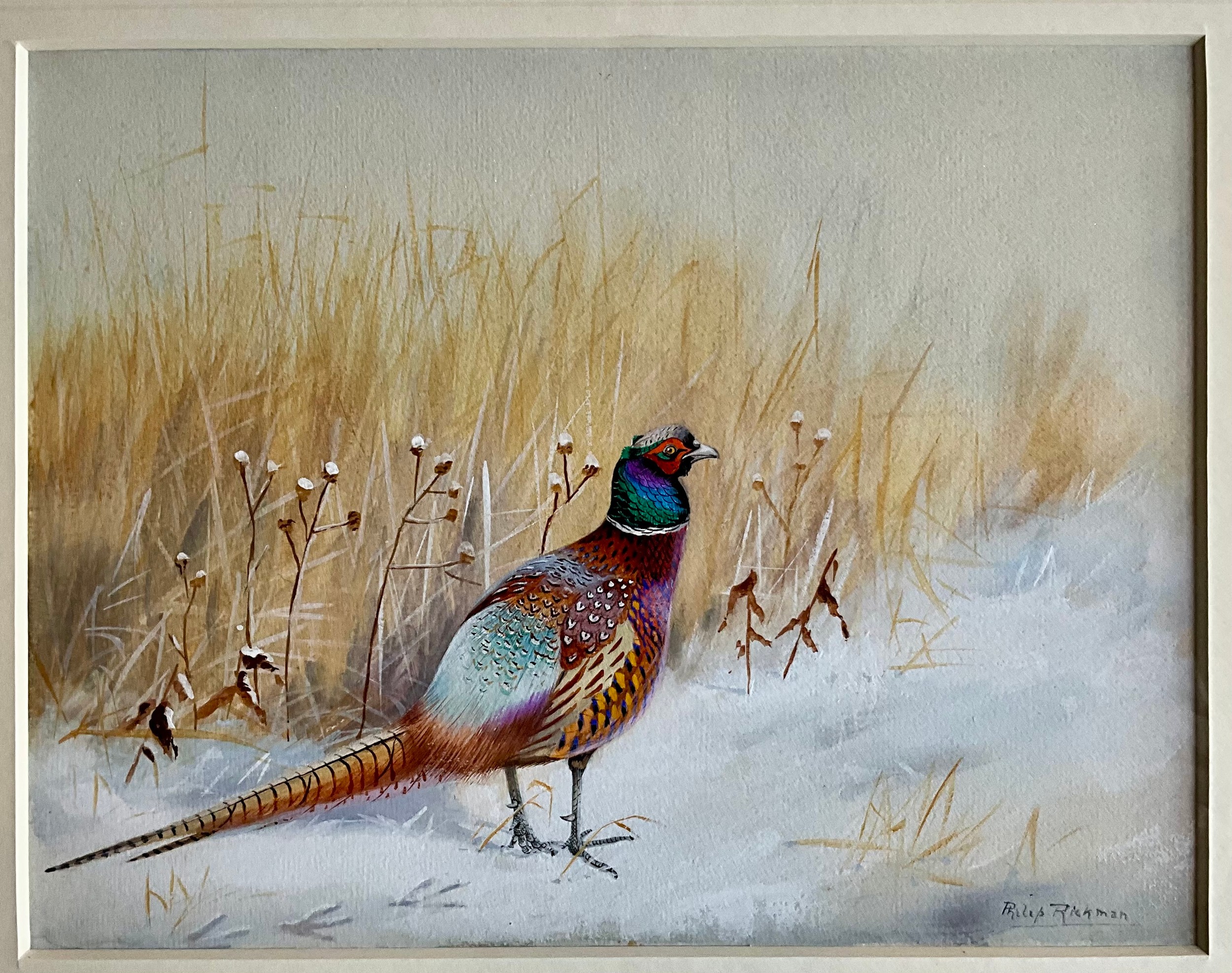 RICKMAN (PHILIP, 1891-1982). ‘A COCK PHEASANT IN SNOW’ ORIGINAL WATERCOLOUR. Approx. 28 x 22cm