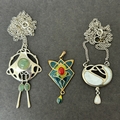Two 925 sterling silver Art Nouveau style pendants on sterling chains plus an enamelled Nouveau style pendant