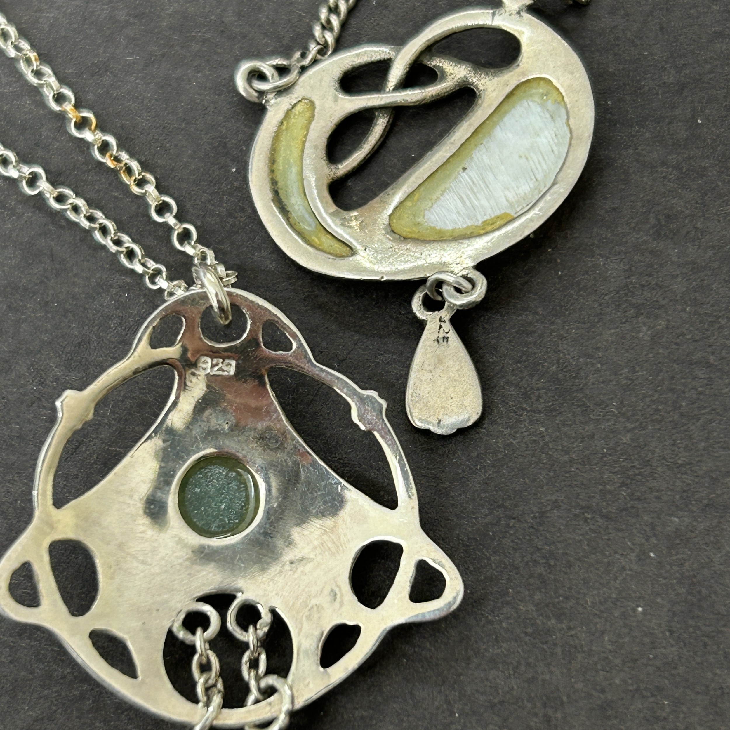 Two 925 sterling silver Art Nouveau style pendants on sterli...
