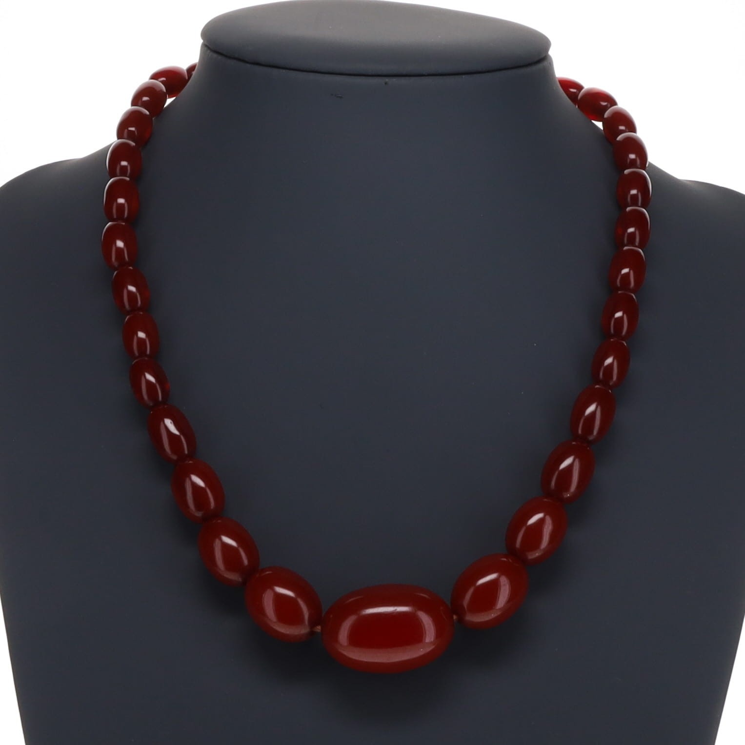 Cherry Bakelite Graduated Necklace with Internal Streaking and Screw Clasp