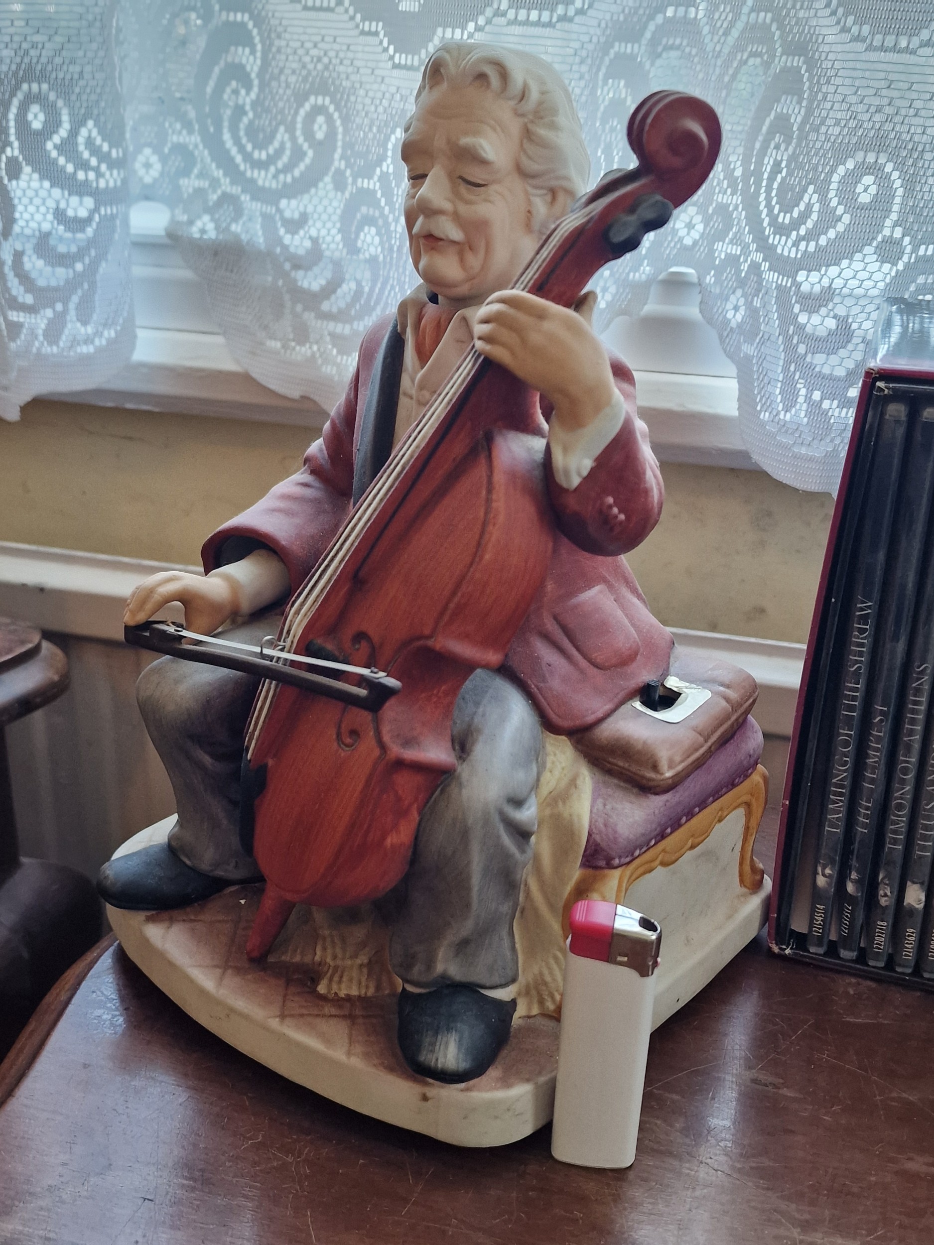 9.5" tall WAKO porcelain musical man playing cello - battery operated but not working