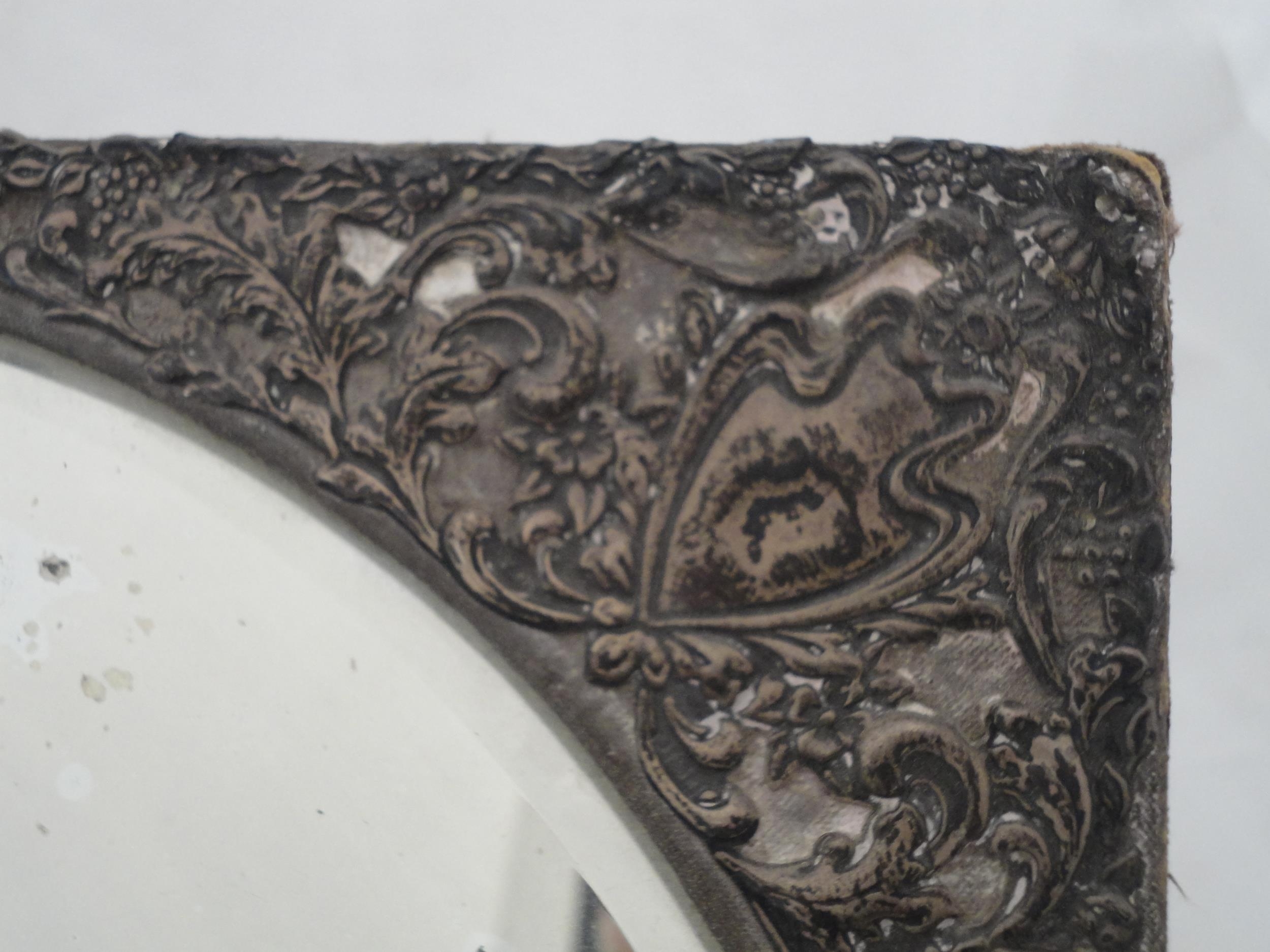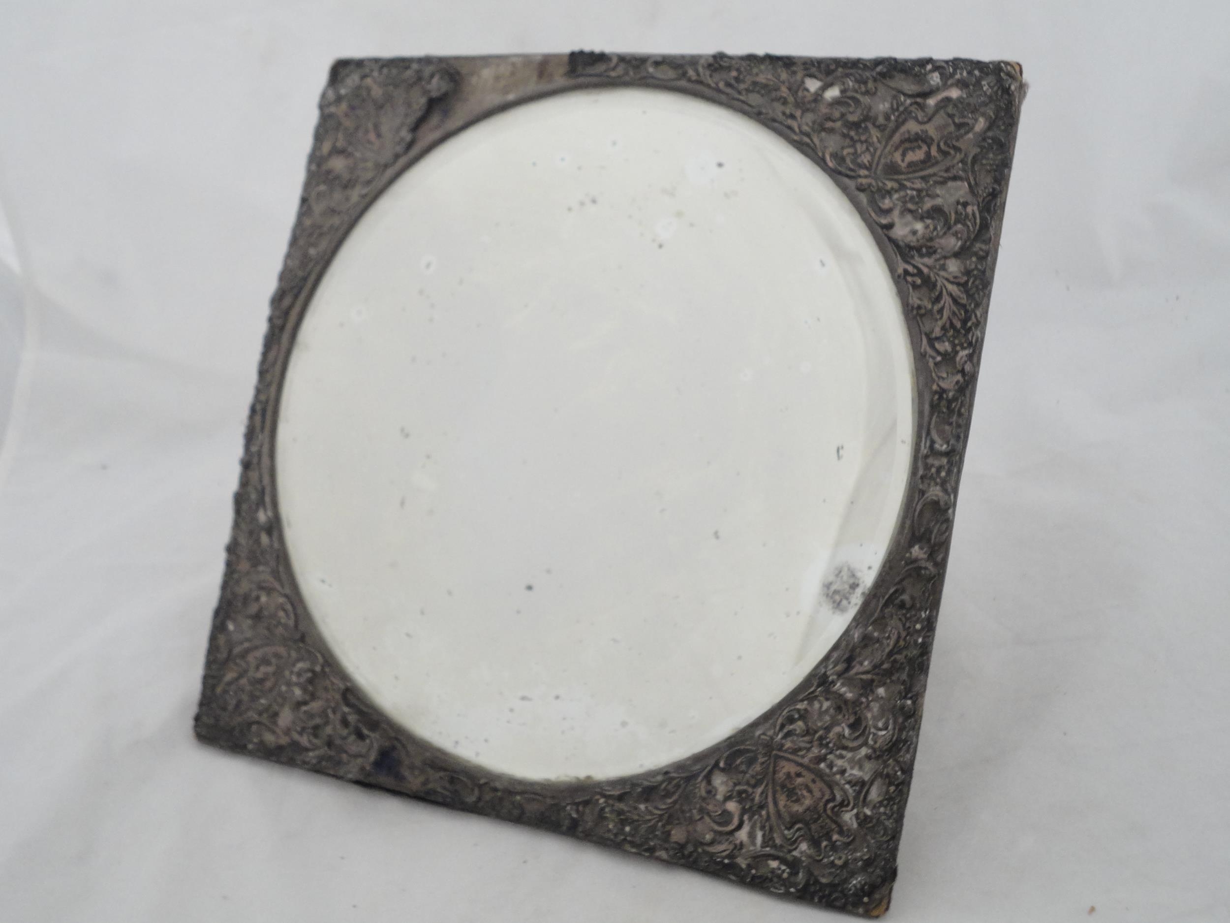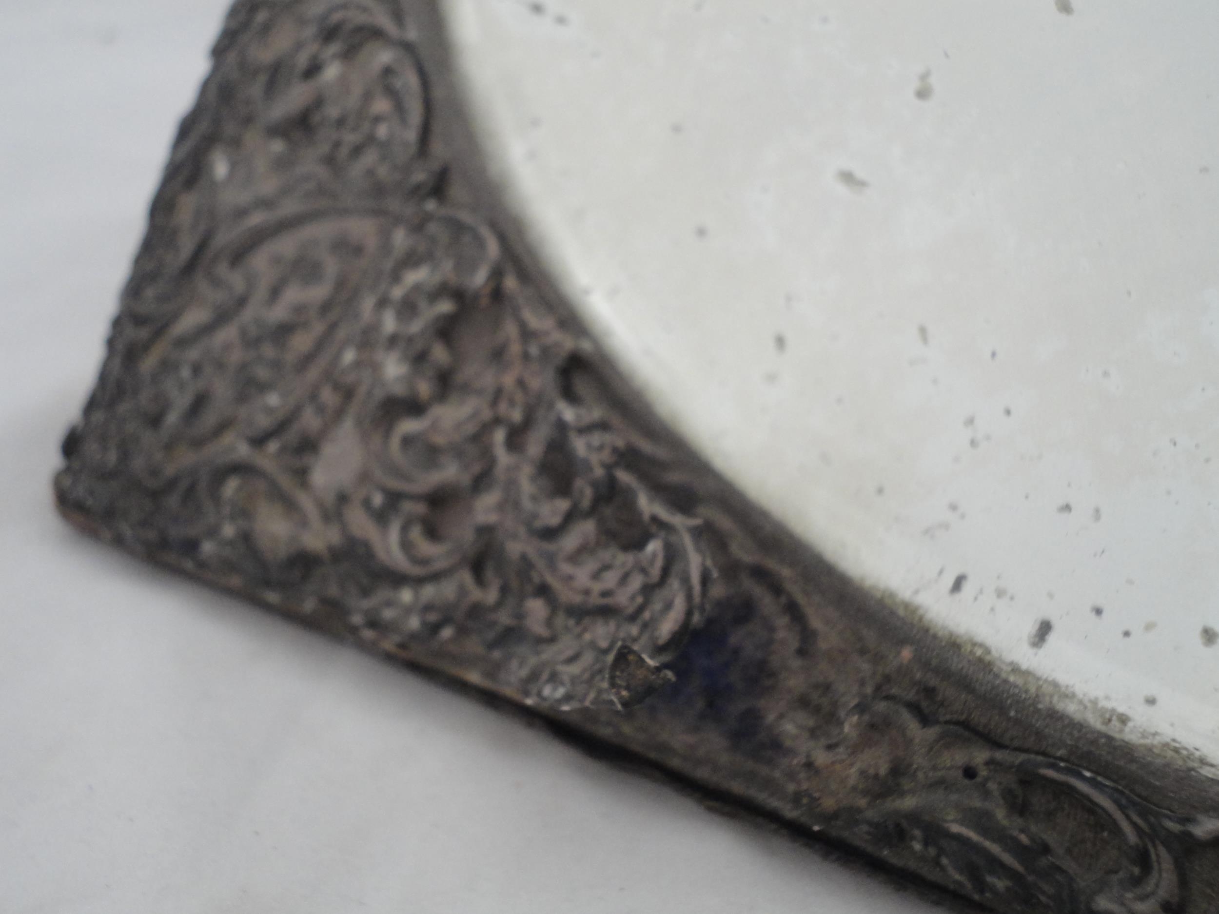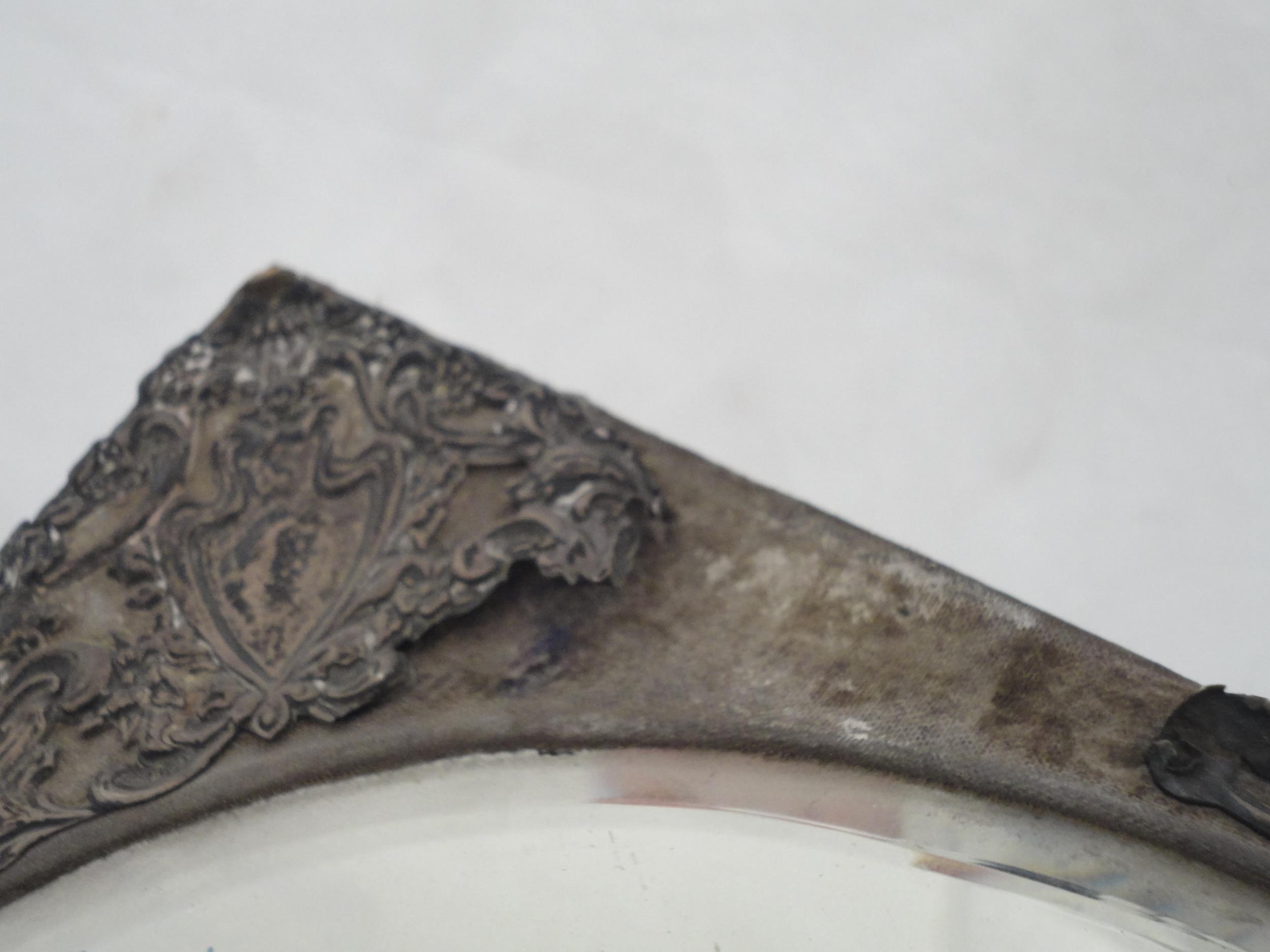 Large antique silver-mounted dressing mirror on easel support (a/f).