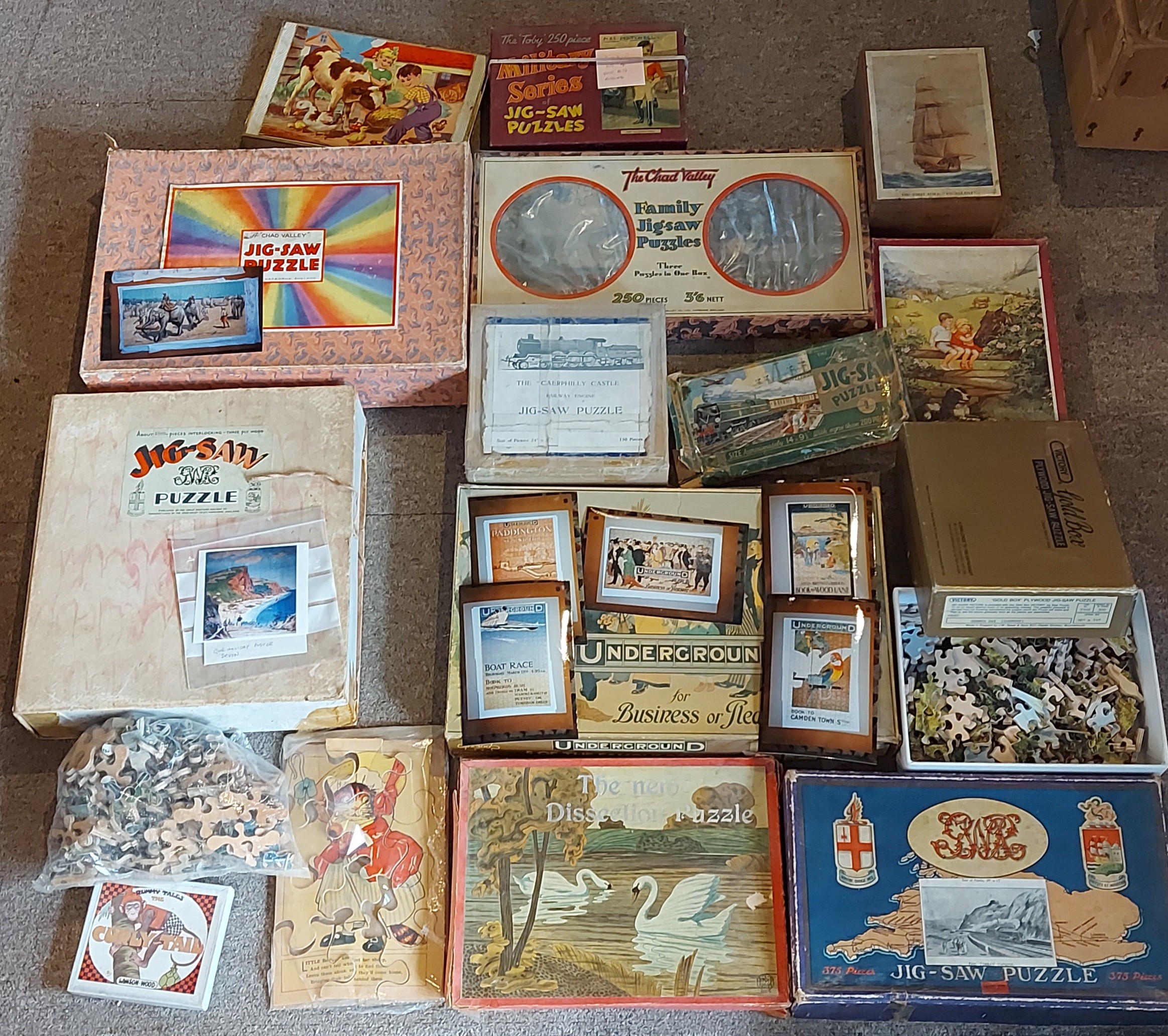 A Chad Valley GWR Jigsaw puzzle together with a collection of other Jigsaw puzzles