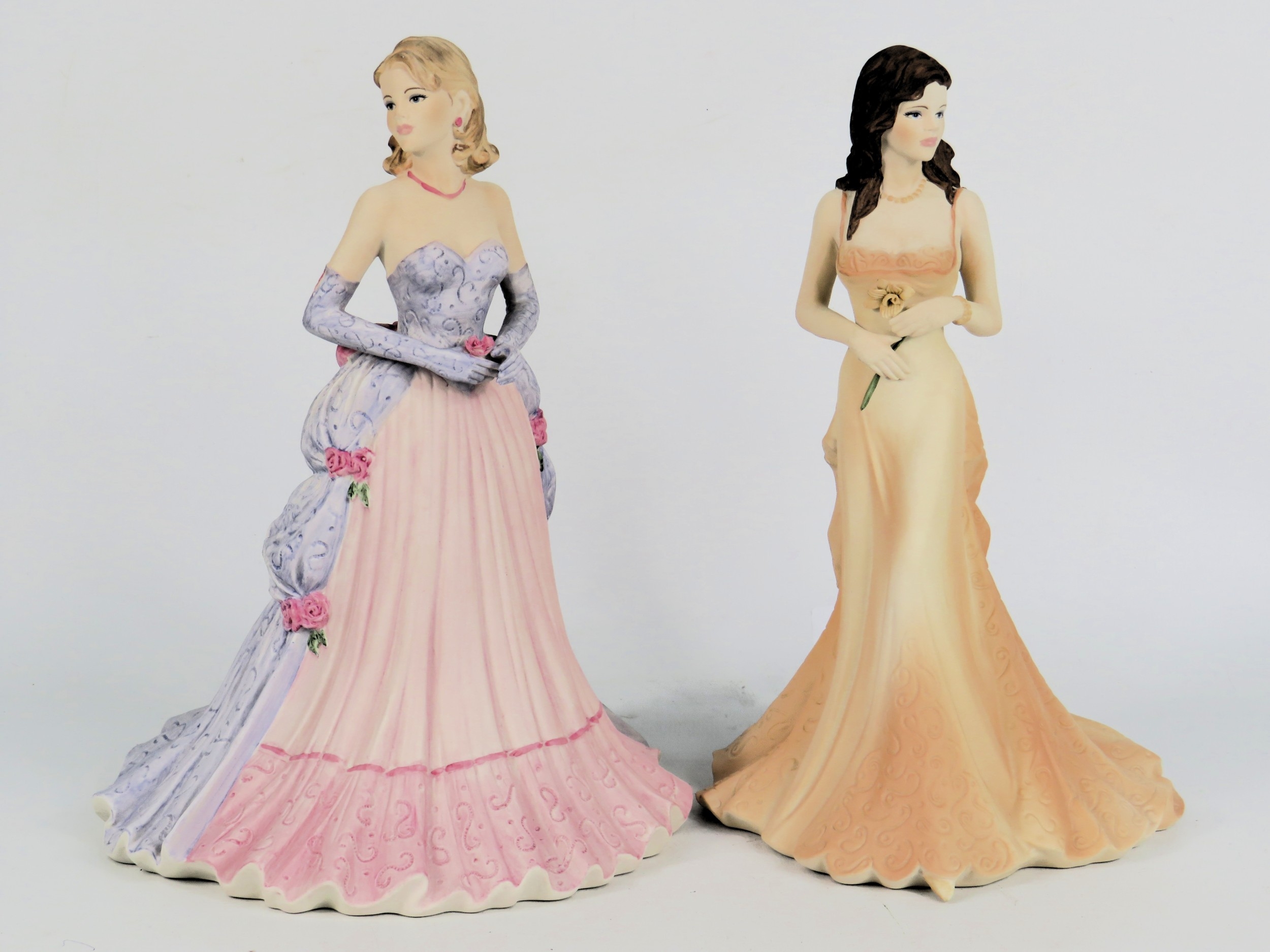 Two Coalport Age of Elegance Figurines - Special Occasion & Summer Saunter 22cm