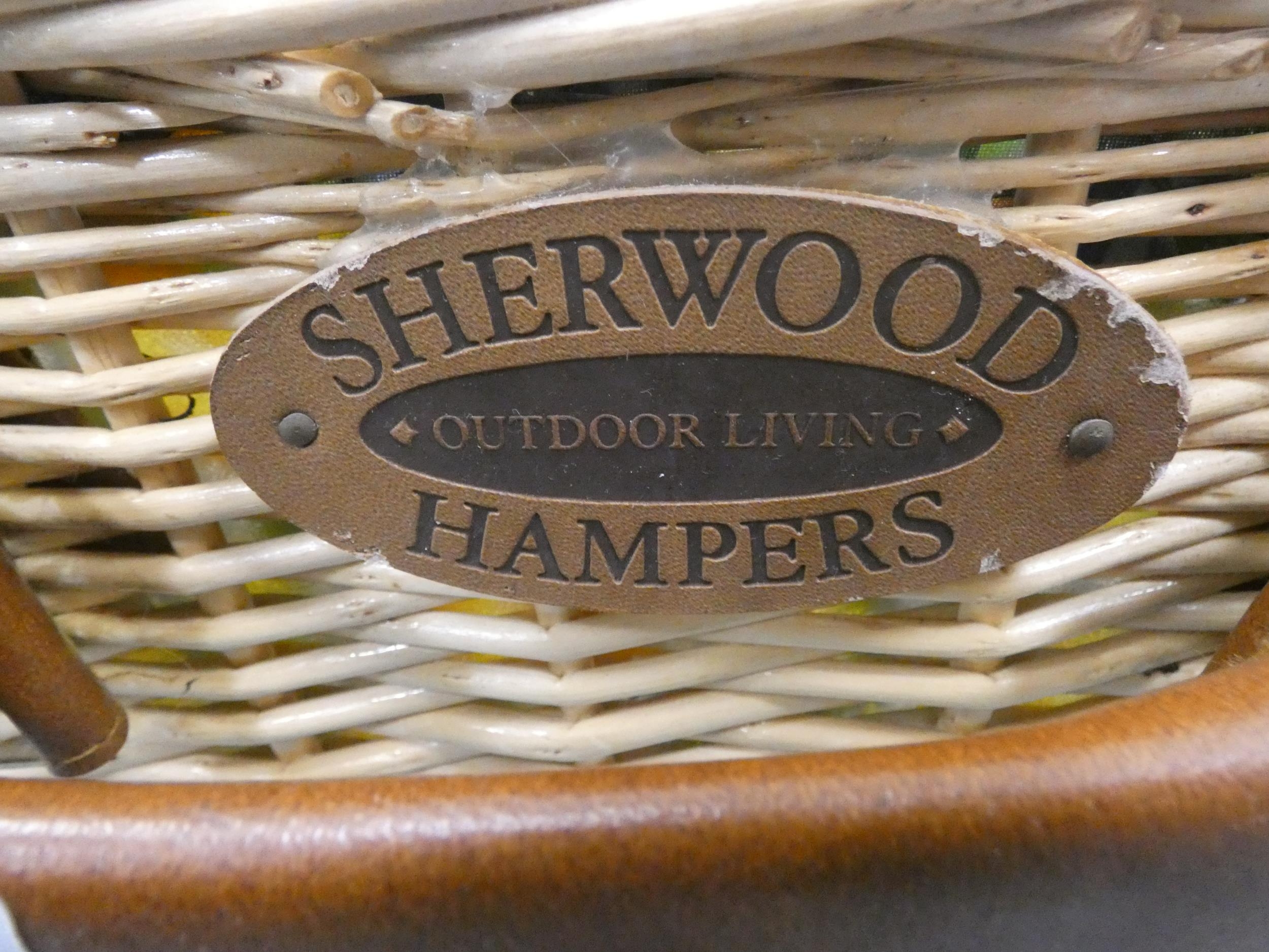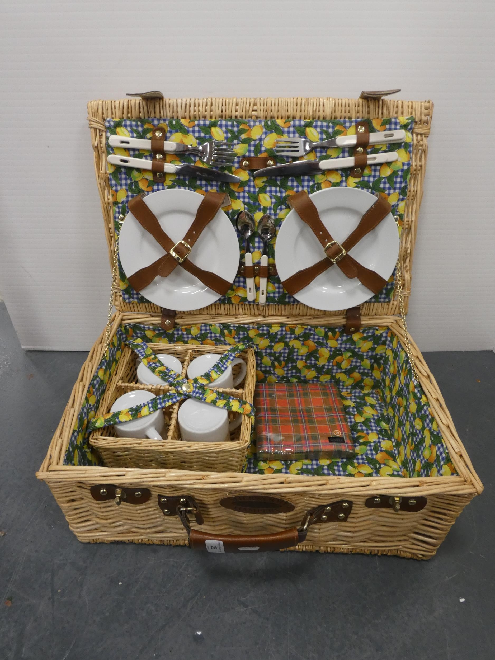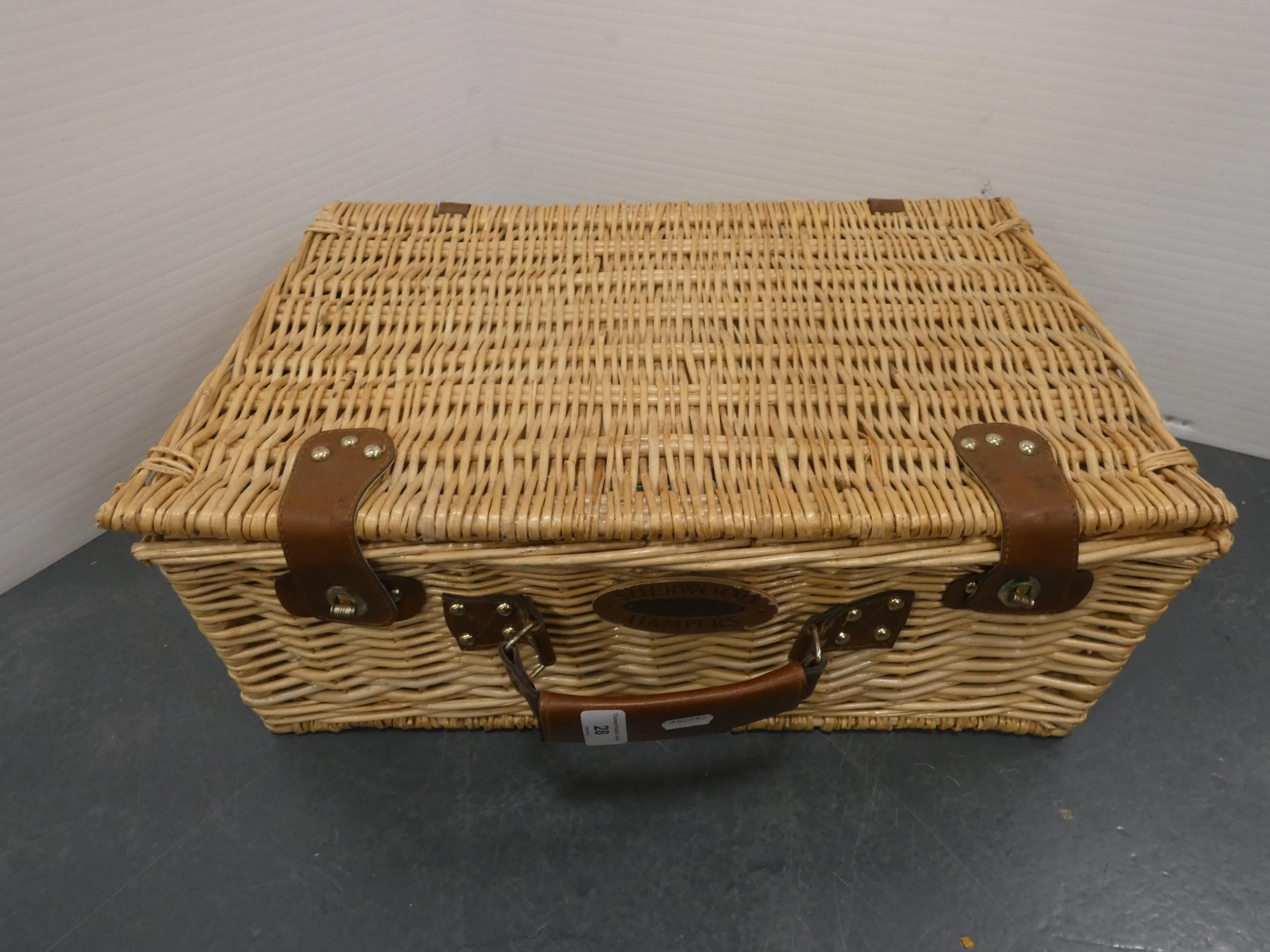 Wicker picnic hamper and contents.