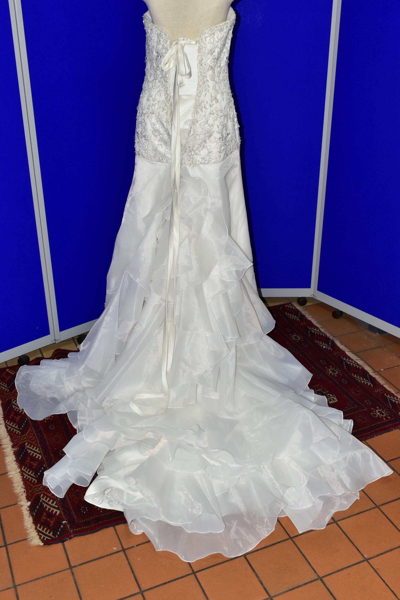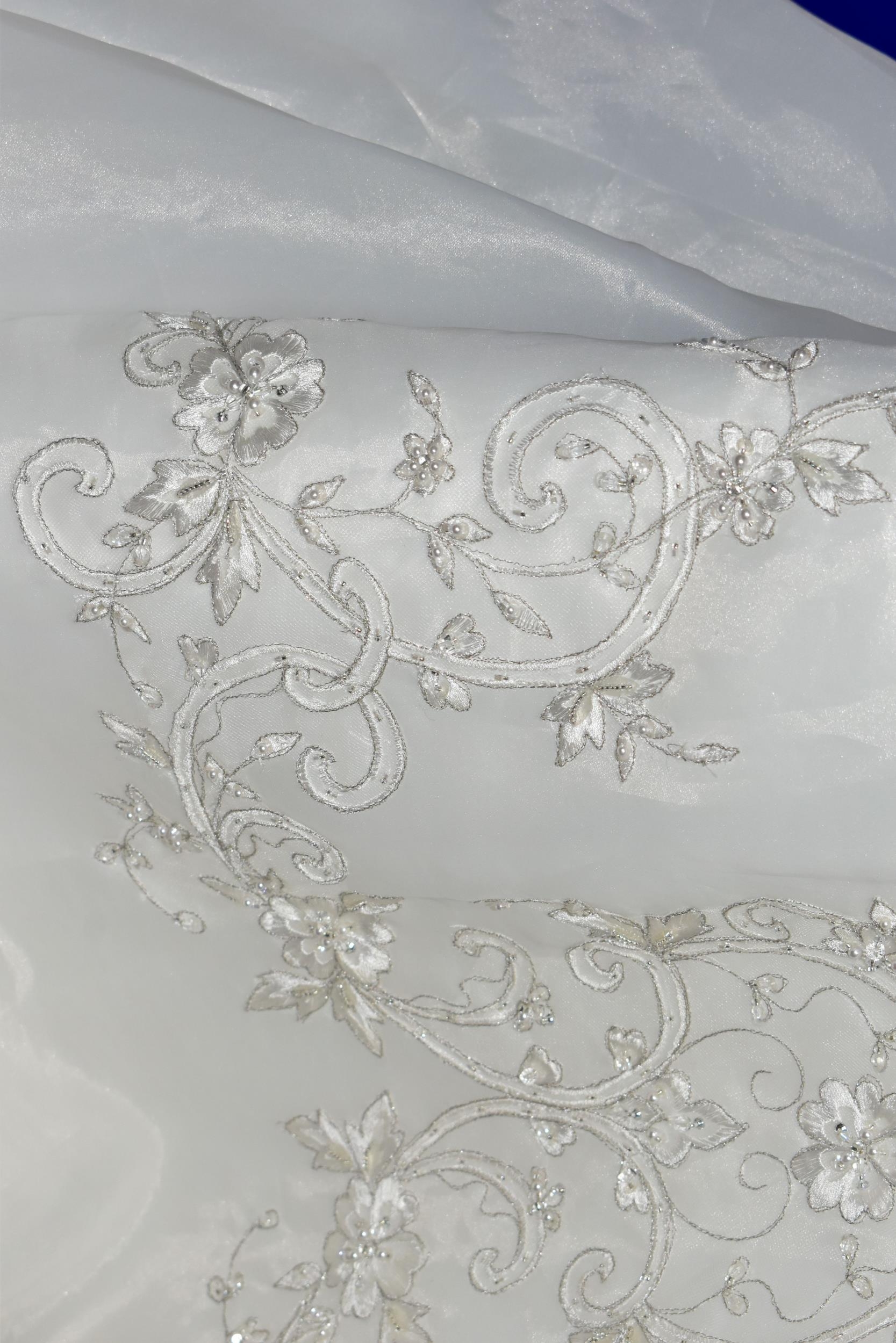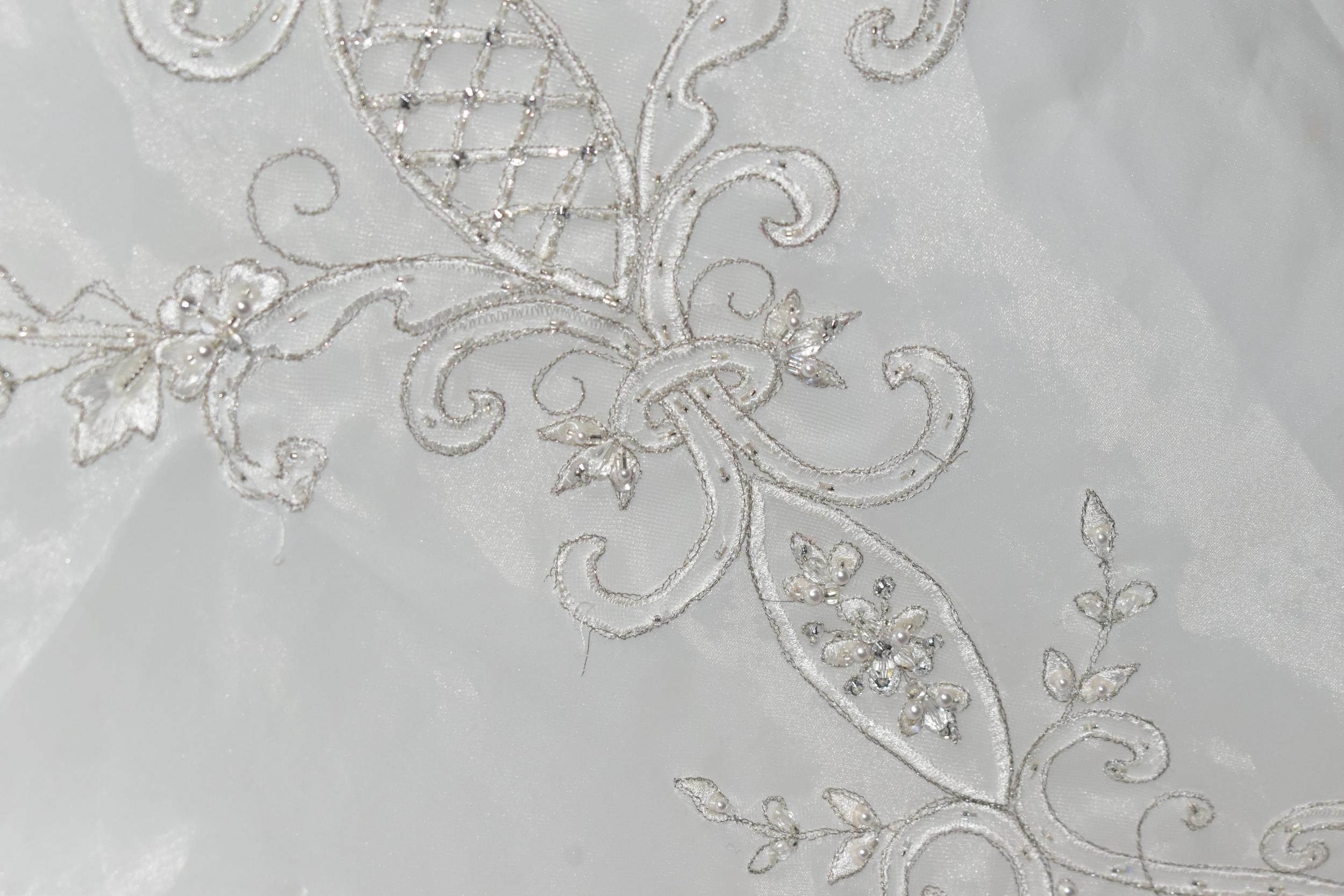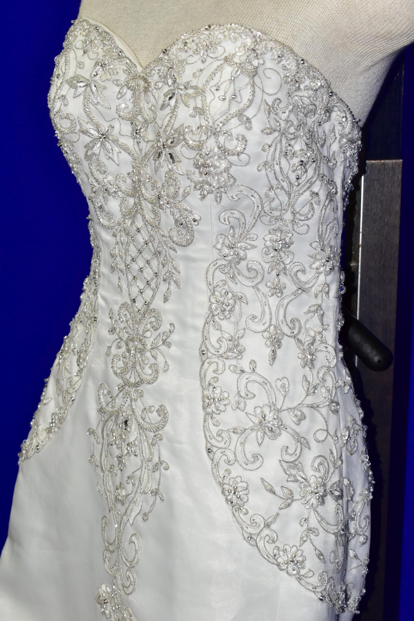 WEDDING DRESS, end of season stock clearance (may have slight marks) Ivory with silver beaded appliques, layered back skirt, satin ribbon fastening for easy alteration, size 8 (1)