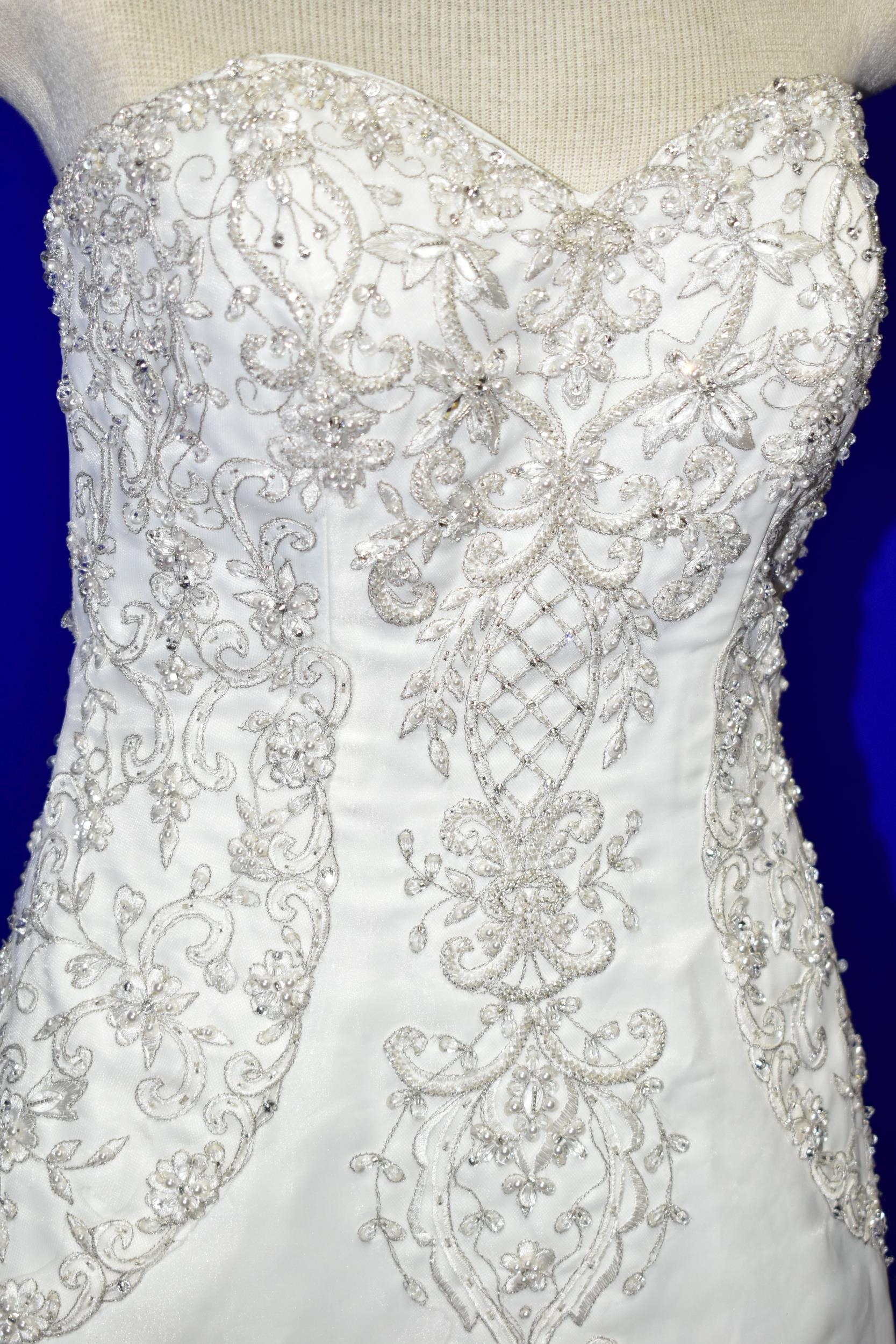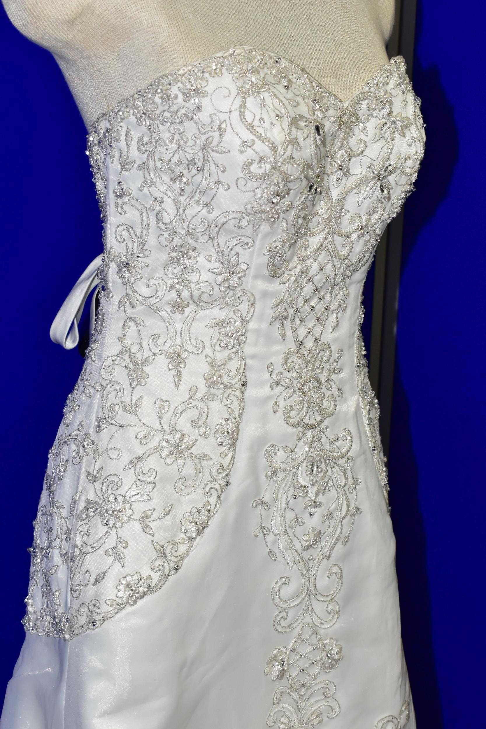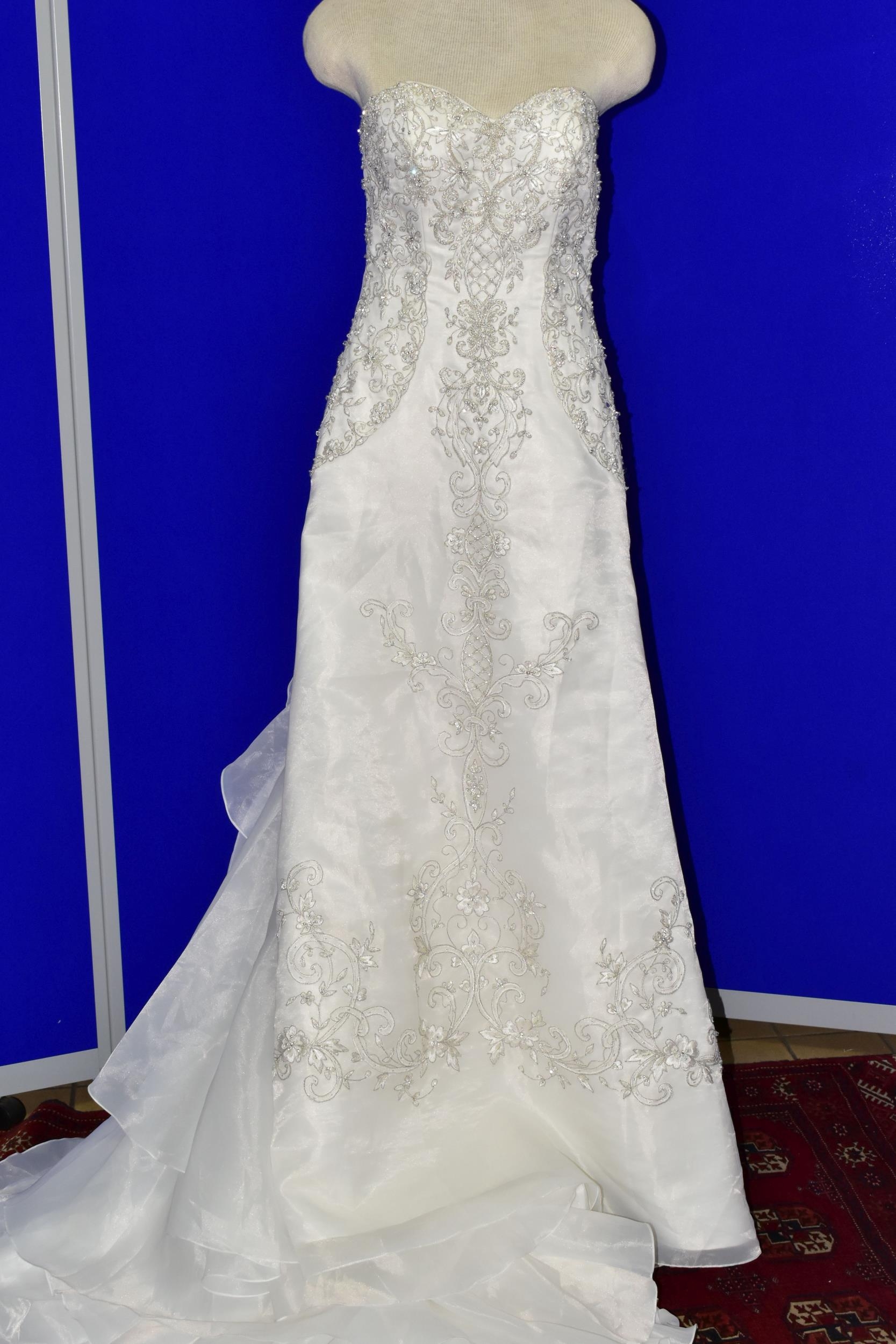 WEDDING DRESS, end of season stock clearance (may have slight marks) Ivory with silver beaded appliques, layered back skirt, satin ribbon fastening for easy alteration, size 8 (1)