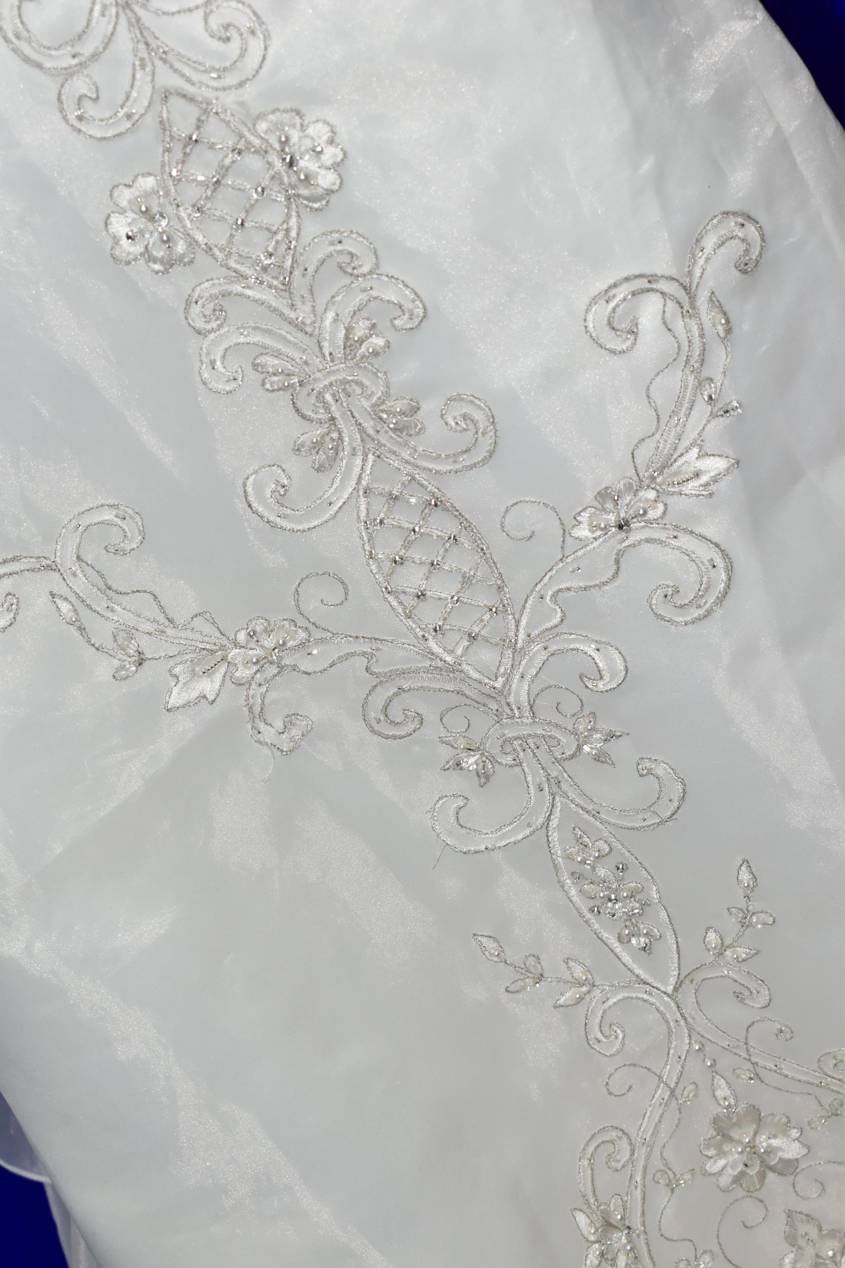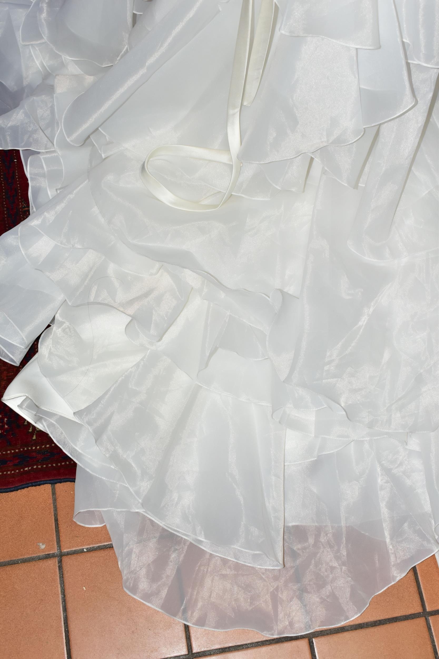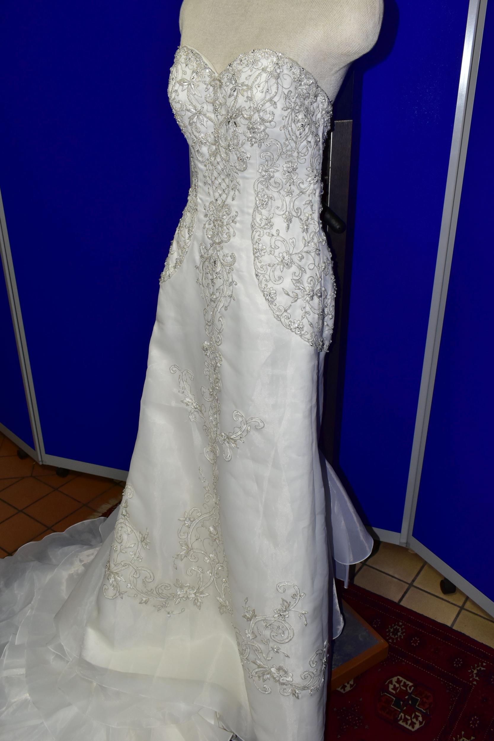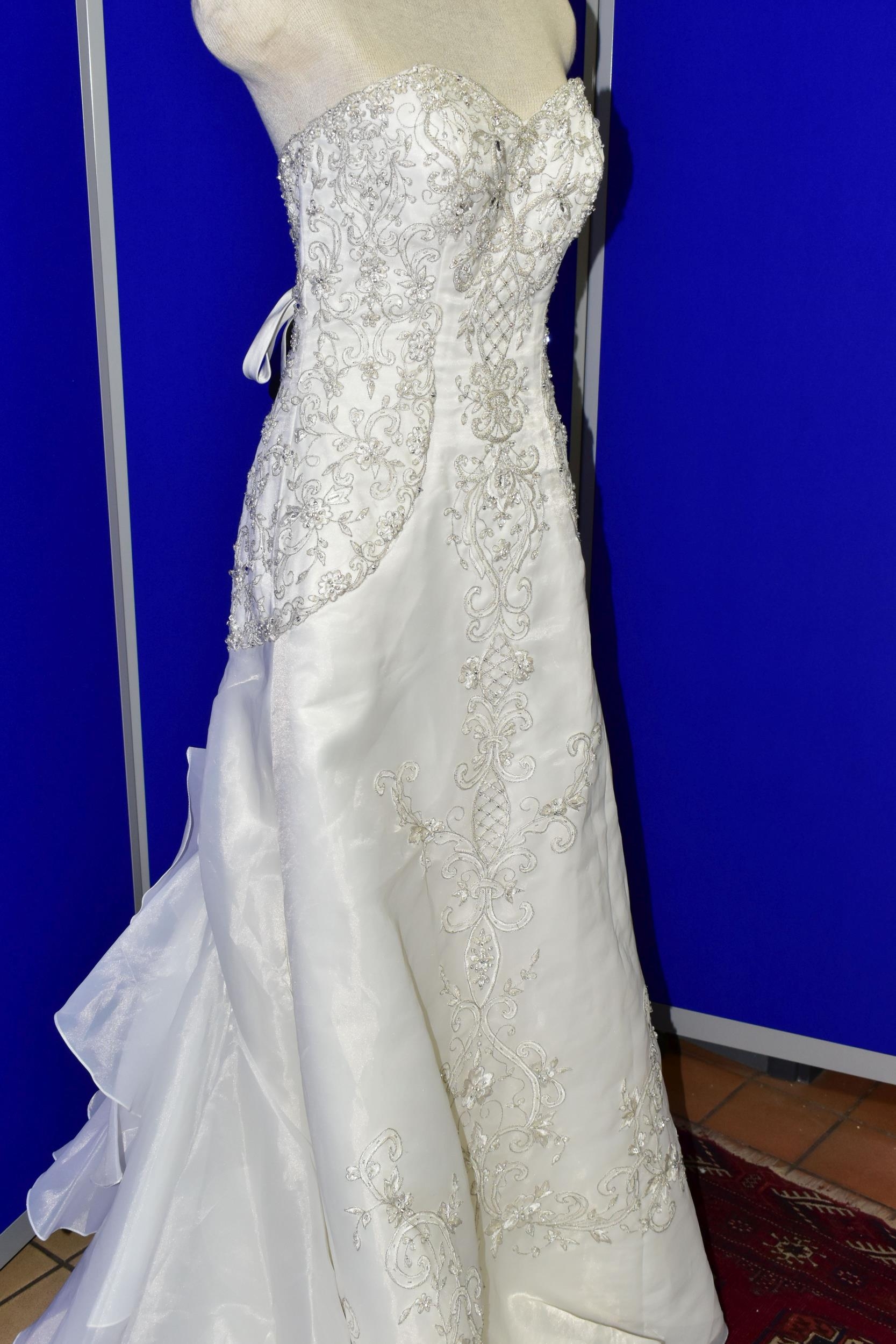 WEDDING DRESS, end of season stock clearance (may have slight marks) Ivory with silver beaded appliques, layered back skirt, satin ribbon fastening for easy alteration, size 8 (1)