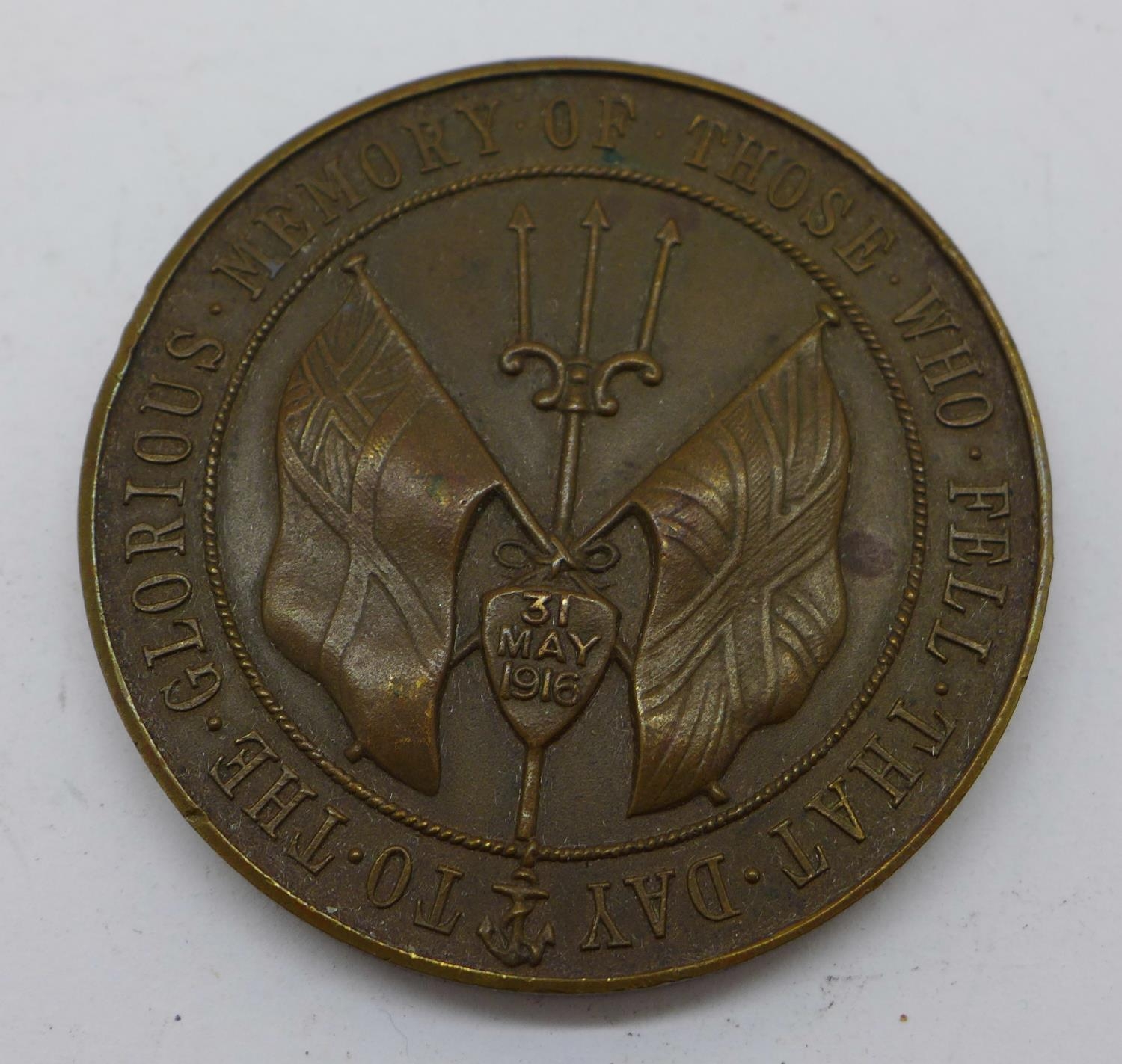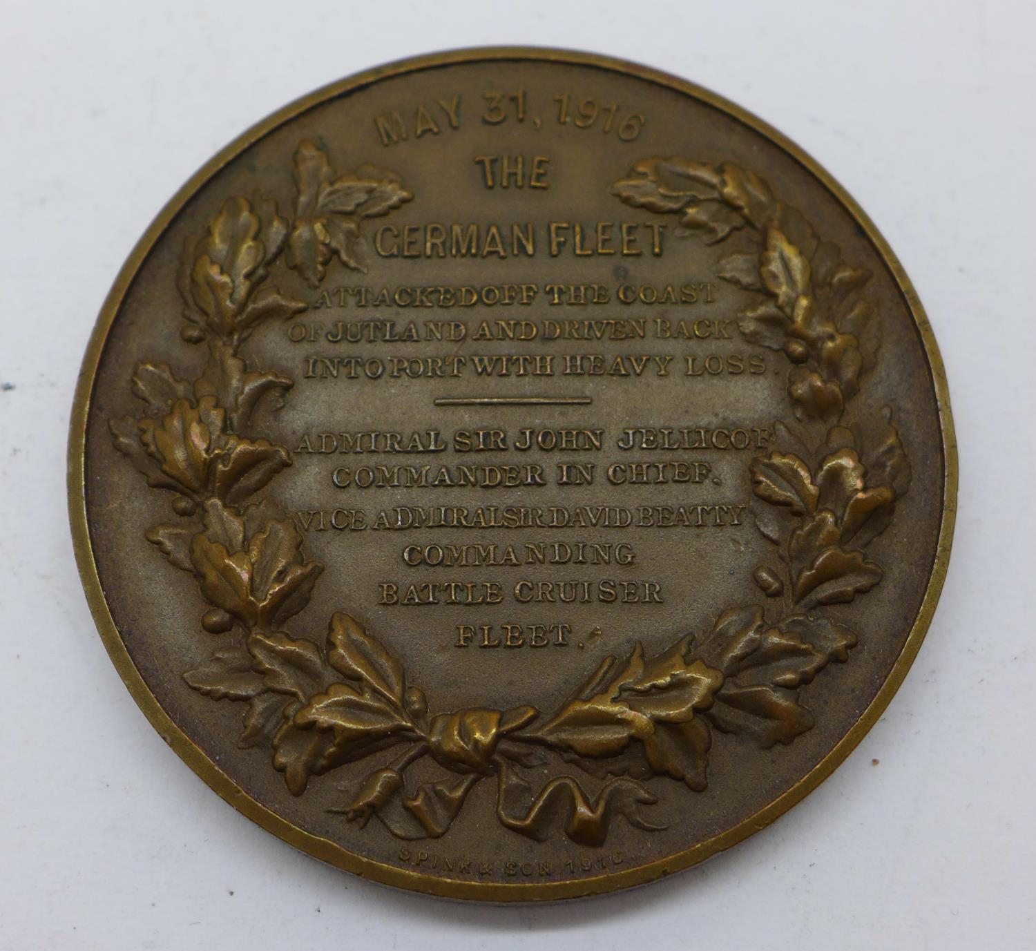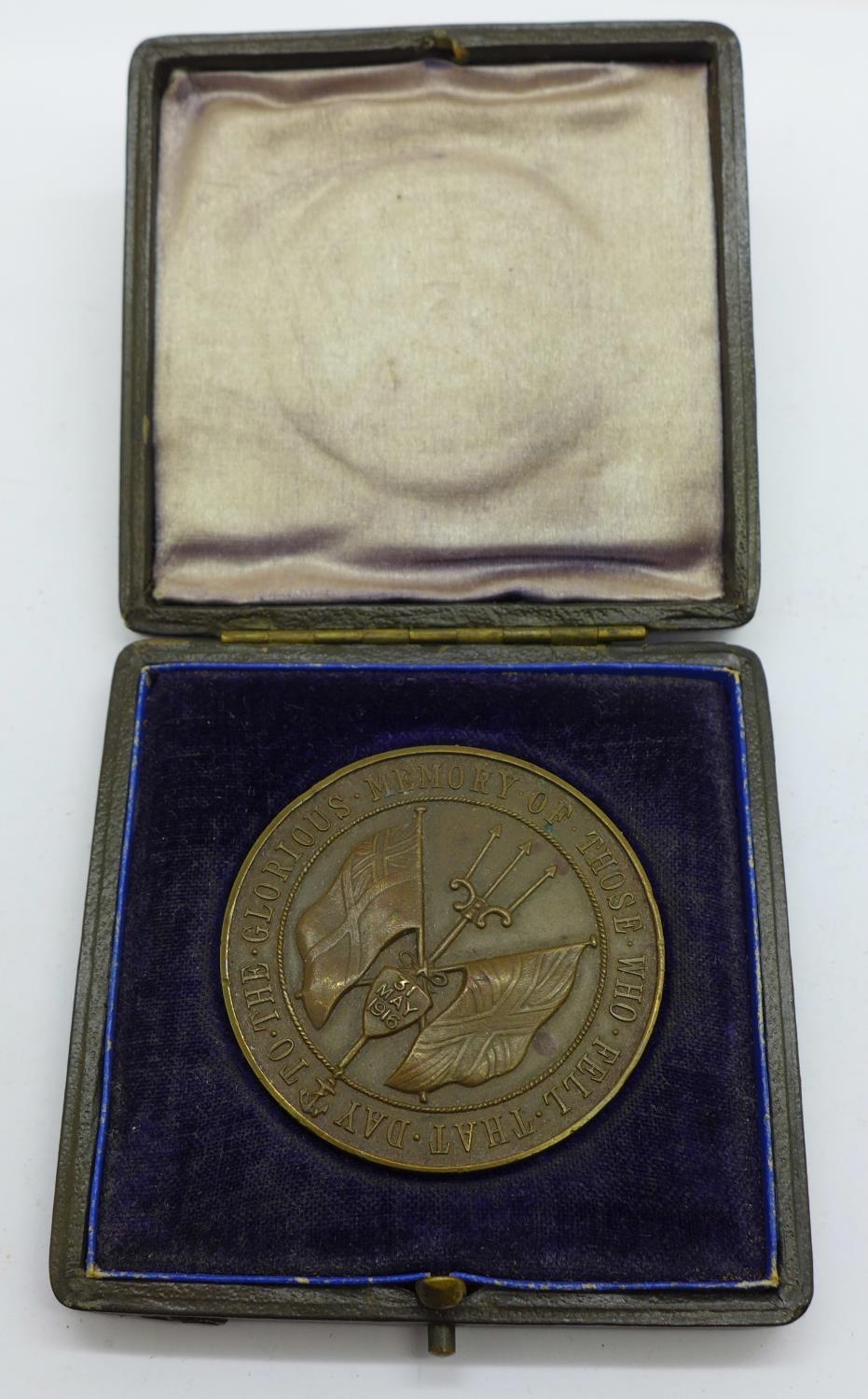 A Battle of Jutland bronze medallion, cased