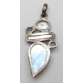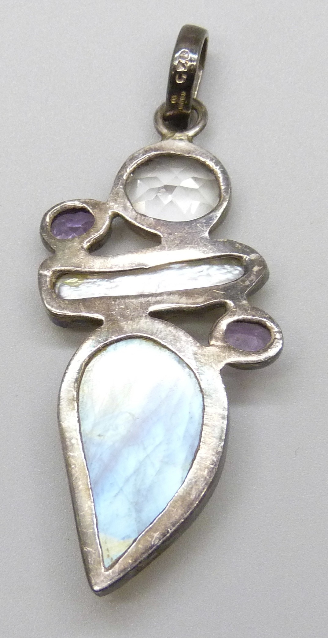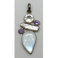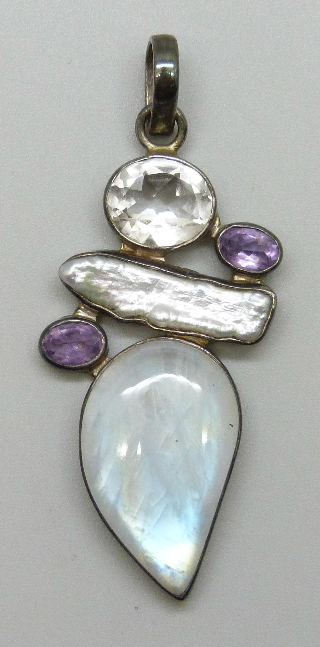 A silver, moonstone, amethyst and keshi pearl set pendant, hallmarked Edinburgh, 6.3cm including bail