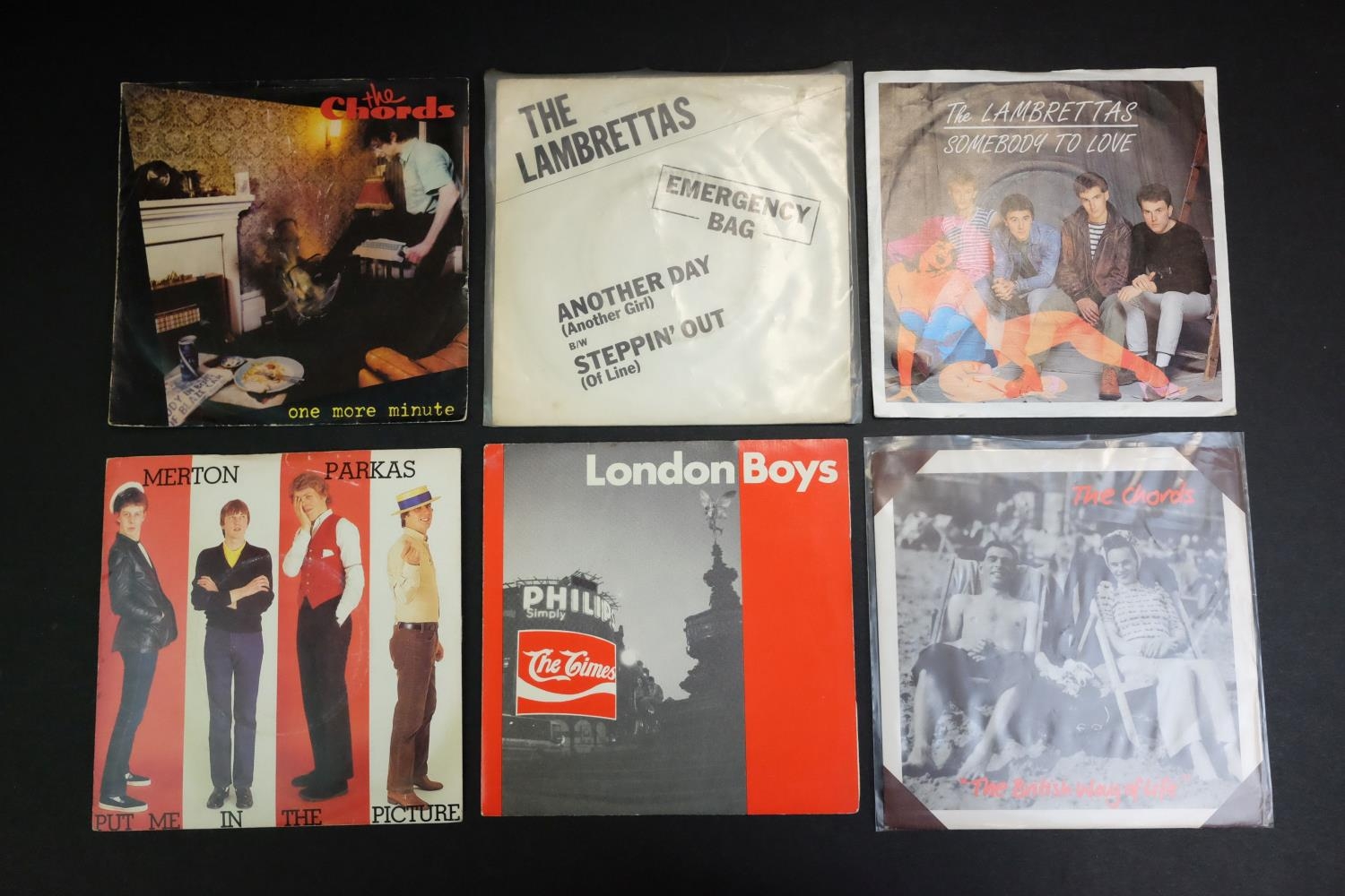 Vinyl - Mod Revival collection of approx 15 7" singles including The Chords x 8, Squire, The Times, The Gents, Merton Parkas and more. Condition varies, Vg overall