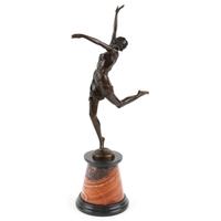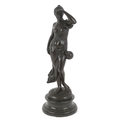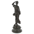 An early 20th century bronze sculpture of a maiden on a green marble plinth base, 28cm high.
