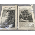 A Royal Worcester Holly Ribbons cake platter boxed, a Japanese Hawthorn blue & white plaque, a Royal Worcester gold lustre tureen, two carnival glass dishes, a reproduction blue and white planter, six Saturday Magazines and a Penny Magazine c. 1834