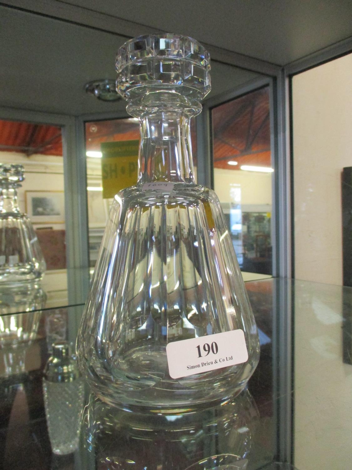 A Baccarat glass decanter of tapered form