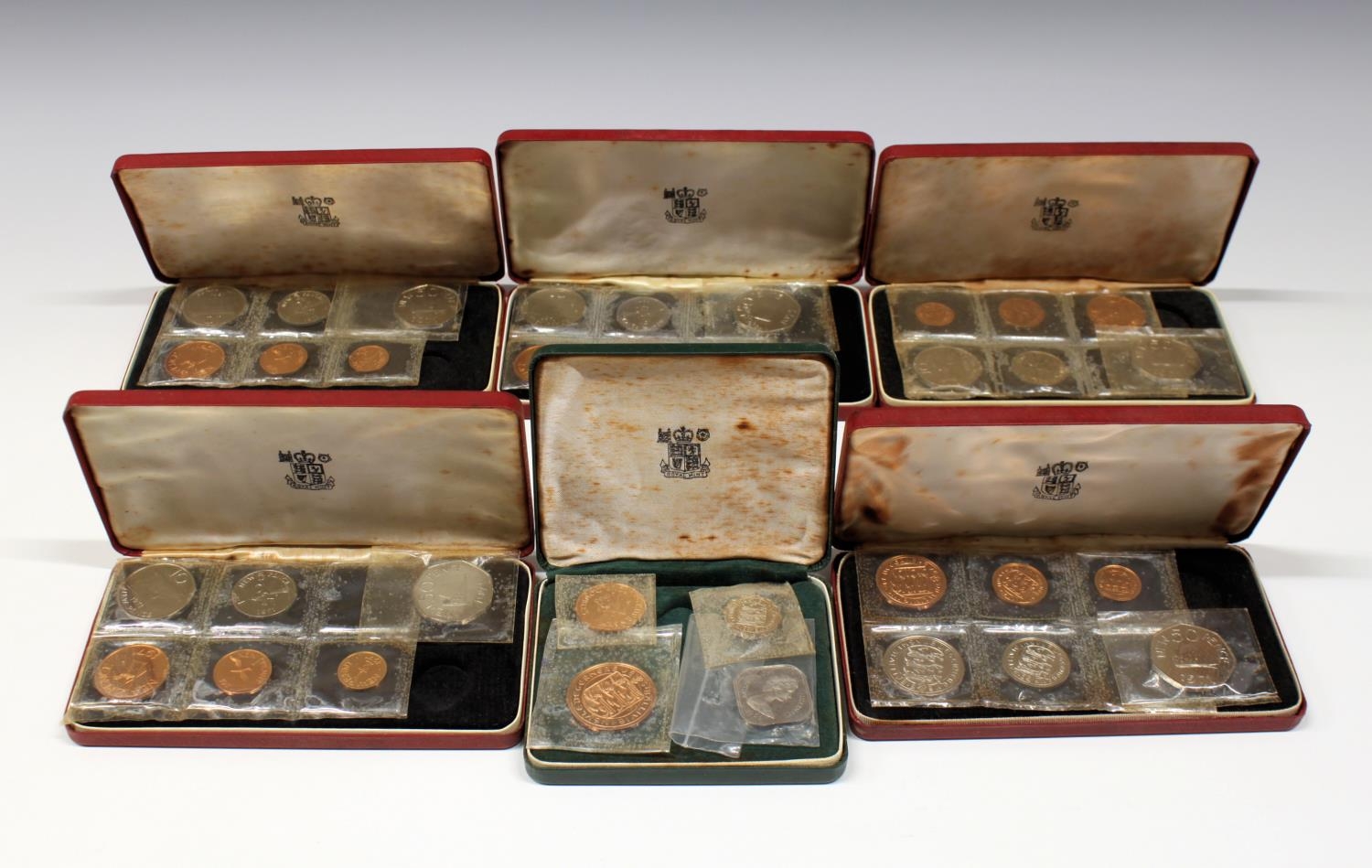 Coins - Five Guernsey 1971 decimal proof sets and a 1966 set, five sets with outer card boxes.