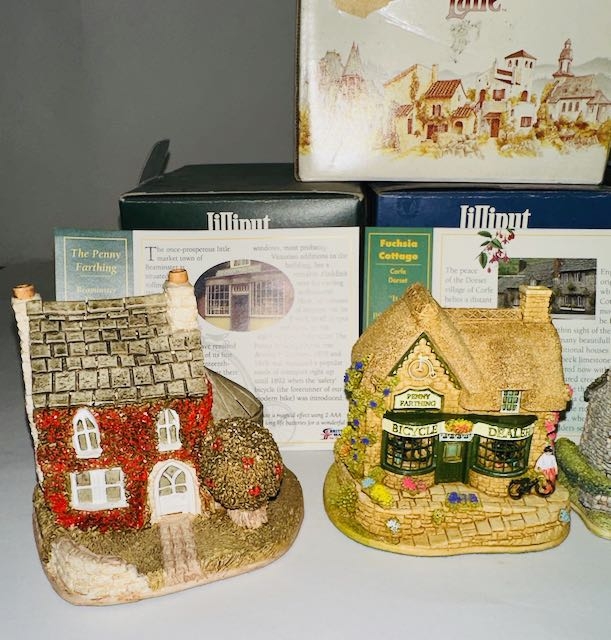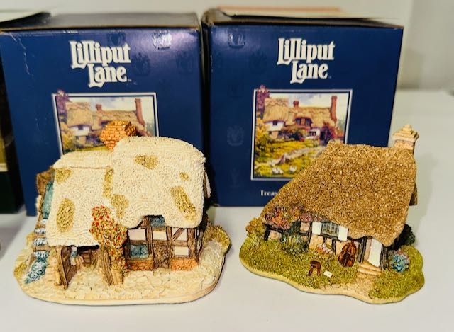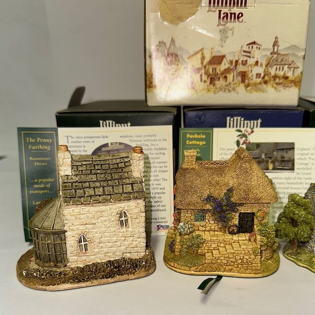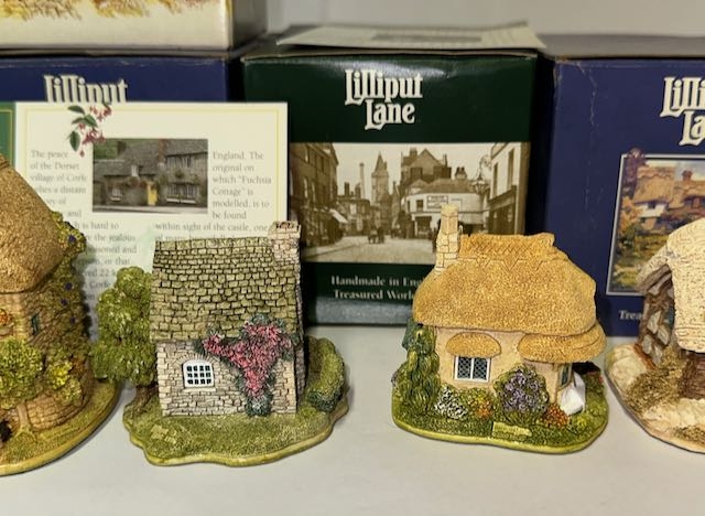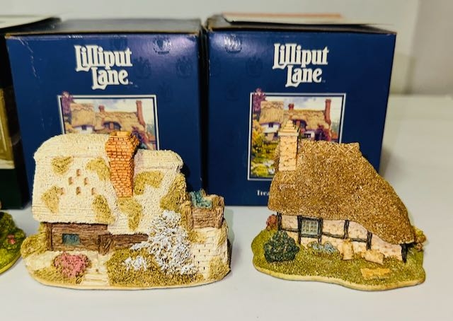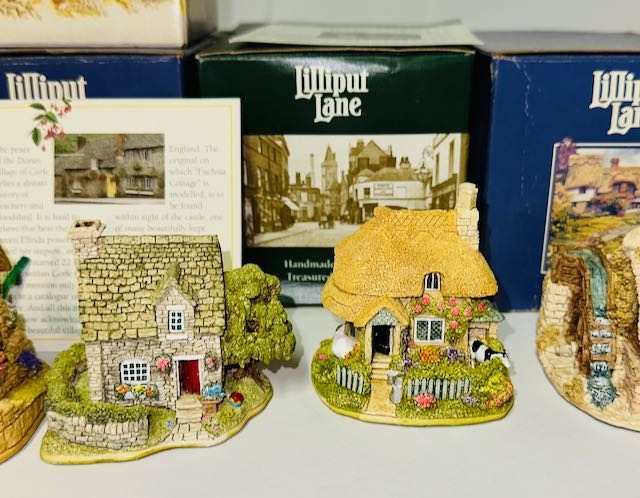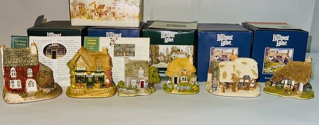 Boxed Lilliput Lane x6 - Fiddlers Folly, Watermill, Cream Of the Crop, Fuchsia Cottage, The Penny Farthing And Holly Cottage With 4 Deeds