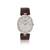 Condition Report: Overall grade:Very good condition. Case:Light surface wear consistent with age. Patek Philippe service sticker on the caseback. Dial:Light ageing and minor marks visible. Glass:Minor scratches. Movement:Not tested for accuracy. Crown:Correct. Running at the time of cataloguing. Overhaul recommended at buyer’s expense. We do not test any watches for their accuracy and as such, timekeeping cannot be guaranteed. All lots are sold as is, without any representation or warranty as to their condition or function. Condition Reports are provided for guidance only and may not refer to all imperfections, restorations, or replacements. Prospective buyers are responsible for ensuring they are completely satisfied with the condition of the lot before bidding. Although Adam’s endeavours to note any replacement parts in our Condition Reports, we cannot confirm that each component is original, or that any replacements are made using original manufacturer parts.