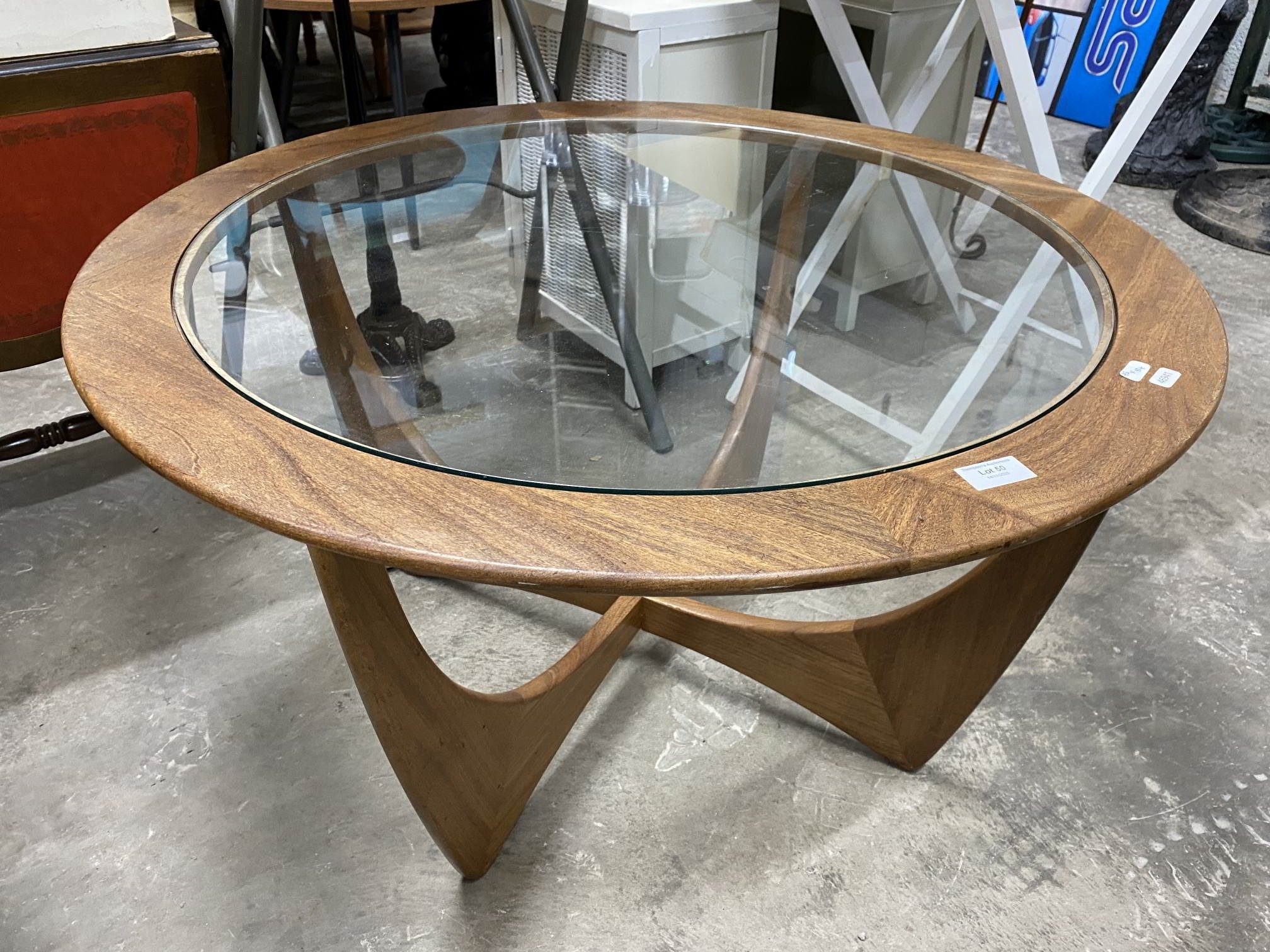 Mid century 'G Plan' teak Astro coffee table 45H 84cm diameter