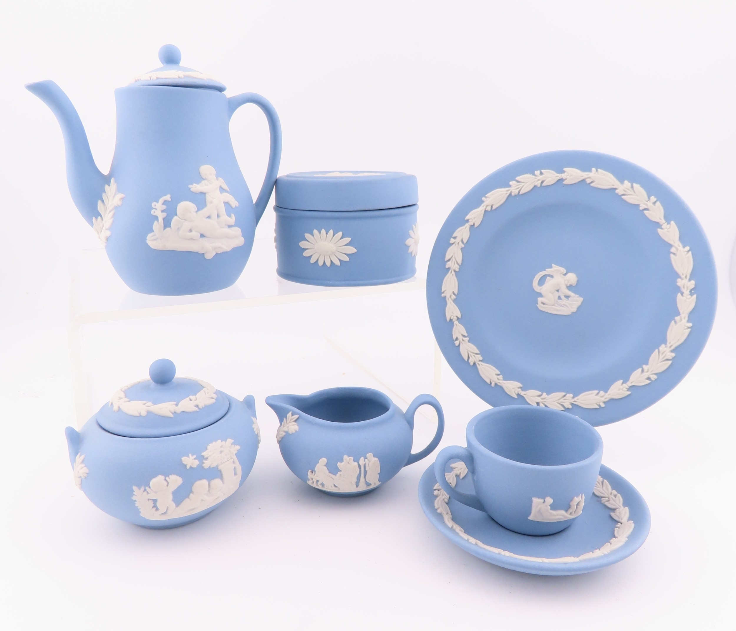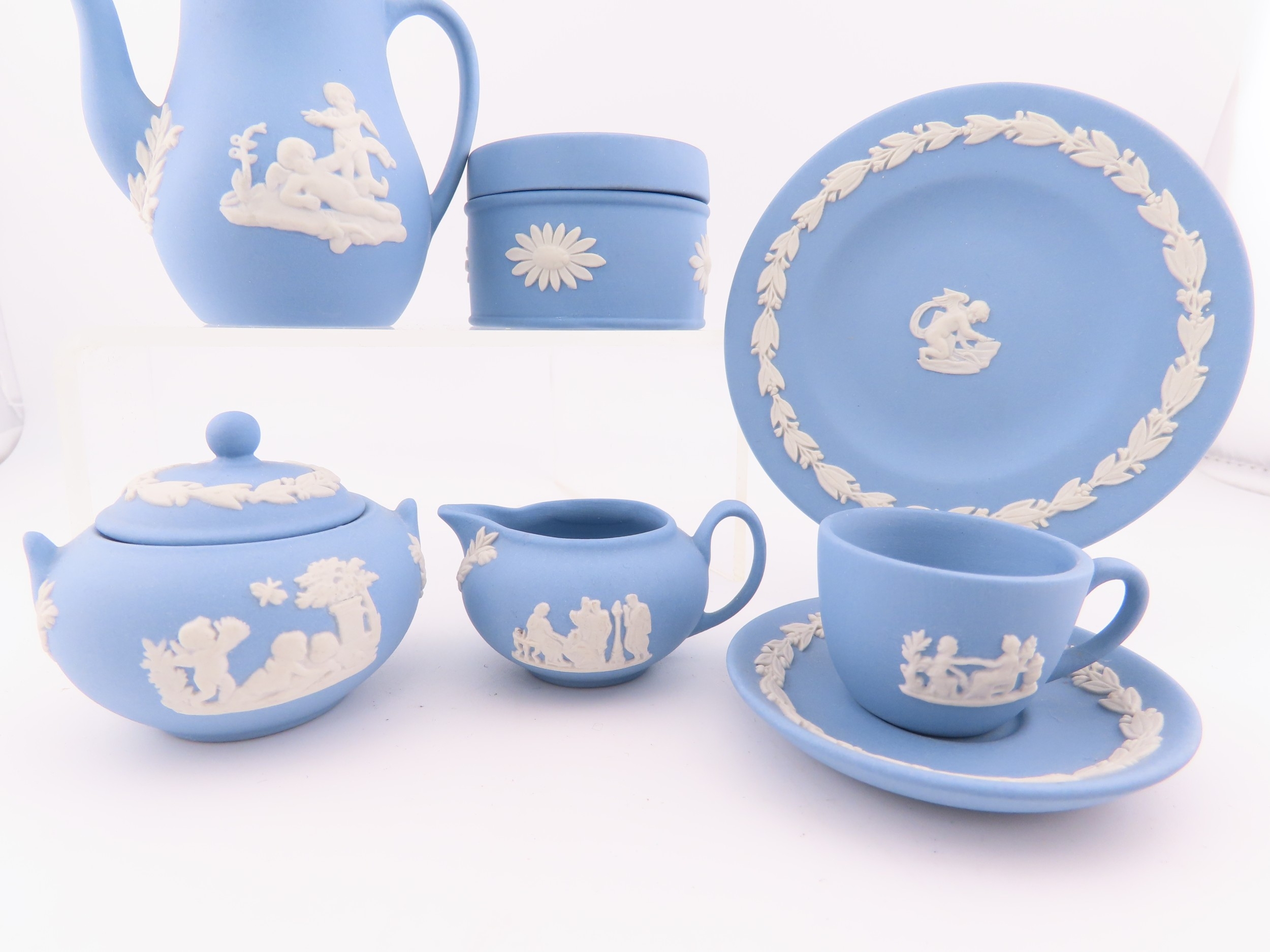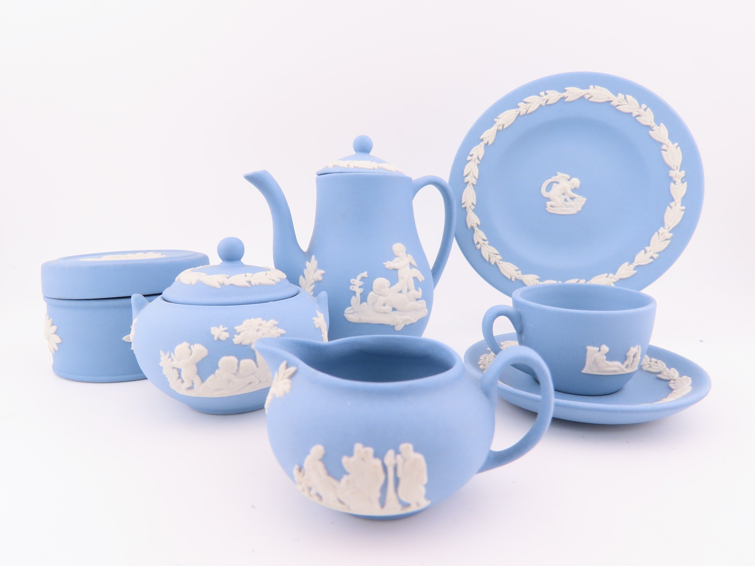 Wedgwood blue Jasperware miniature tea set etc.