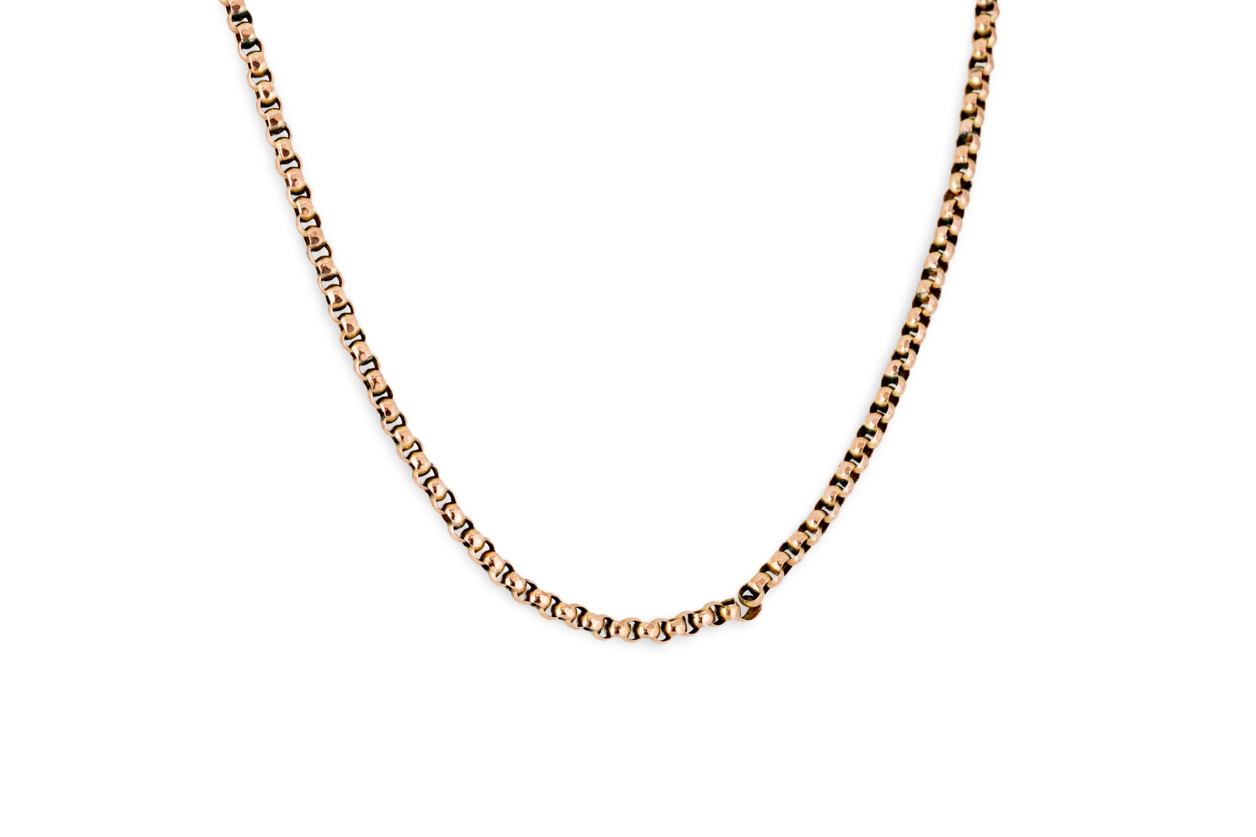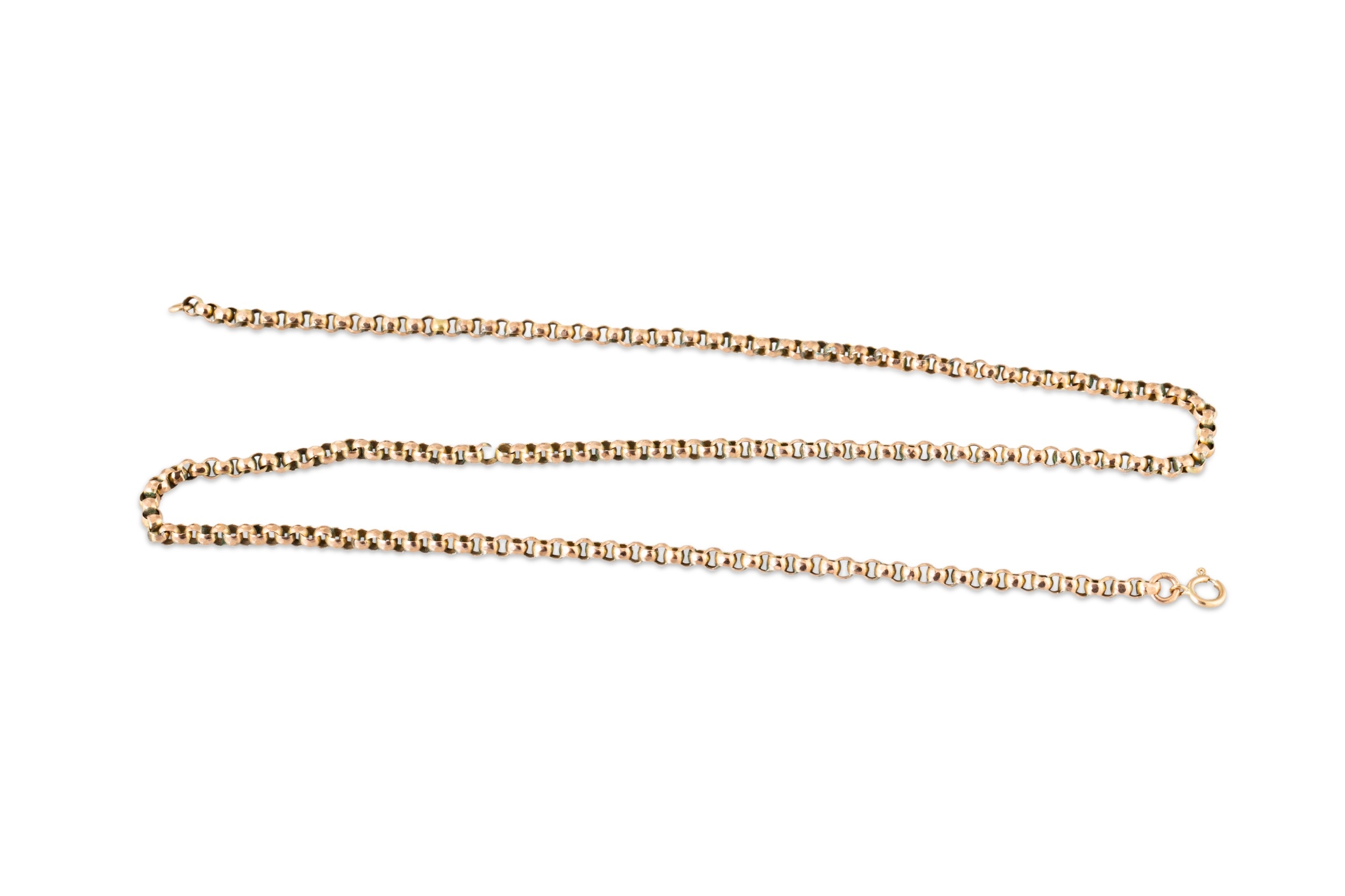 AN ANTIQUE 9CT GOLD BELCHER LINK NECK CHAIN, 9.9 g. Condition: needs repair