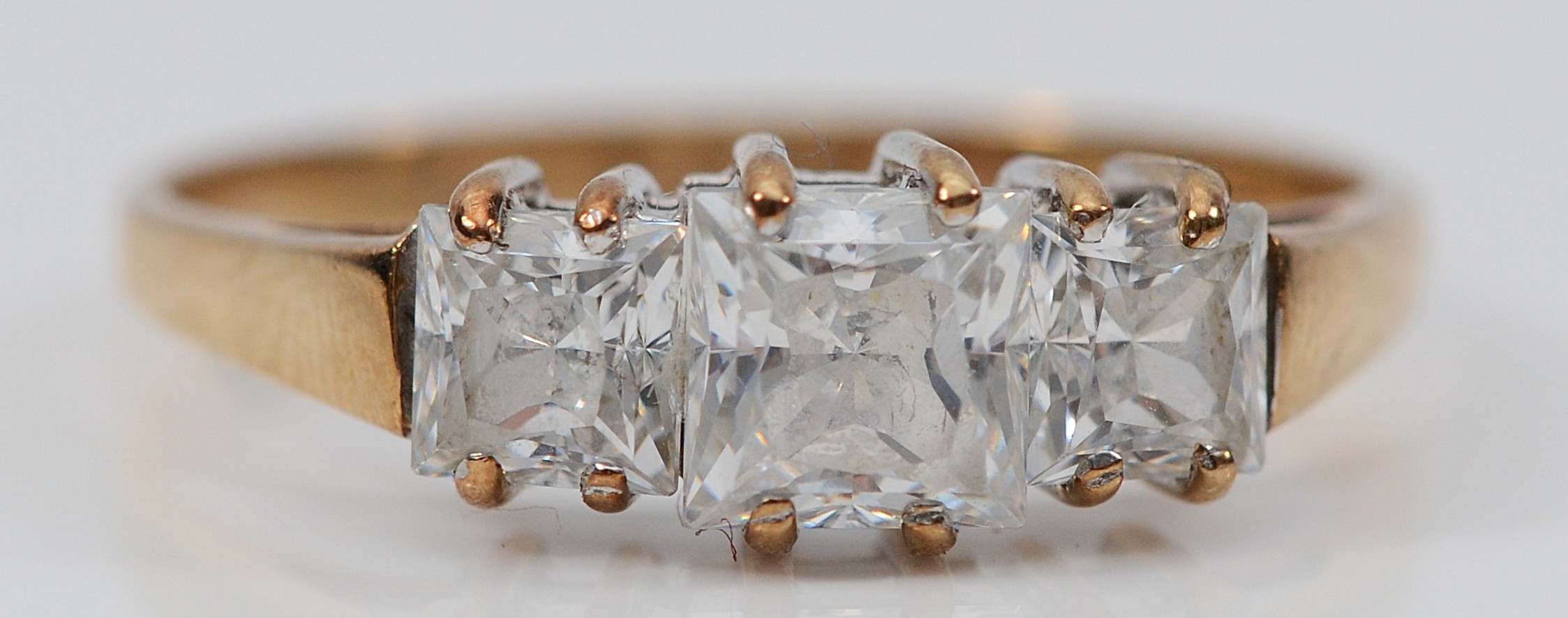 A 9ct gold cubic zirconia three stone ring, P 1/2, 2g