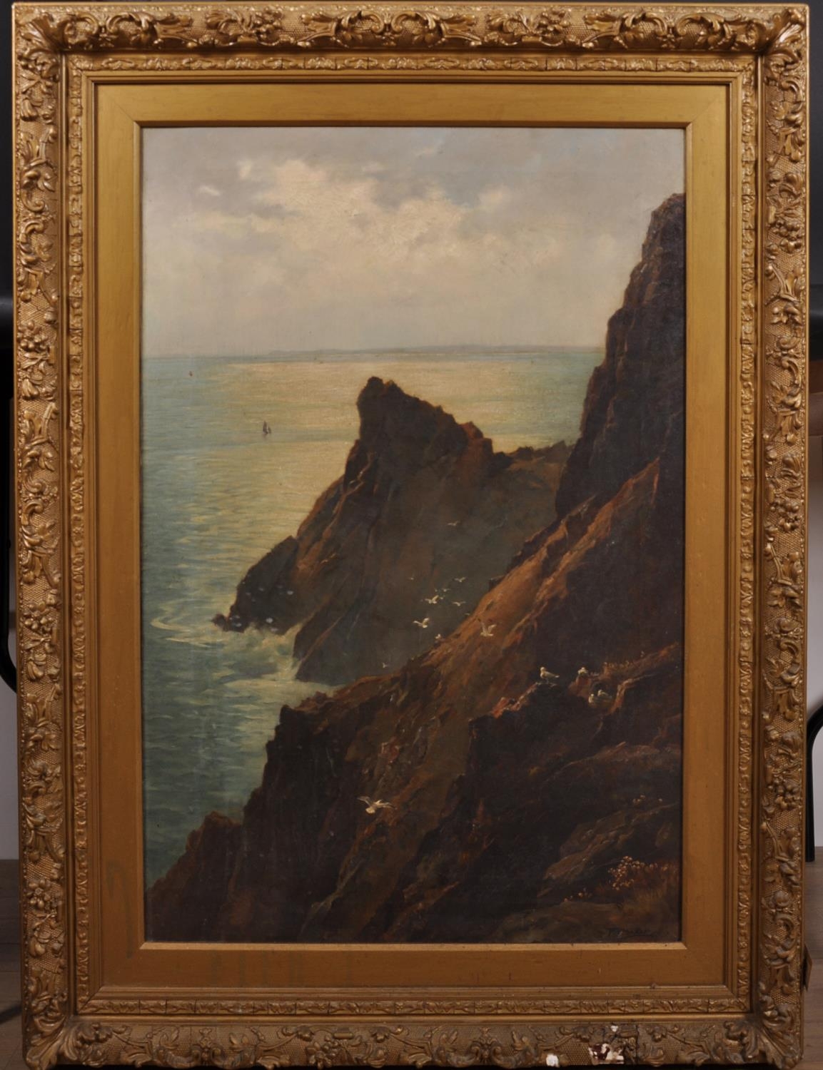 Frederick William Baker (1881-1936) British. “Summer Eve near Kynance, Cornwall”, Oil on Canvas, Signed, and Inscribed on a label on the reverse, 32” x 21” (81.2 x 53cm)