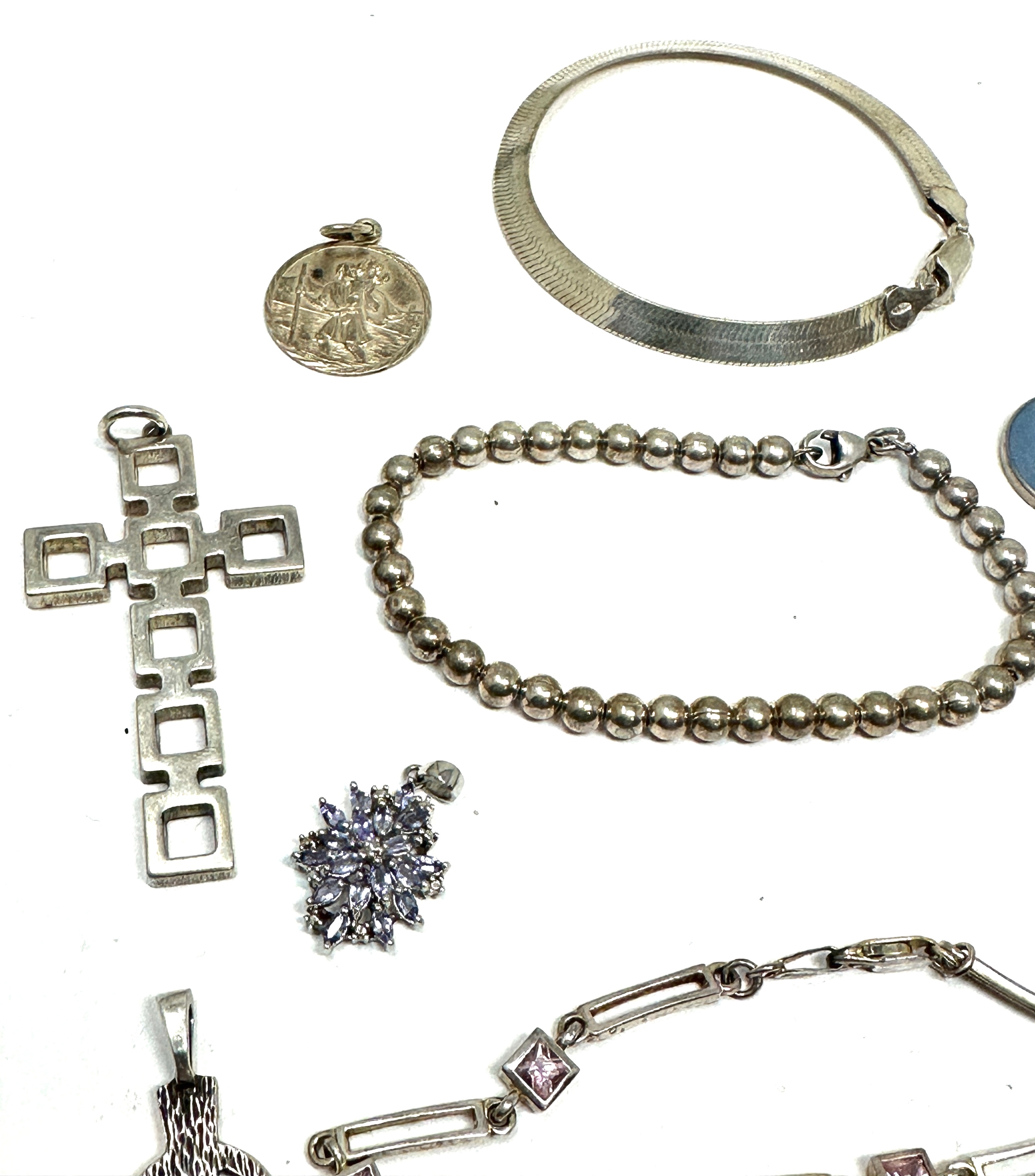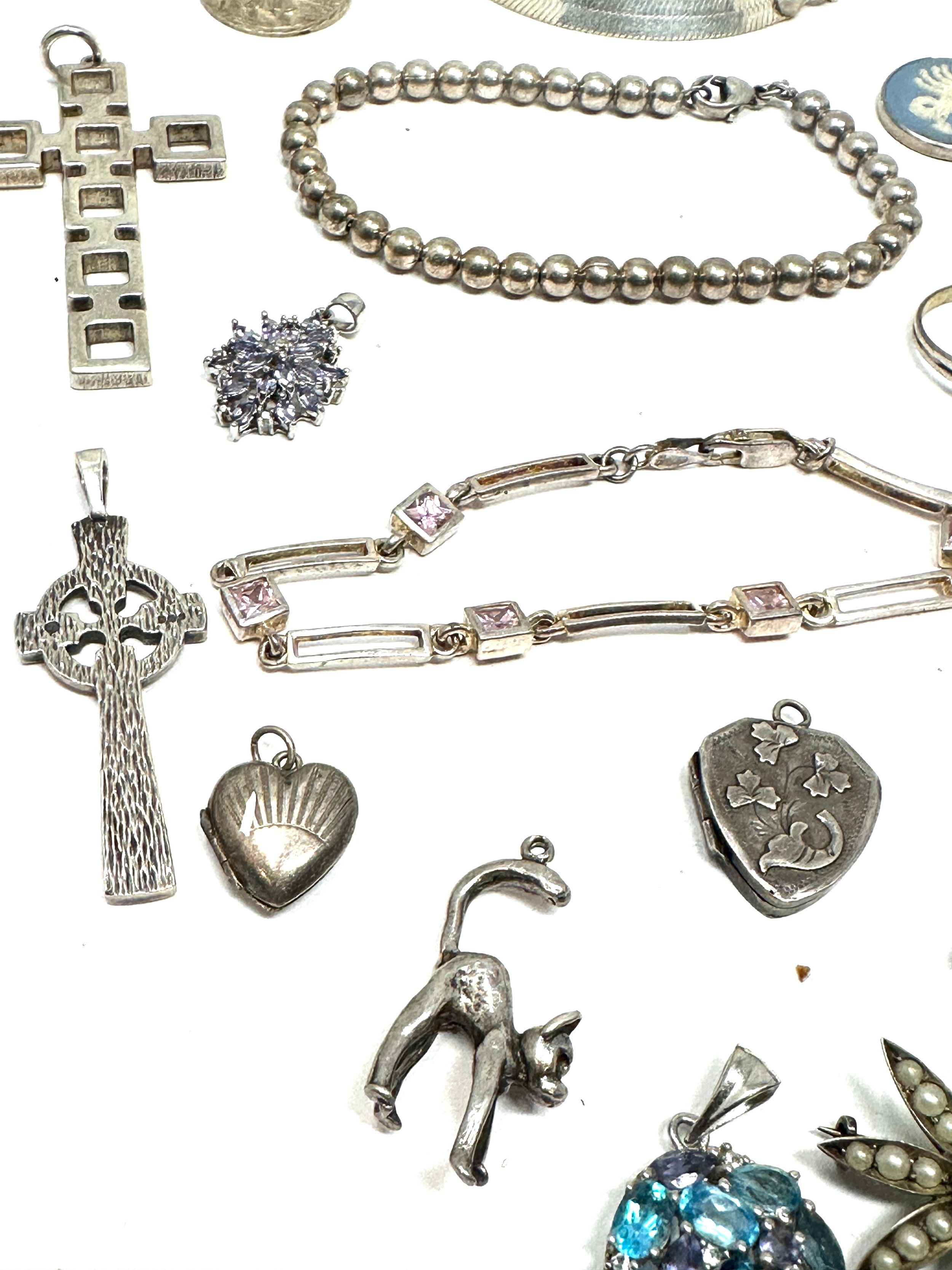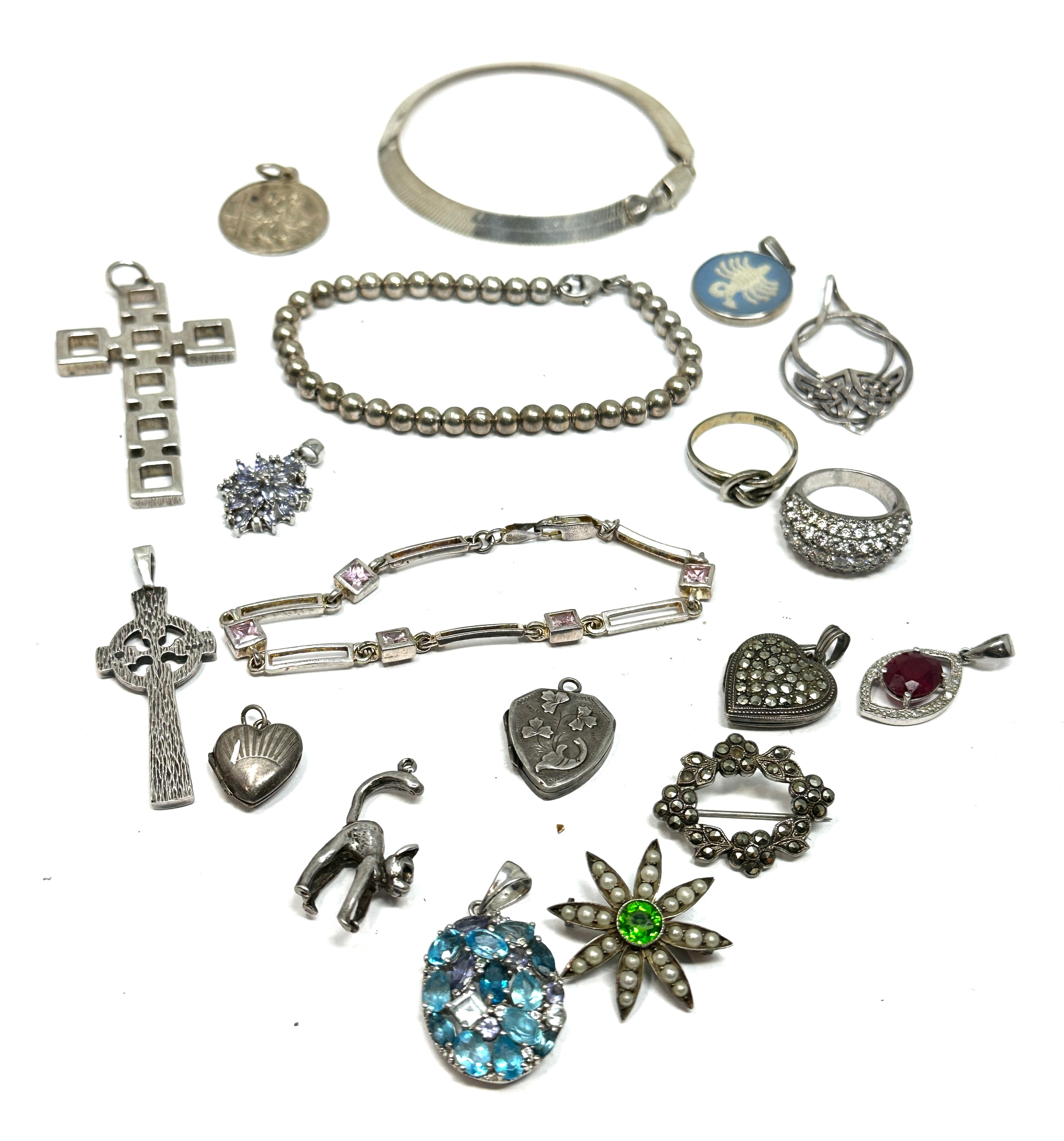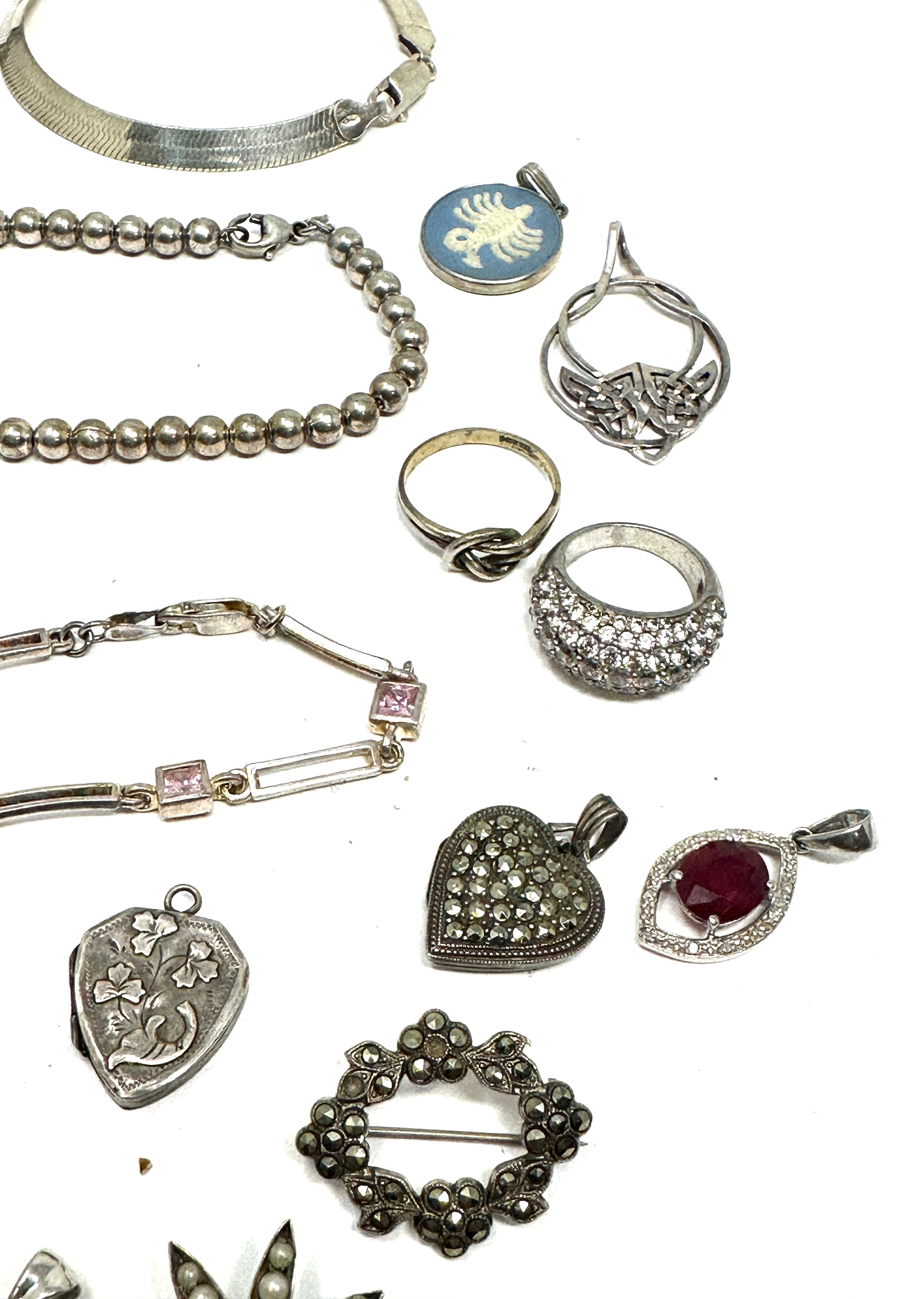 Selection of vintage silver jewellery inc rings pendants bracelets etc weight 95g