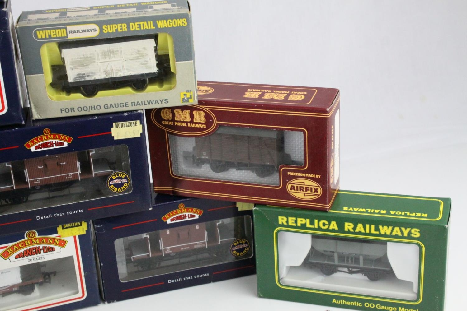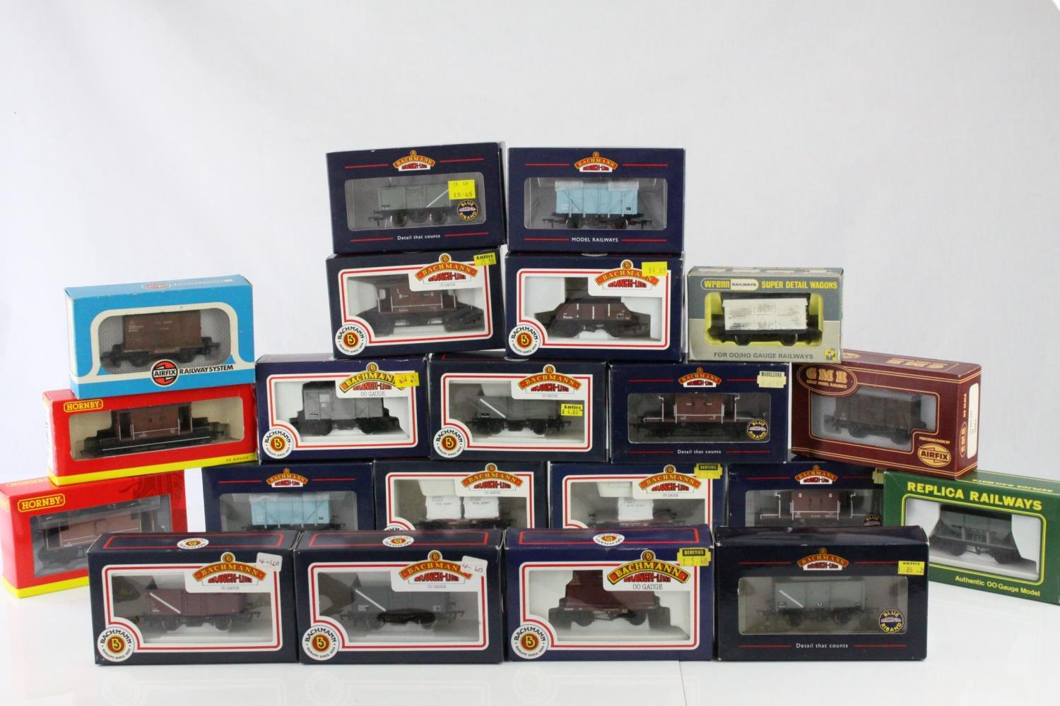21 Boxed OO gauge items of rolling stock to include 15 x Bachmann, 2 x Hornby, 1 x Airfix GMR, 1 x Wrenn, 1 x Airfix and 1 x Replica Railways, all wagons and trucks