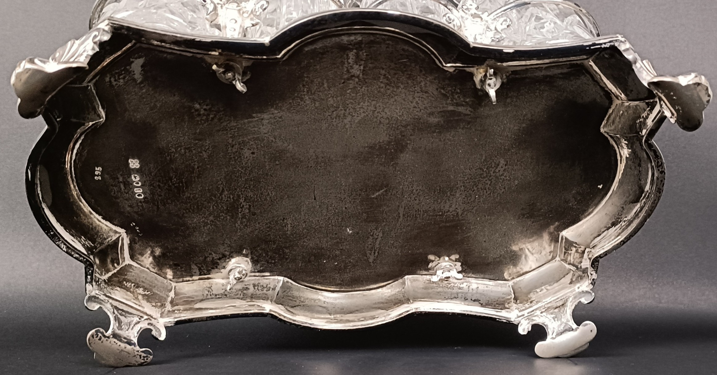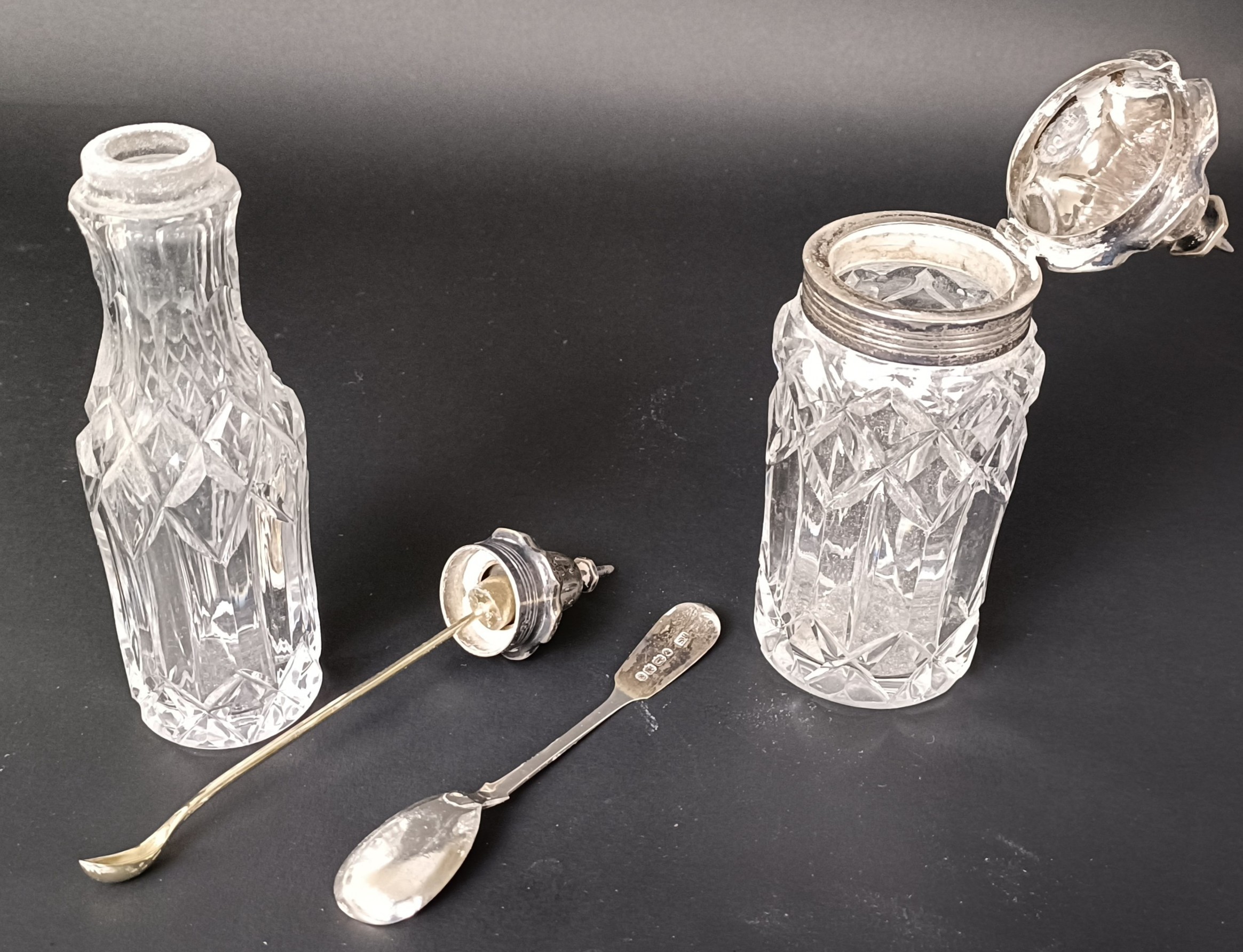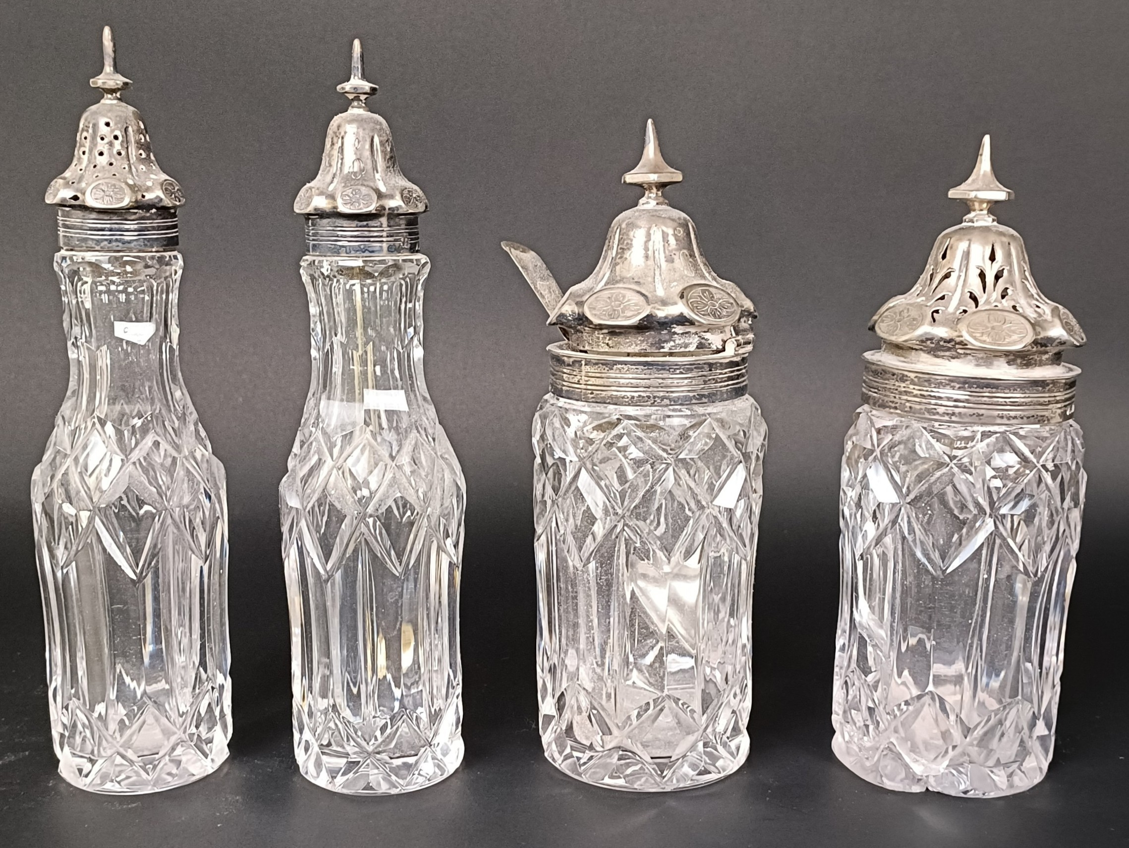 A Victorian silver and cut glass eight piece cruet stand, London 1860, stand 28.5 ozt