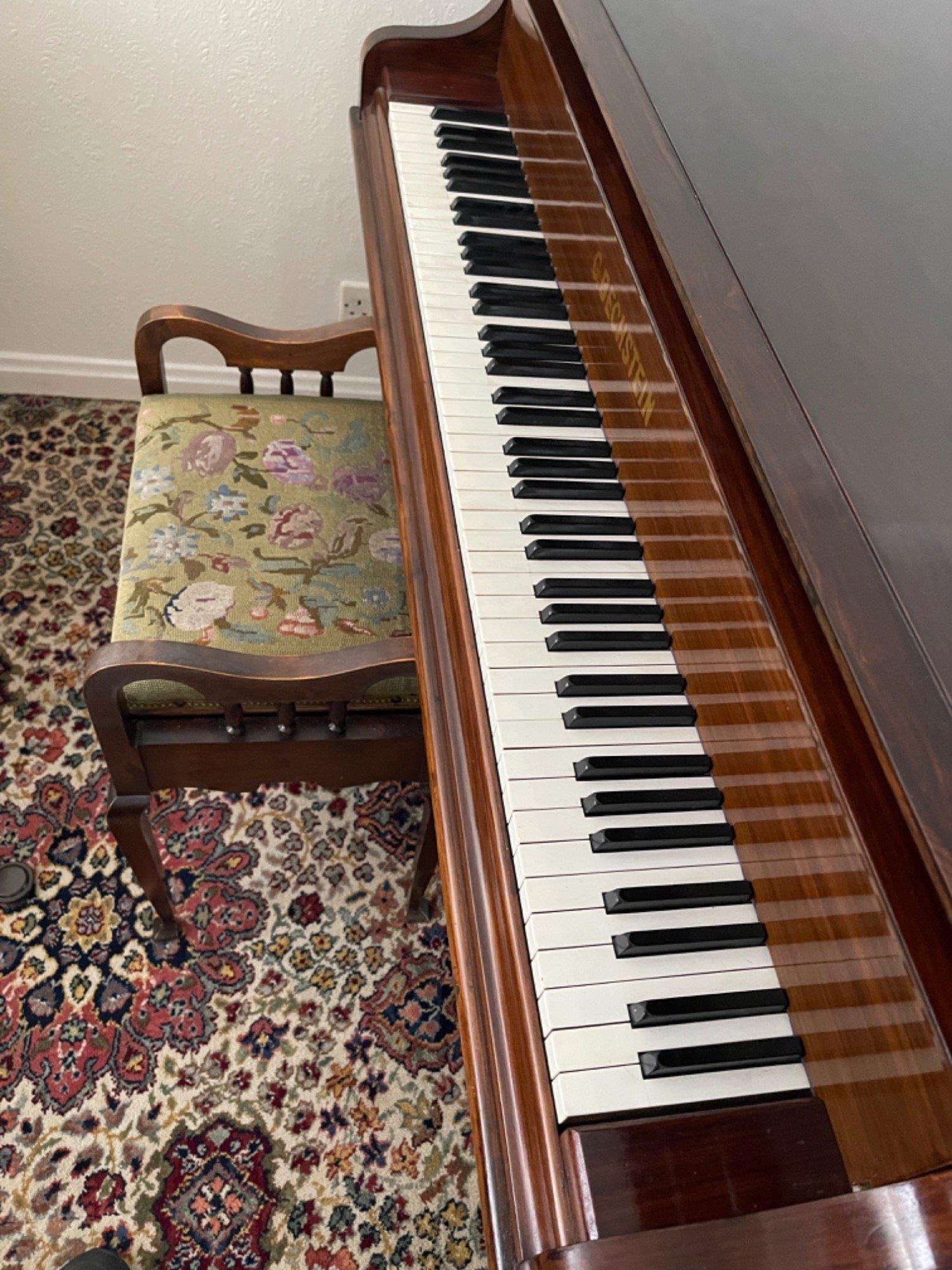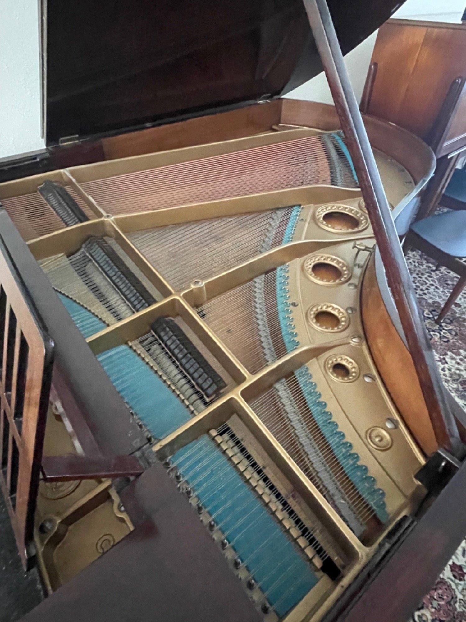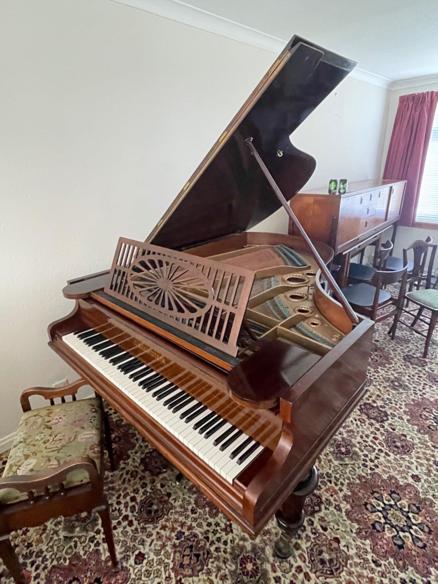 The piano was owned laterally by a local Peebles music teacher who spent her life lovingly caring after her piano, owned from the 70's approx and regularly tuned - the piano was tuned around 6-8 months ago but we notice that one of the hammers sticks occasionally - an easy fix by a piano tuner - the piano is absolute quality and what a lovely tone!