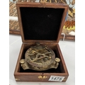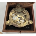 A brass sextant in teak box