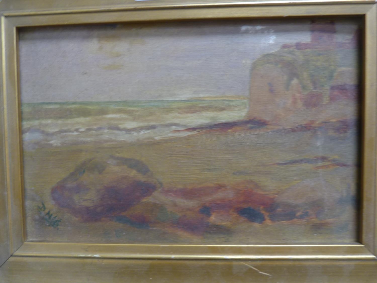 Waves and beach scene, signed with initial D McG, oil on canvas.