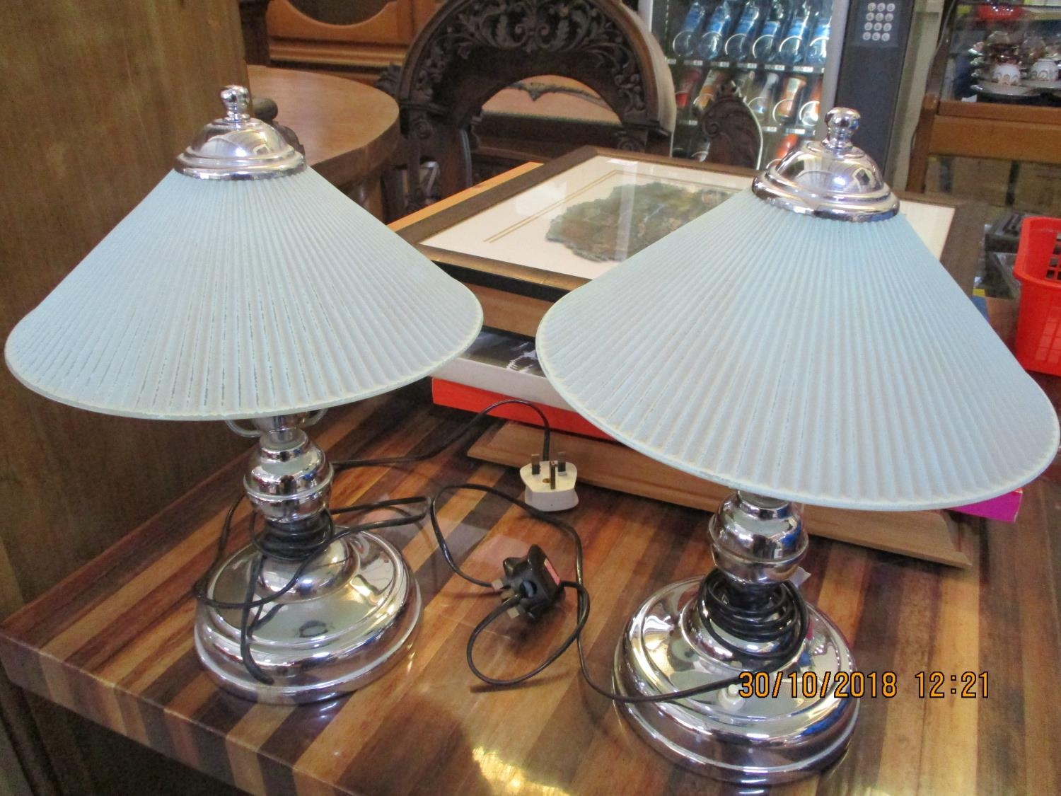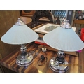 Vintage Pair of Chromed Table Lamps / Bedside Lamps with Glass Shades