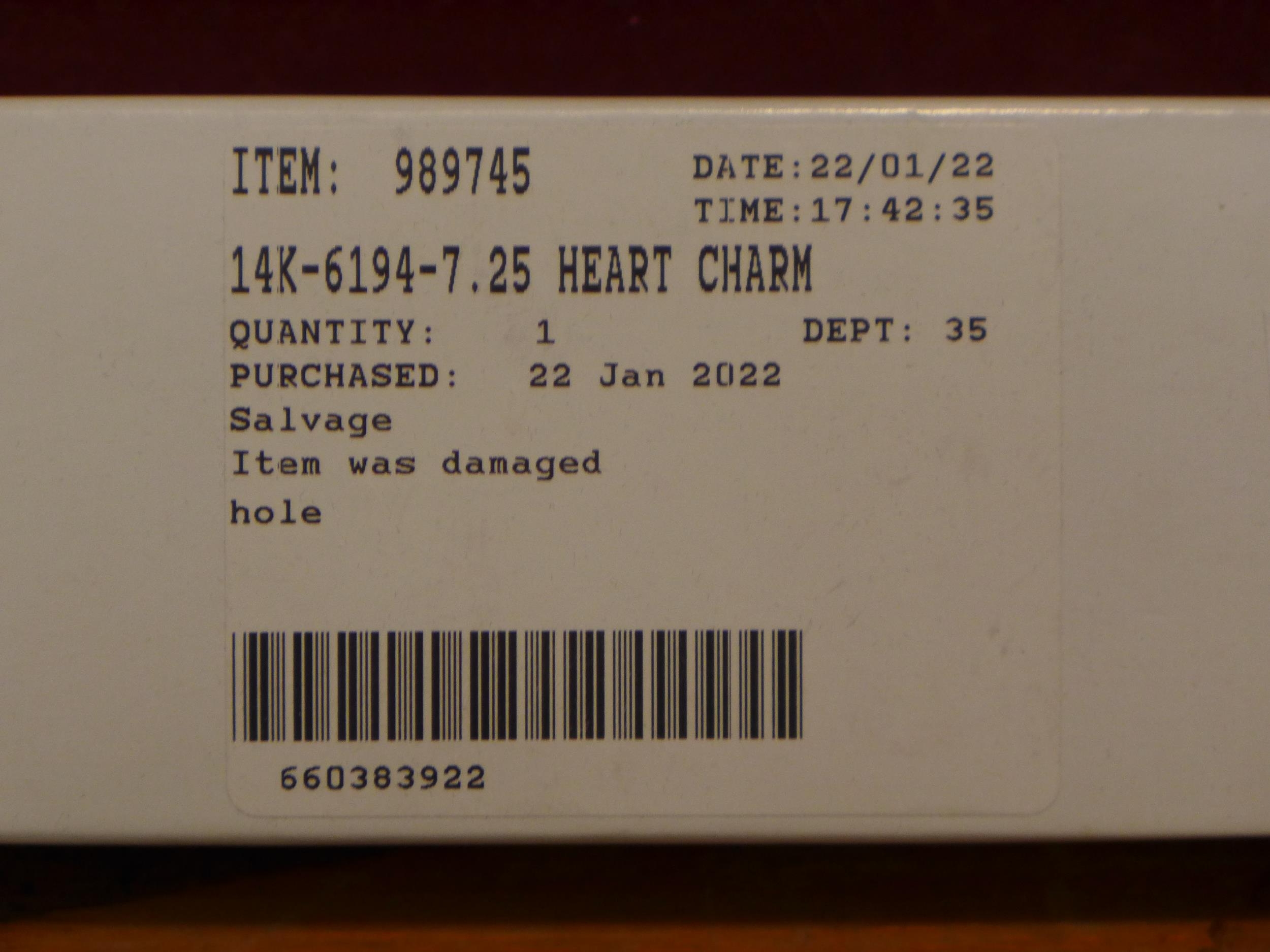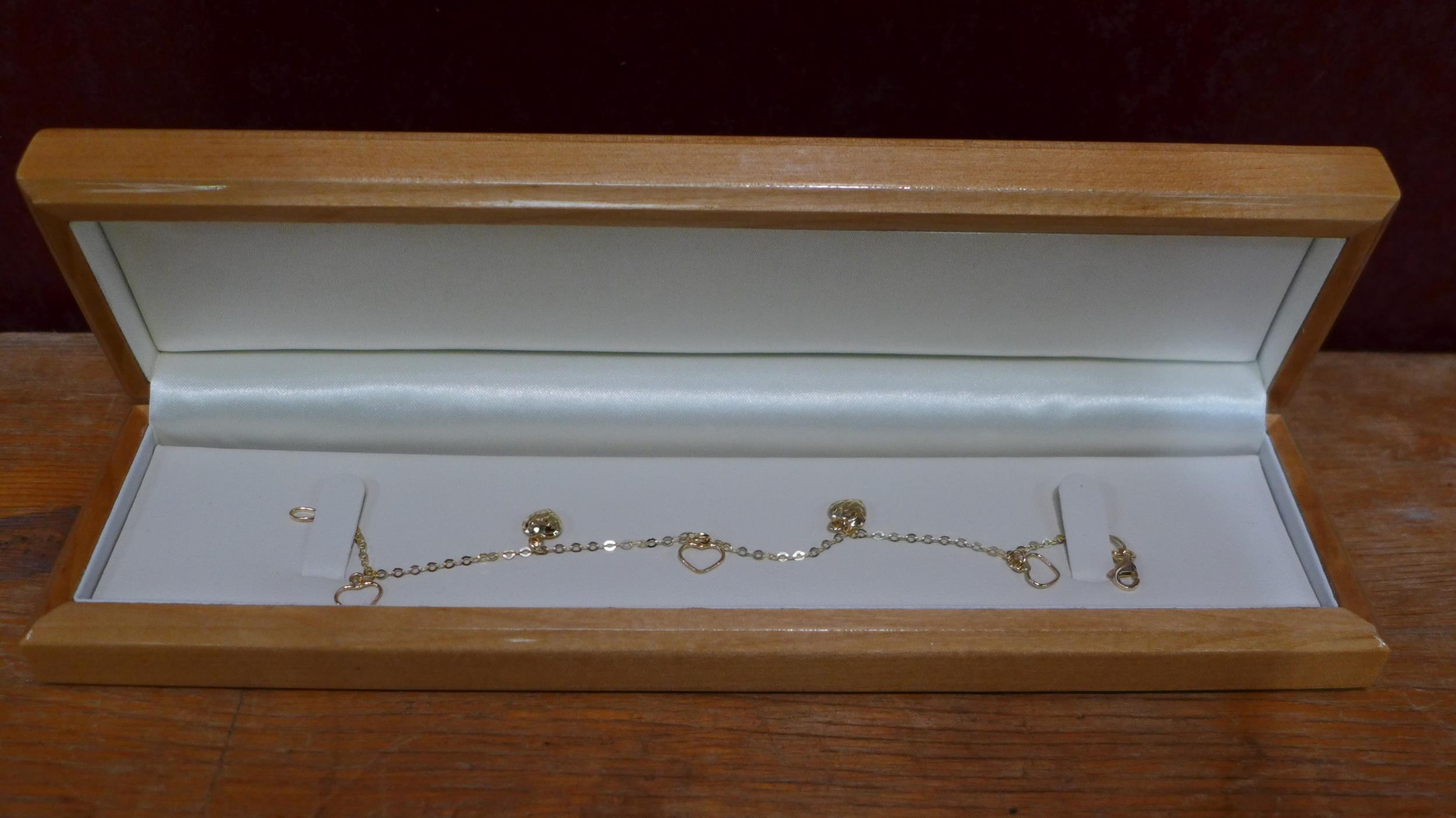 14Ct Yellow Gold Heart Charm Bracelet , Original RRP £114.99 + vat , (249-401) * This lot is subject to vat