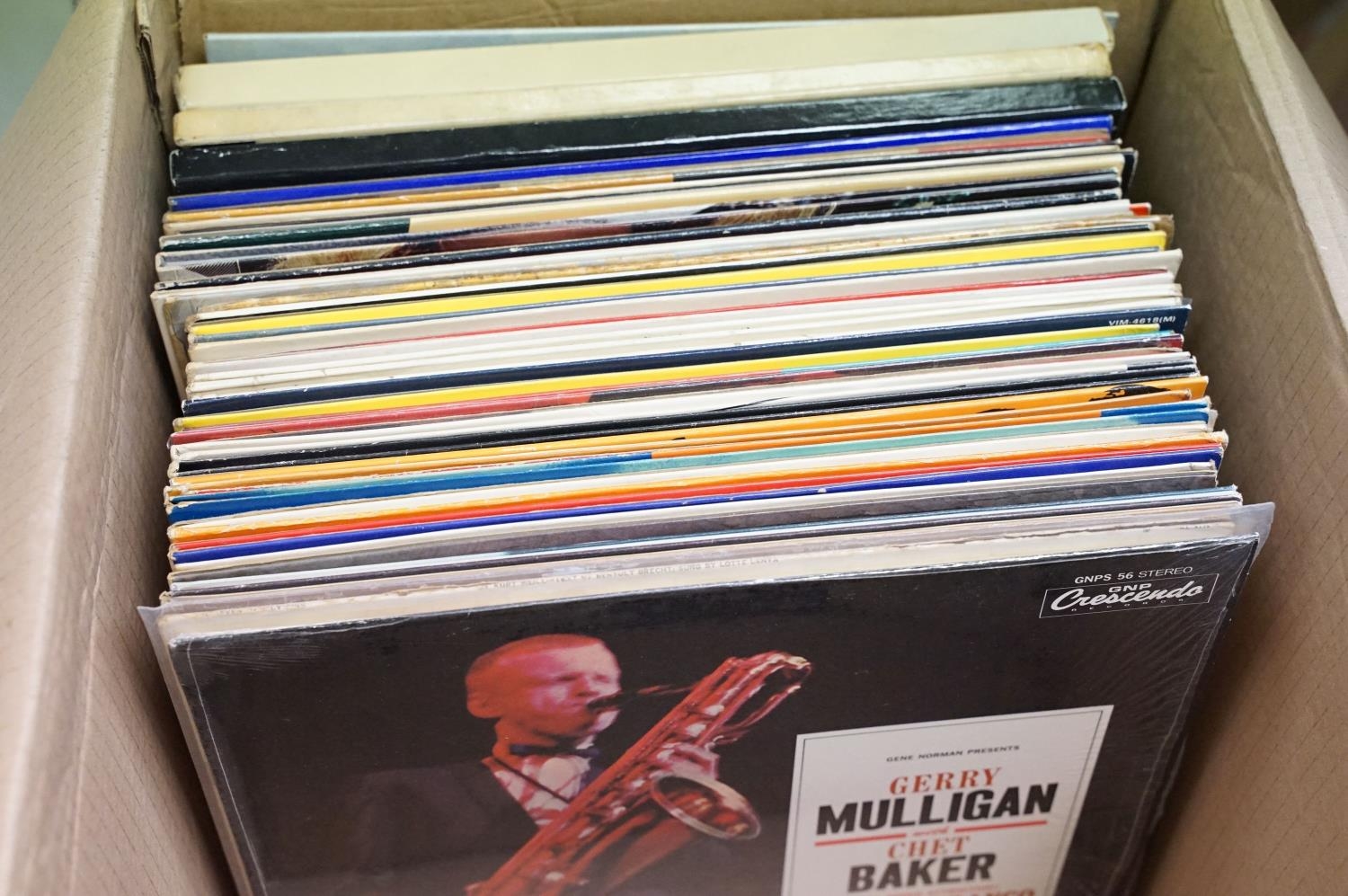 Vinyl - 60 Jazz LPs and 3 box sets to include Thelonious Monk, Sonny Criss, Art Blakey, Mose Allison, Count Basie, Clifford Brown, Gerry Mulligan, Chet Baker, Eric Dolphy, Louis Armstrong, Joe Williams, Stan Getz, Max Roach and others. At least Vg+ overall