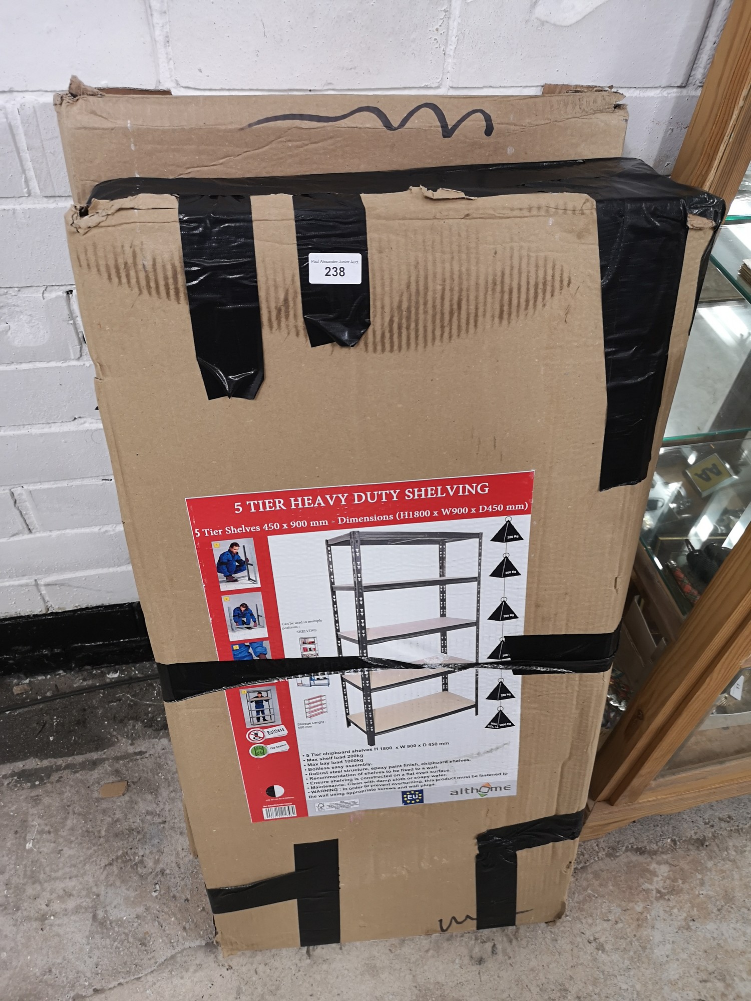 Boxed 5 tier shelving unit.